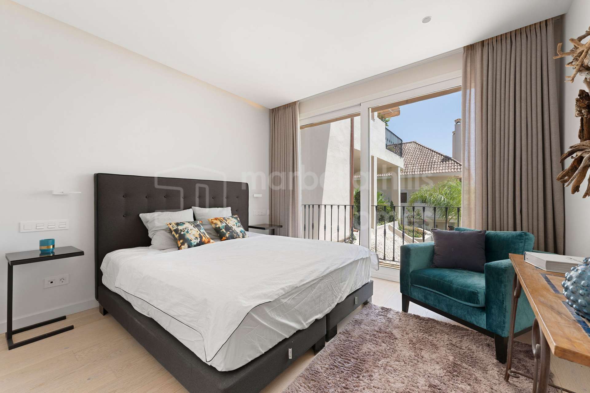 La propiedad dispone de cuatro amplios dormitorios y cuatro baños, además de un aseo de invitados, ofreciendo privacidad y flexibilidad tanto para la vida familiar como para recibir invitados. Al entrar en el nivel inferior encontramos un tranquilo dormitorio en suite con acceso a un encantador balcón francés que ofrece vistas a la piscina comunitaria y a los jardines perfectamente cuidados.