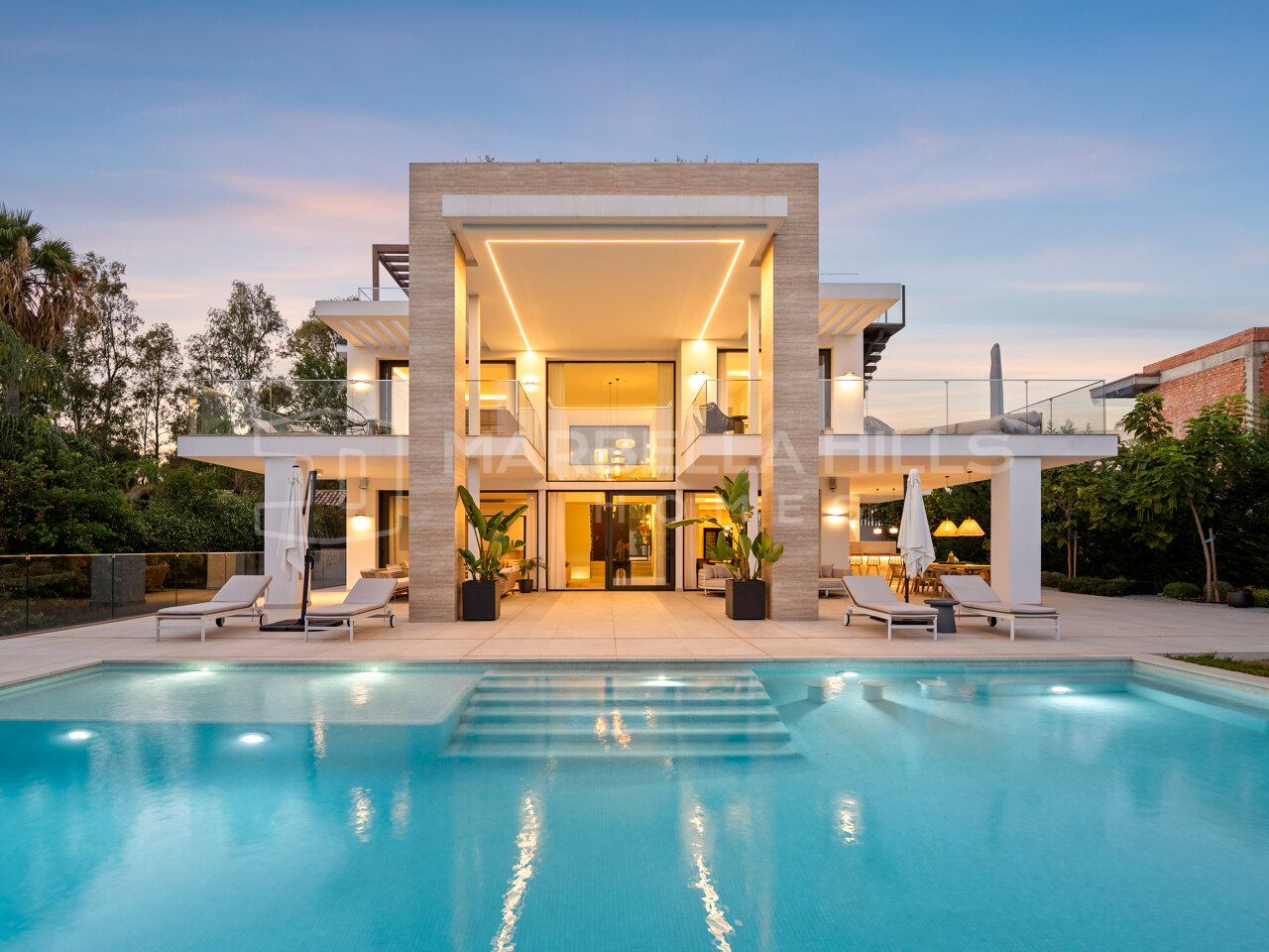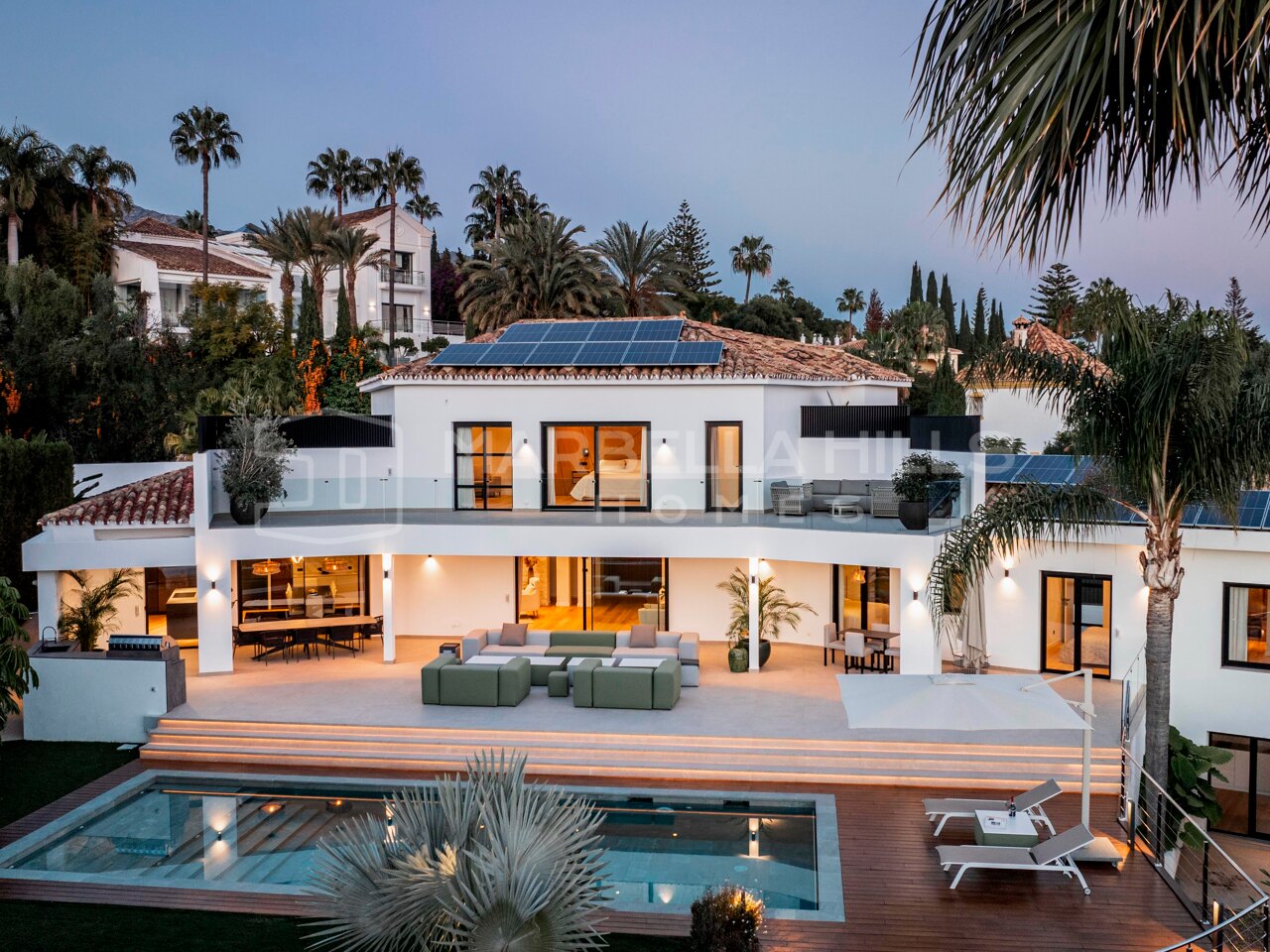 Las zonas exteriores están diseñadas para disfrutar del excepcional clima de Marbella durante todo el año. Las amplias terrazas ofrecen espacios ideales para comer al aire libre, relajarse y entretener a invitados, mientras que la piscina privada y el jardín ajardinado crean un entorno tranquilo y privado en pleno corazón de la Golden Mile Marbella.