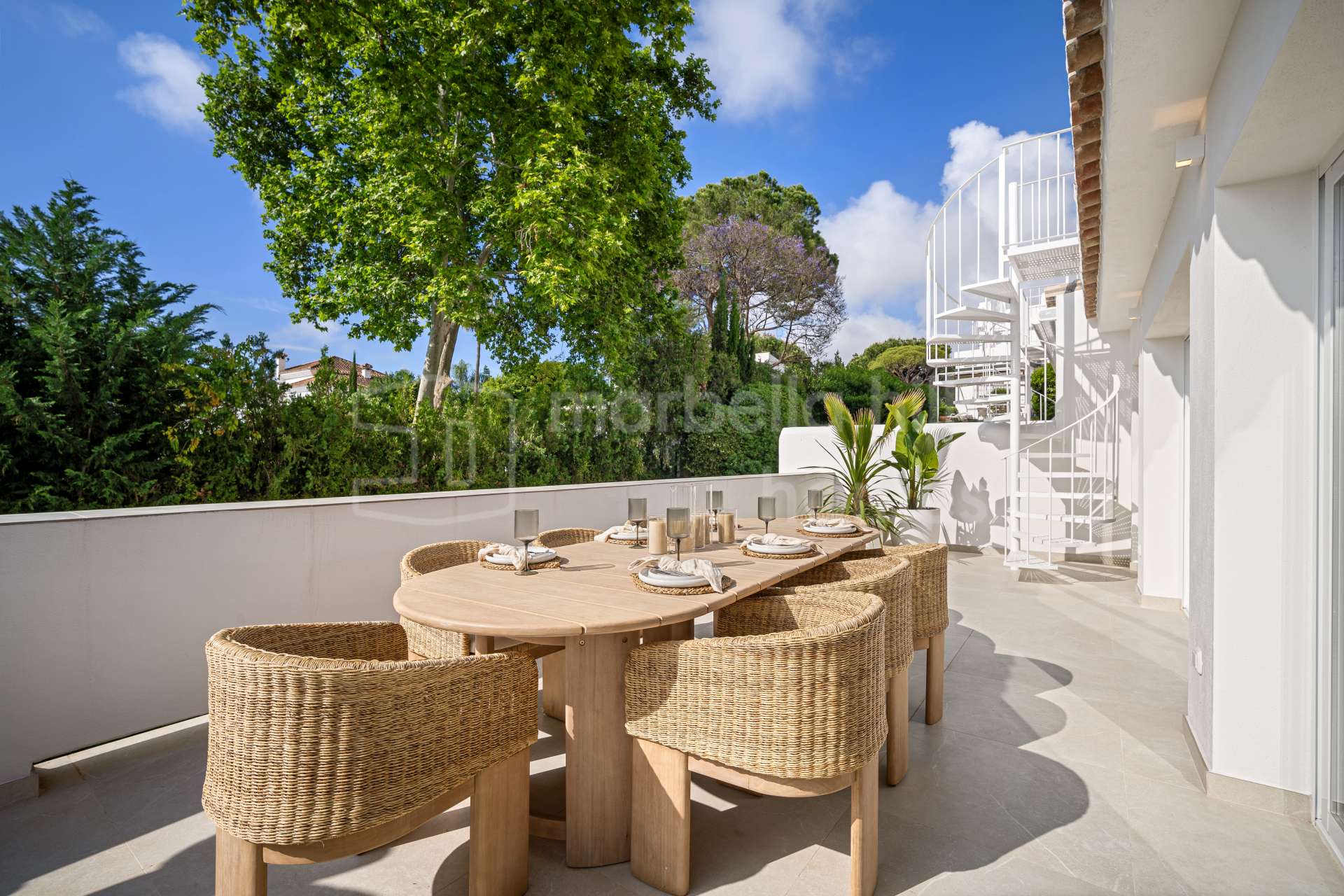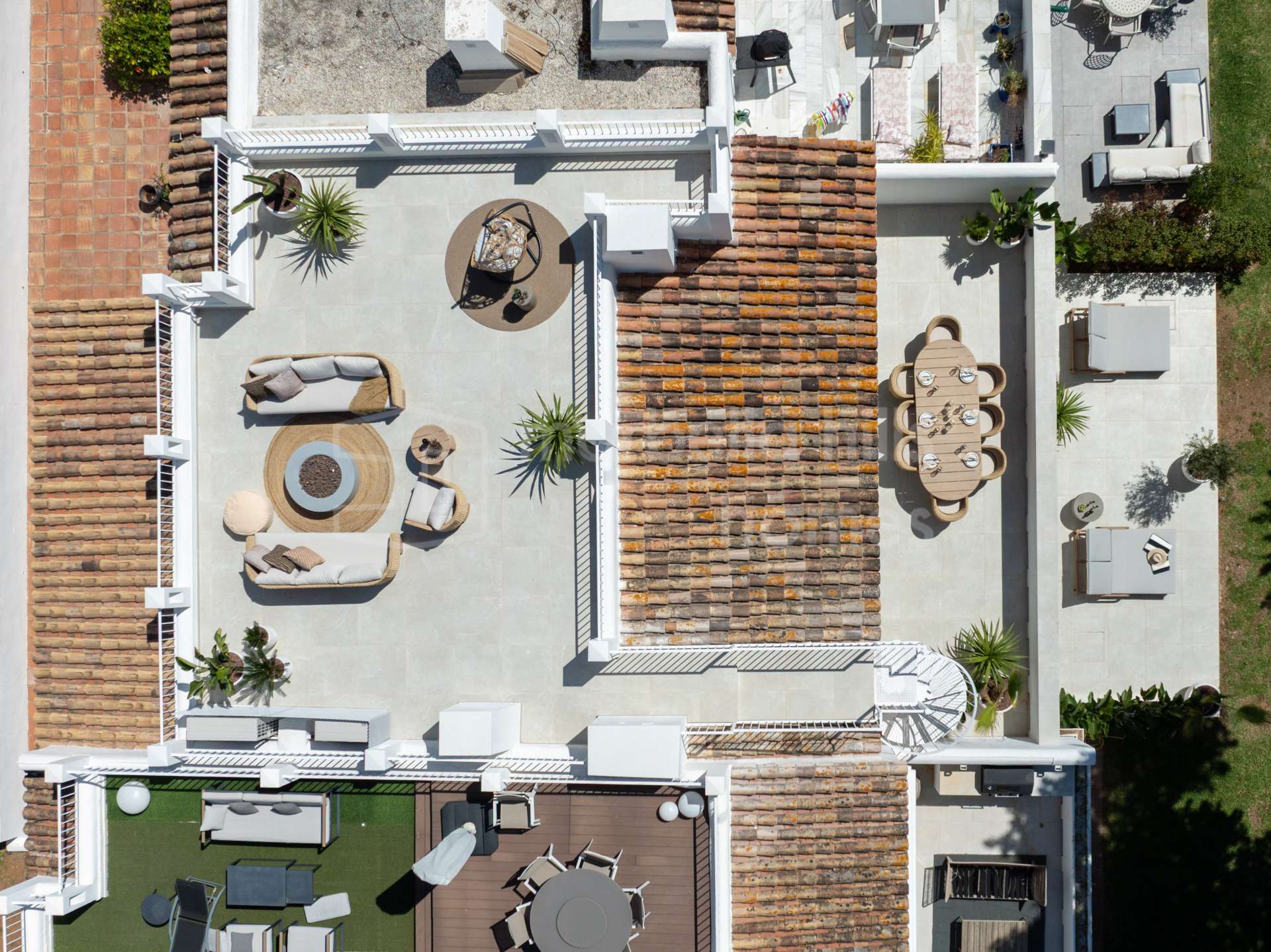 Le point fort de cette propriété est sans doute la superbe terrasse sur le toit, offrant une vue panoramique imprenable sur la mer. Un espace idéal pour profiter des couchers de soleil, se détendre en toute intimité ou recevoir vos proches.