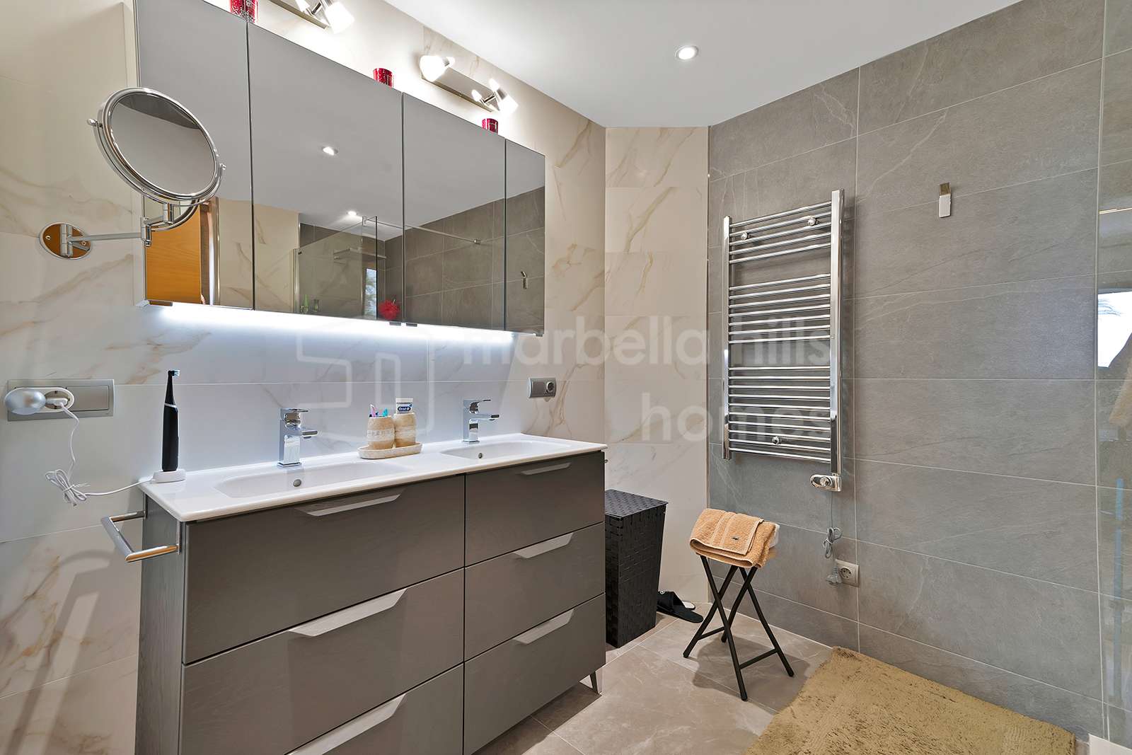 Cheminée et chauffage au sol dans les salles de bains