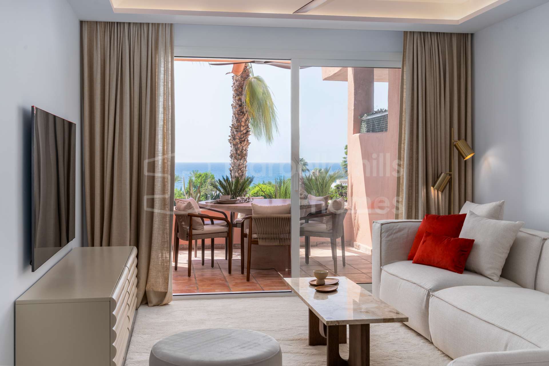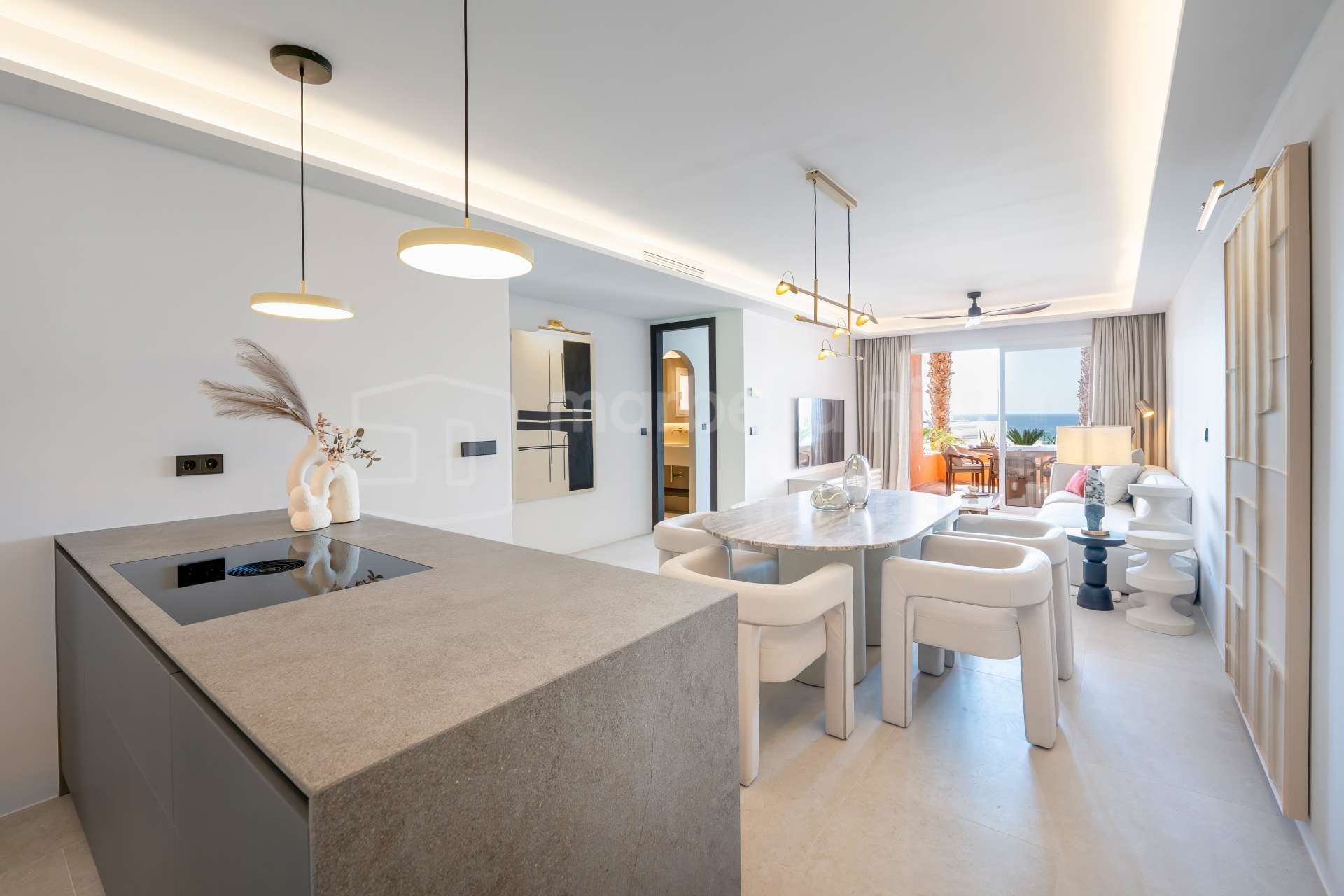 Appartement de 3 chambres rénové en 2025 à Montebello Hills, Sierra Blanca. Terrasse exposée sud, design contemporain, vues paisibles, prestations haut de gamme et sécurité...