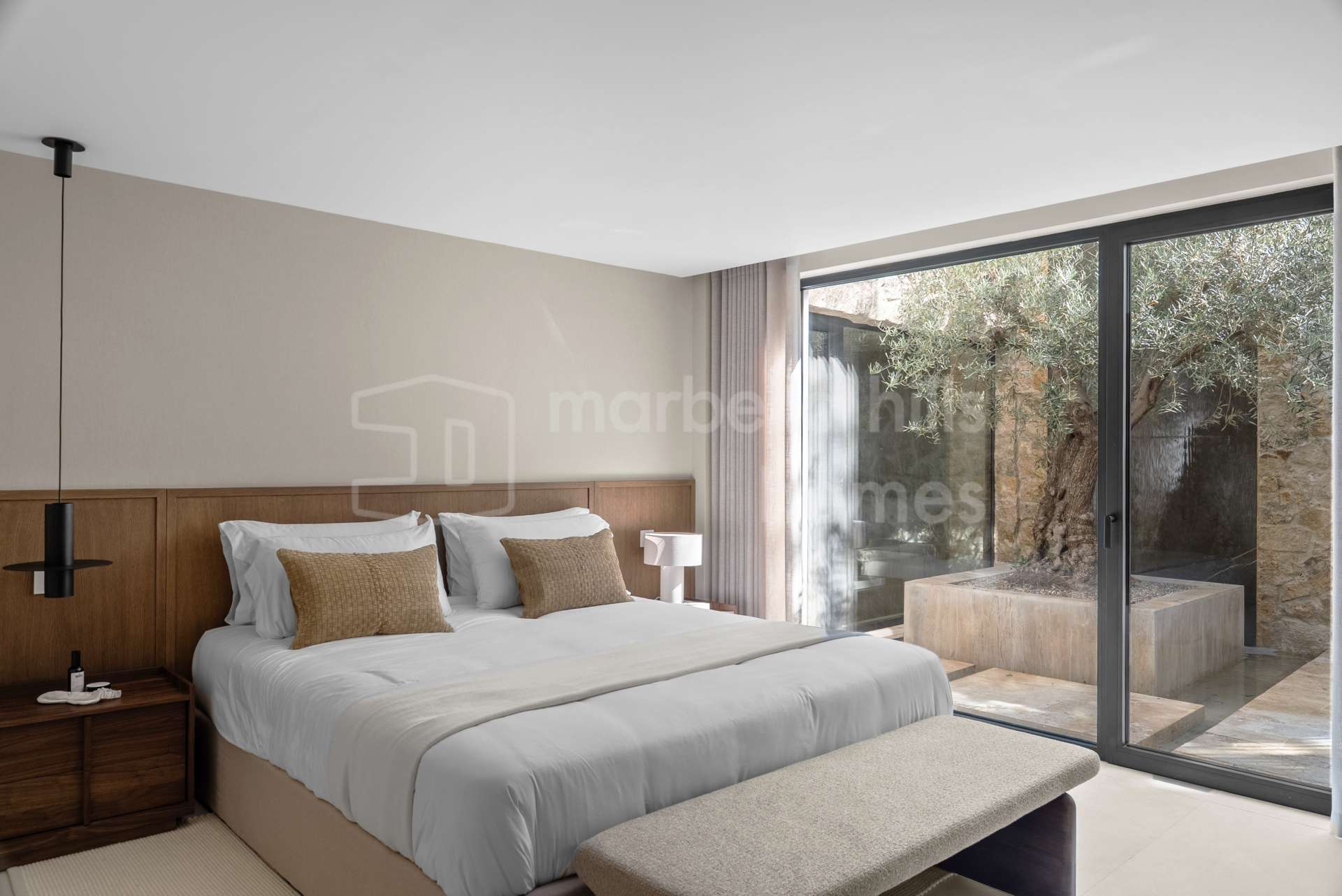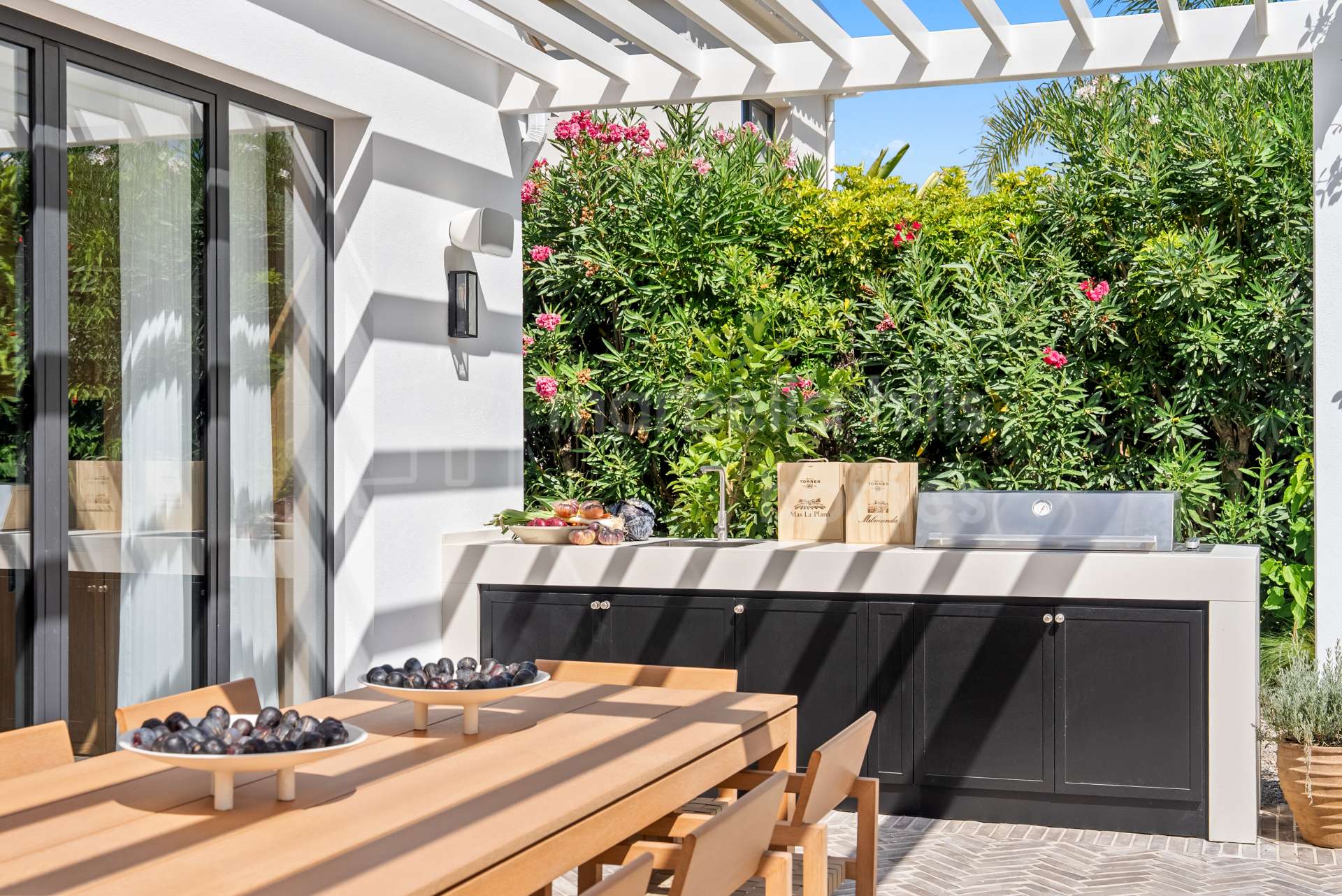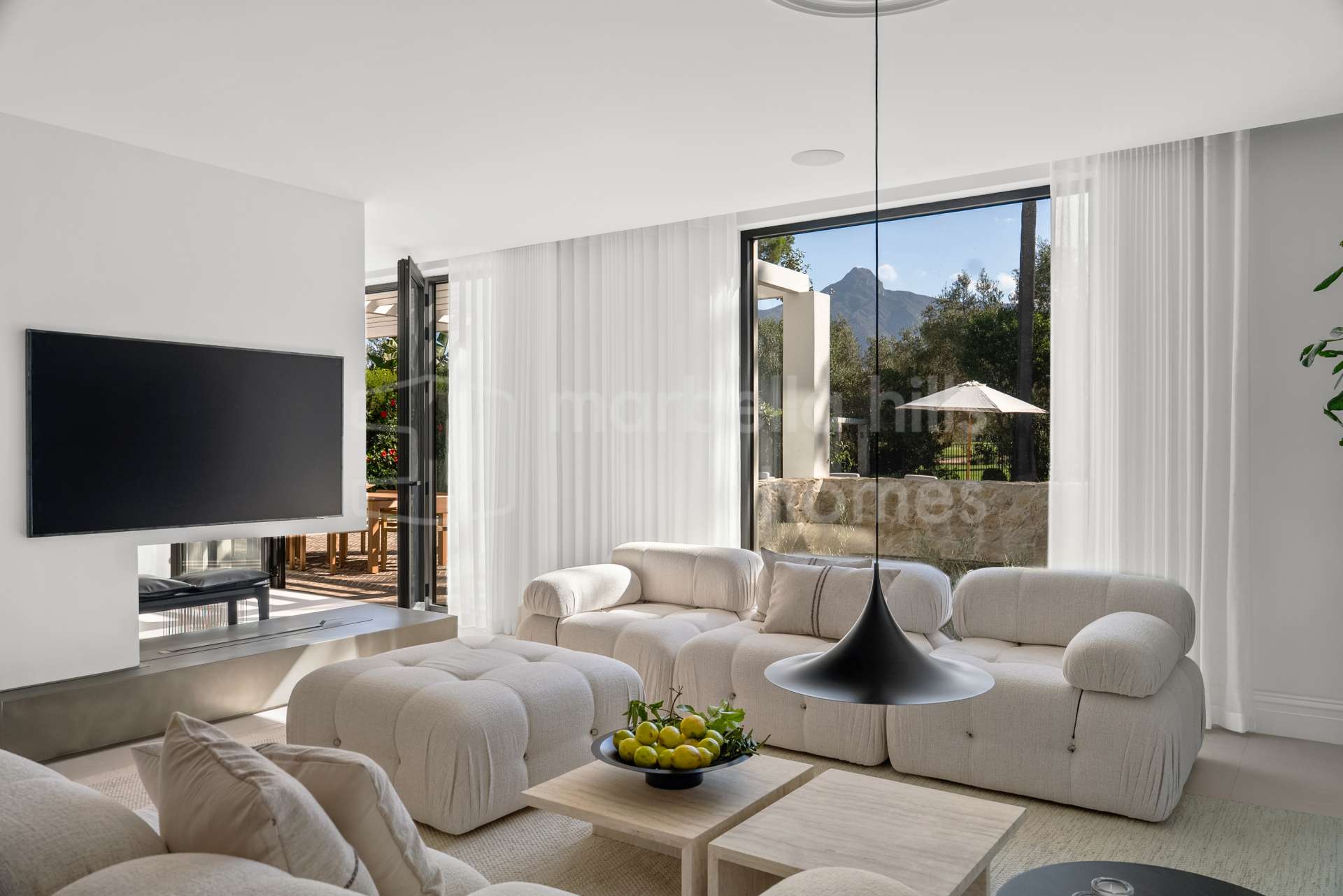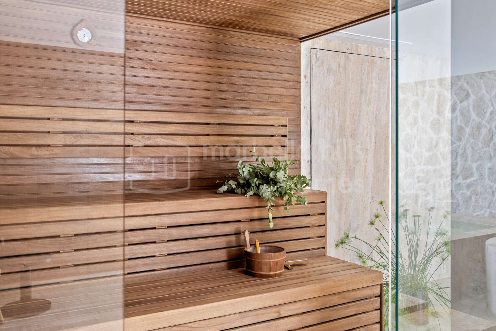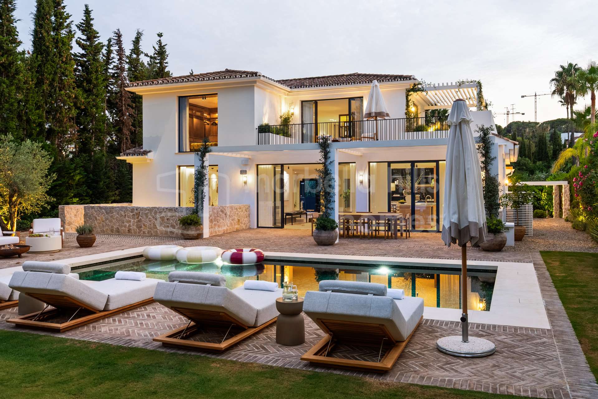 - Architecture contemporaine exclusive à Las Brisas, Nueva Andalucía – 480 m² construits sur un terrain de 1.239 m² – 4 chambres | 6 salles de bains – Salle de cinéma et cave à vin privée – Espace spa avec sauna et chauffage au sol – Piscine d’eau salée, jardin privé et terrasses couvertes – Communauté sécurisée en front de golf, proche de la plage et de Puerto Banús