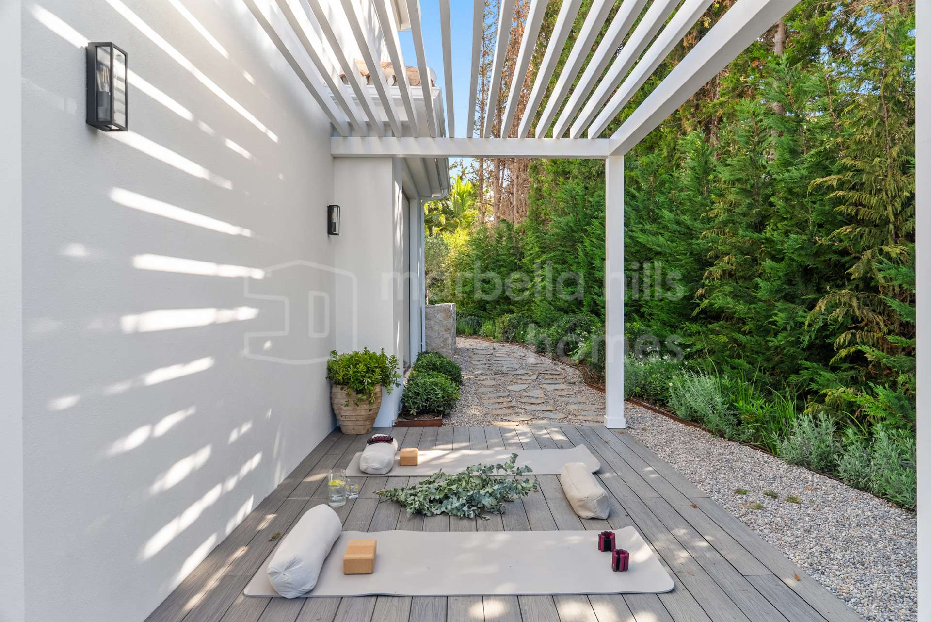 Située dans une communauté fermée et sécurisée, à seulement quelques minutes de Puerto Banús et du Golden Mile de Marbella, cette villa offre intimité, charme méditerranéen et un accès immédiat aux services de luxe, écoles internationales, gastronomie et loisirs.