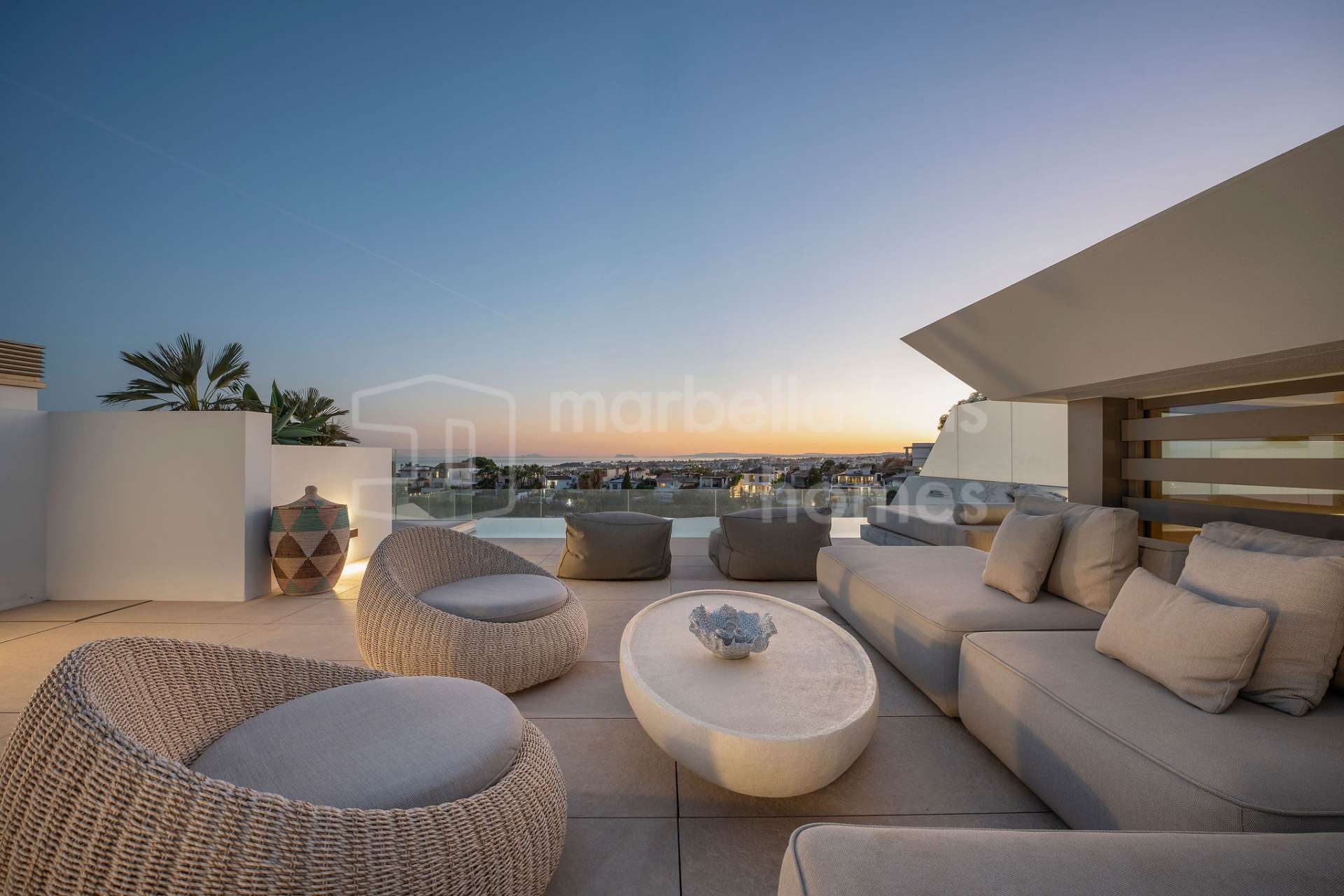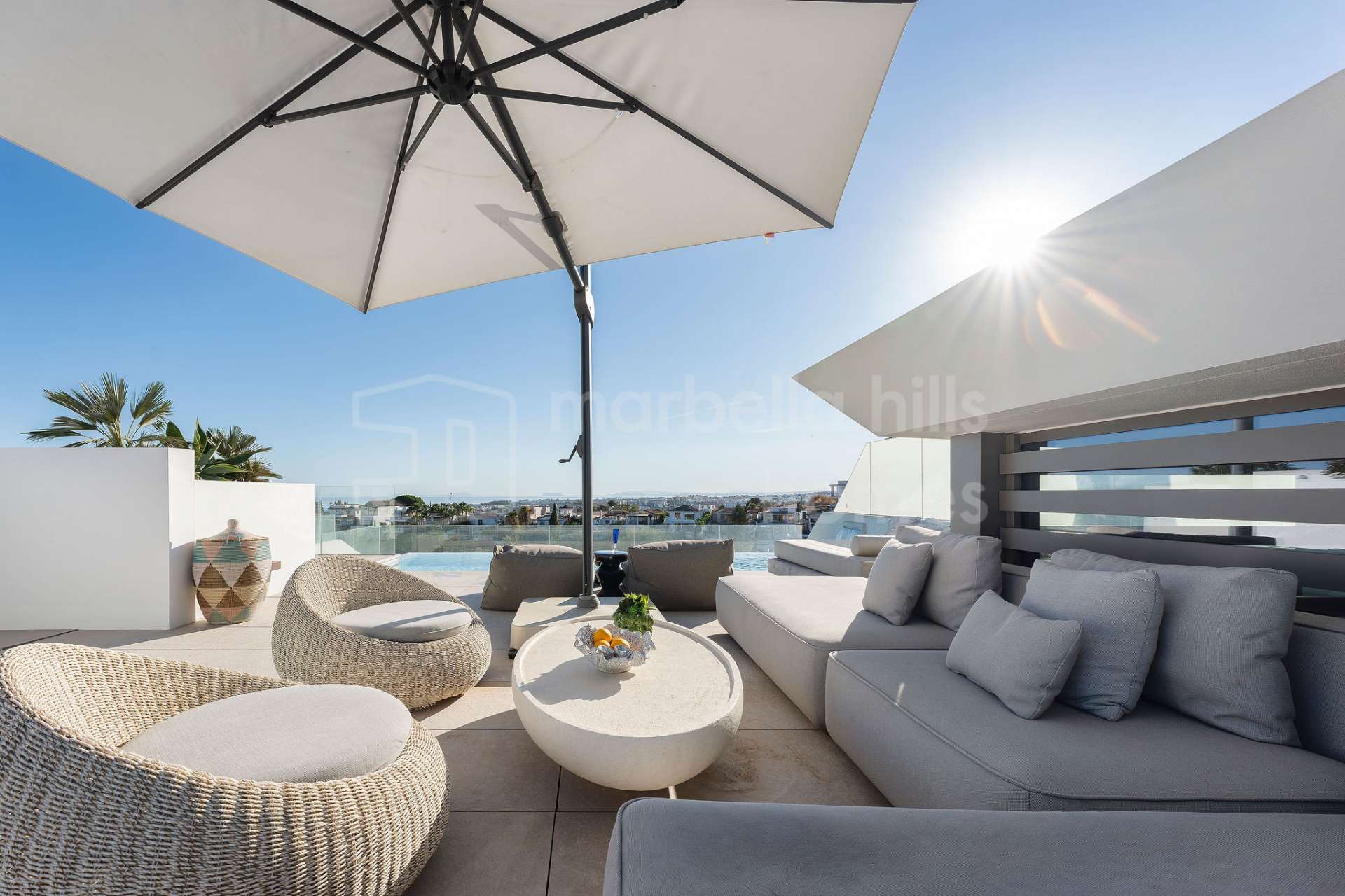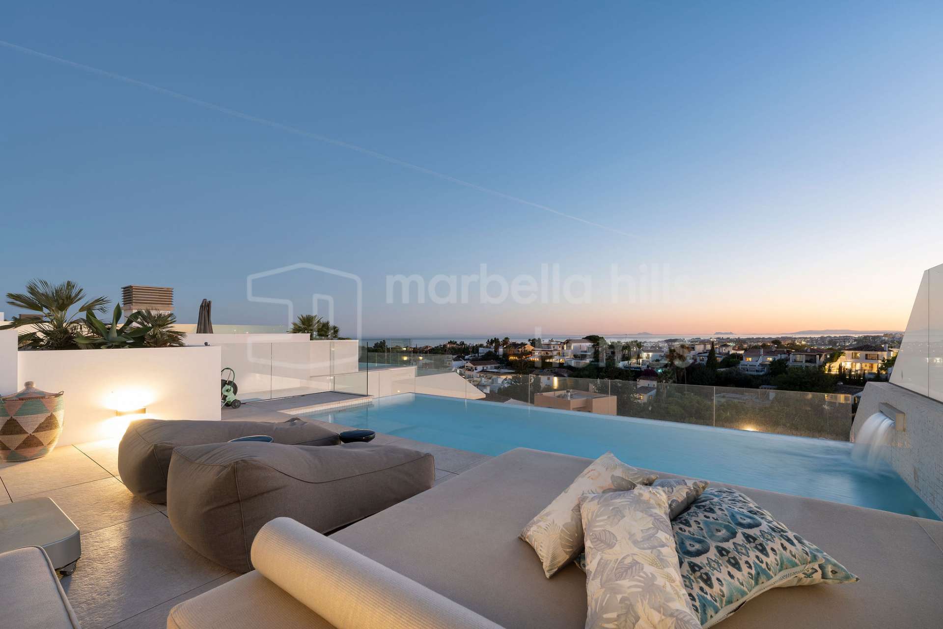 Le solarium sur le toit dévoile une vue imprenable à 360° sur la mer Méditerranée, la montagne de La Concha, Gibraltar et même l’Afrique. Avec sa piscine privée, c’est l’endroit idéal pour bronzer, se relaxer et profiter du style de vie marbellí.