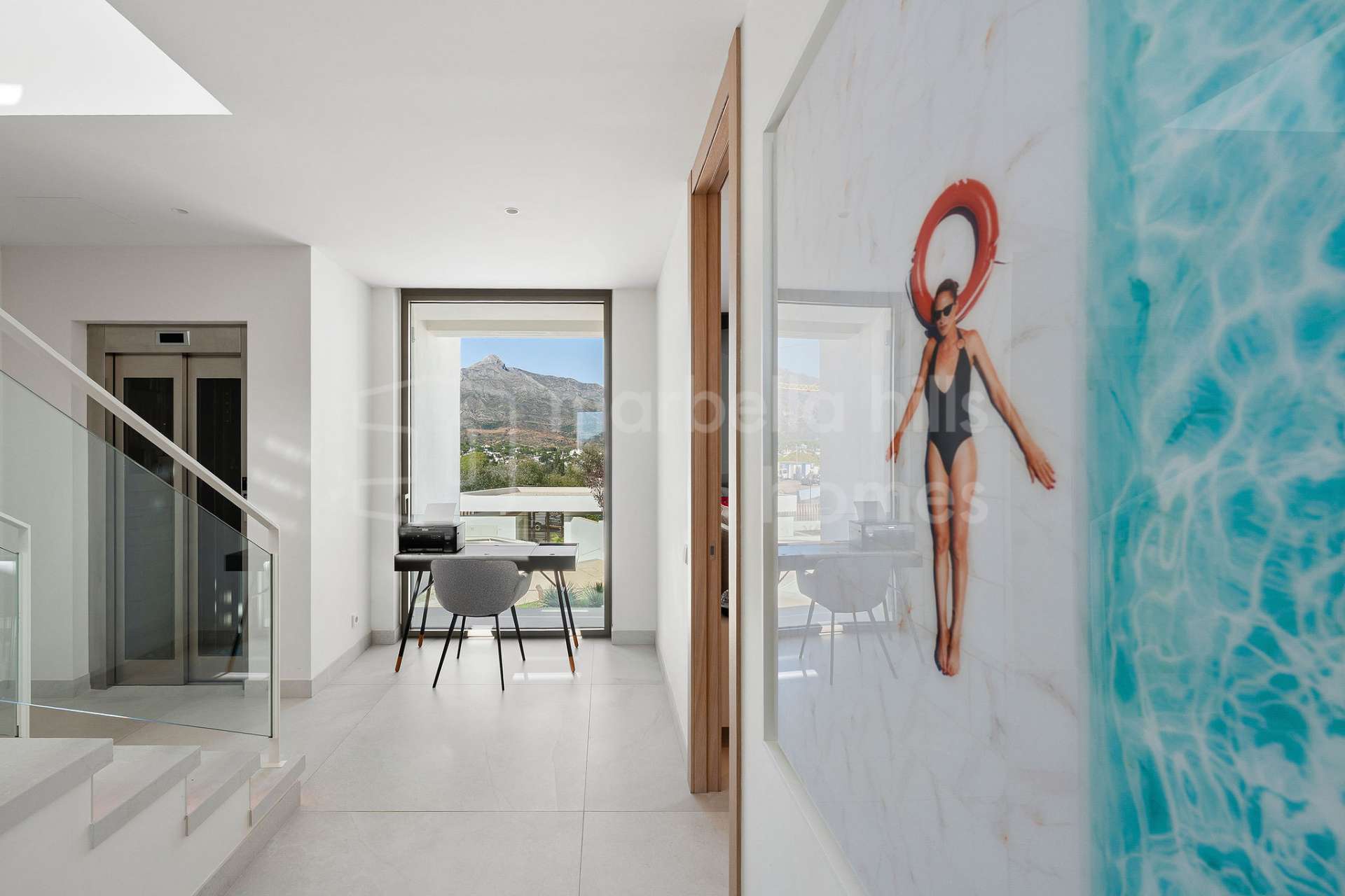 - Résidence sécurisée avec surveillance 24h/24 – 4 chambres en suite – Piscine privée sur le toit et solarium panoramique – Piscine commune et jardins paysagers – Sous-sol avec cinéma, bar et salle de sport – Garage privé pour 3 voitures avec accès direct – Ascenseur du sous-sol au solarium – Proche des golfs, plages, écoles et Puerto Banús – Vues panoramiques sur la mer, la montagne, Gibraltar et l’Afrique