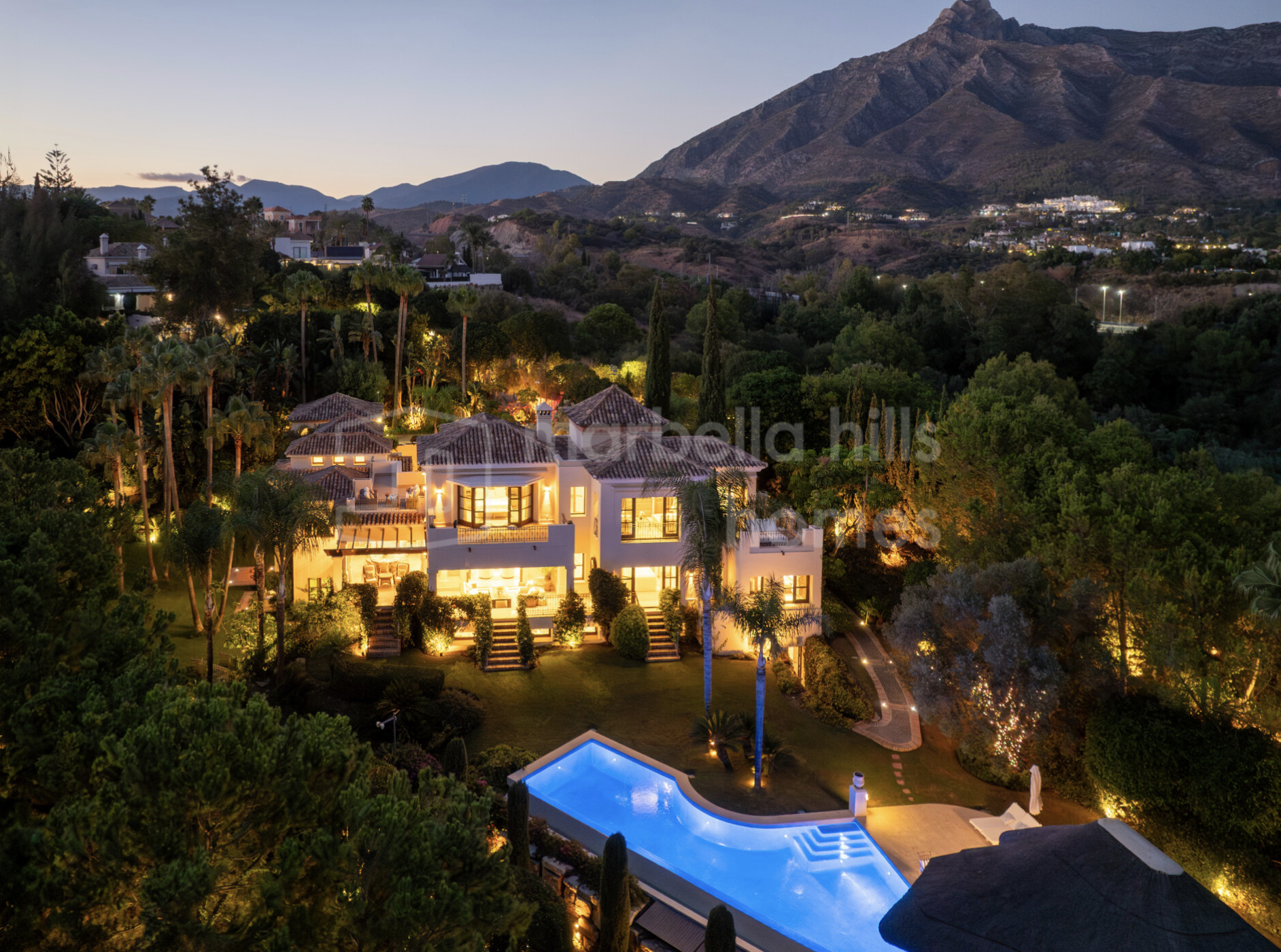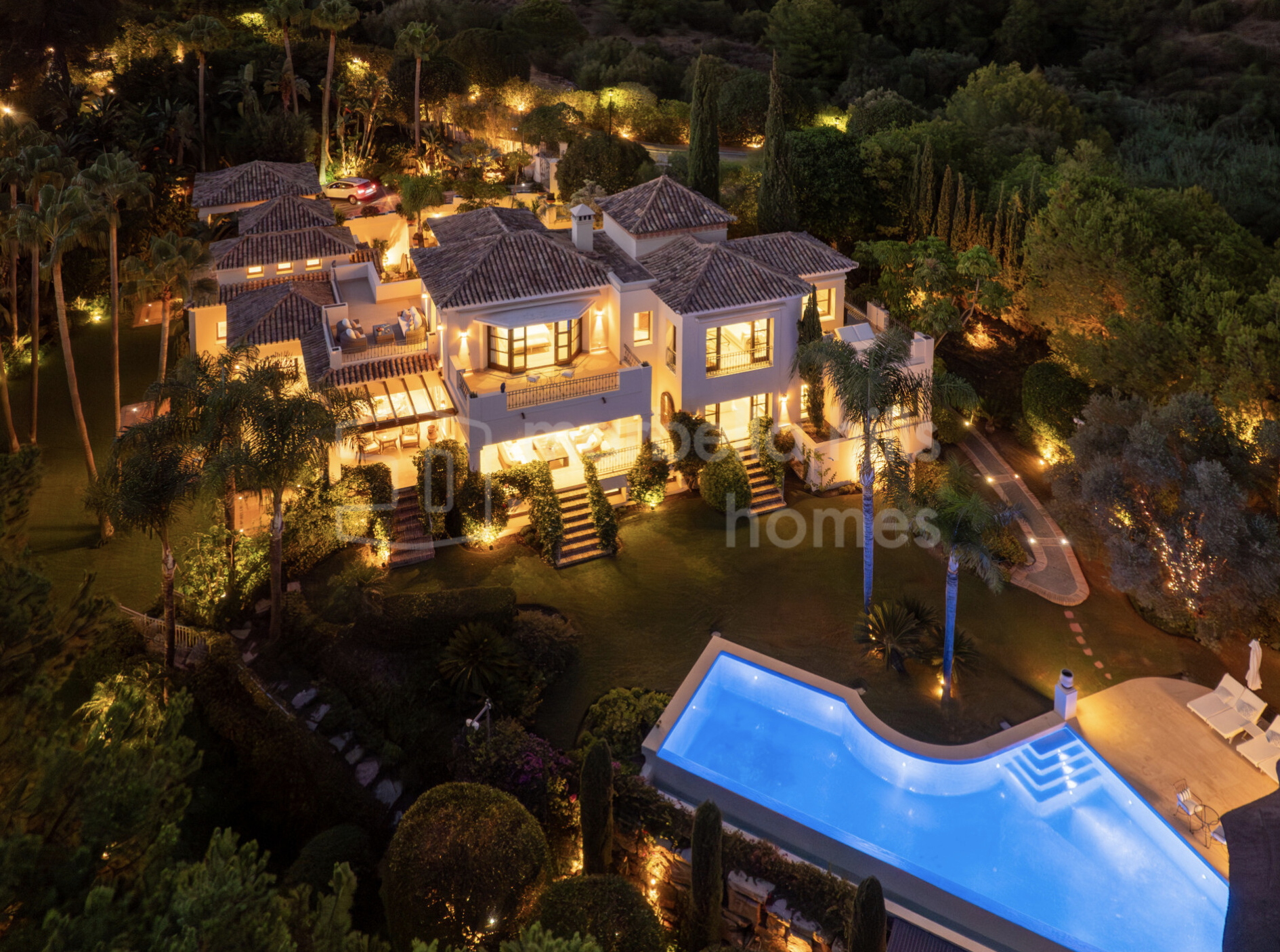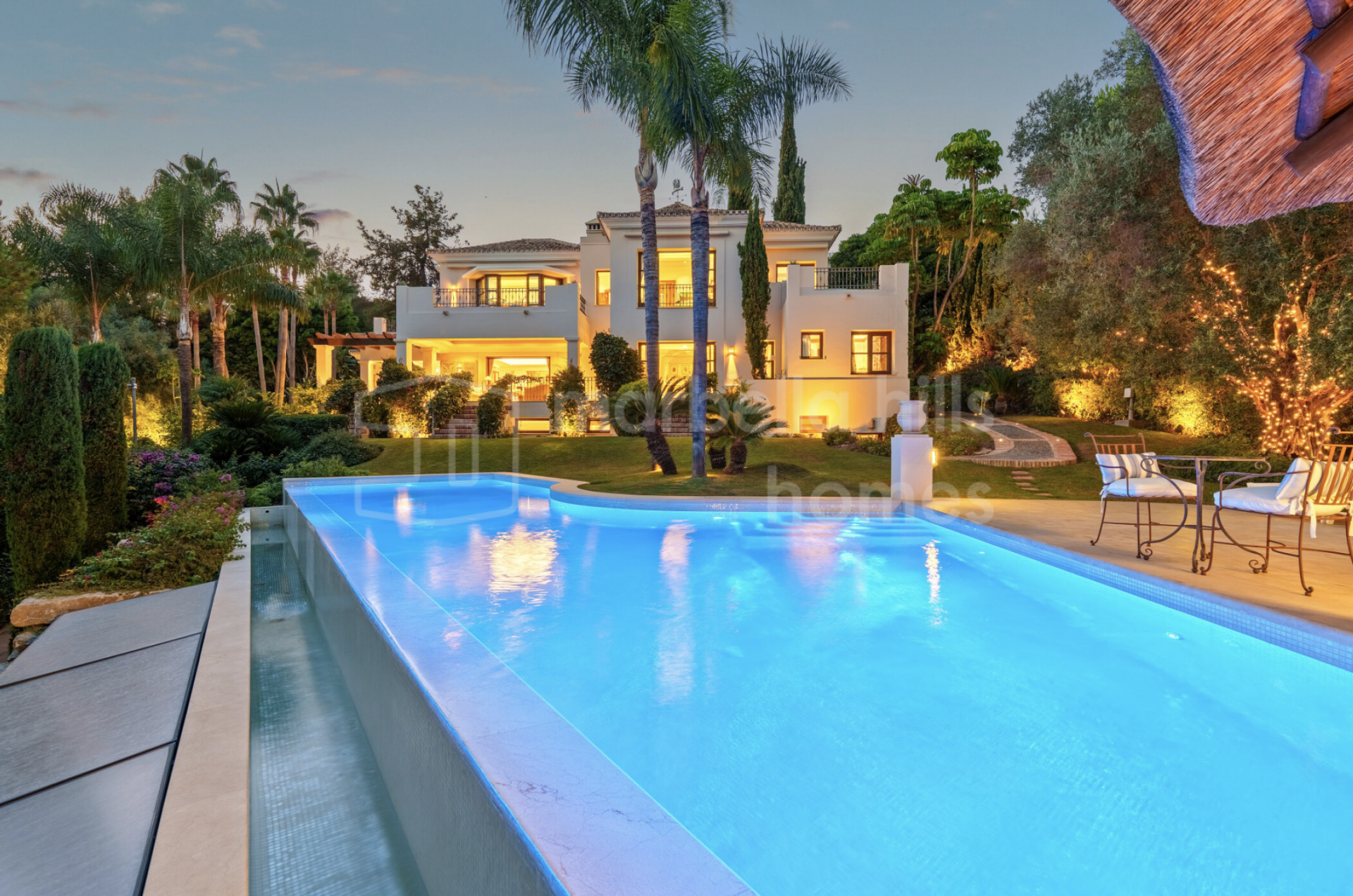 - Emplacement exclusif à Las Lomas del Marbella Club, Golden Mile – 6 chambres, 7 salles de bain + 2 toilettes invités – Appartement indépendant pour invités ou personnel – Sous-sol avec cinéma, salle de sport, cave à vin, salle de jeux et bureau – Piscine chauffée à l’eau salée et jardins privés – Chiringuito extérieur avec cuisine, barbecue et lounge – Vues panoramiques sur la mer, la montagne et la campagne – Carport pour 3 voitures – Finitions haut de gamme : chauffage au sol, climatisation, domotique, panneaux solaires – Sécurité renforcée : caméras, alarme, vidéo-portier et accès sécurisé