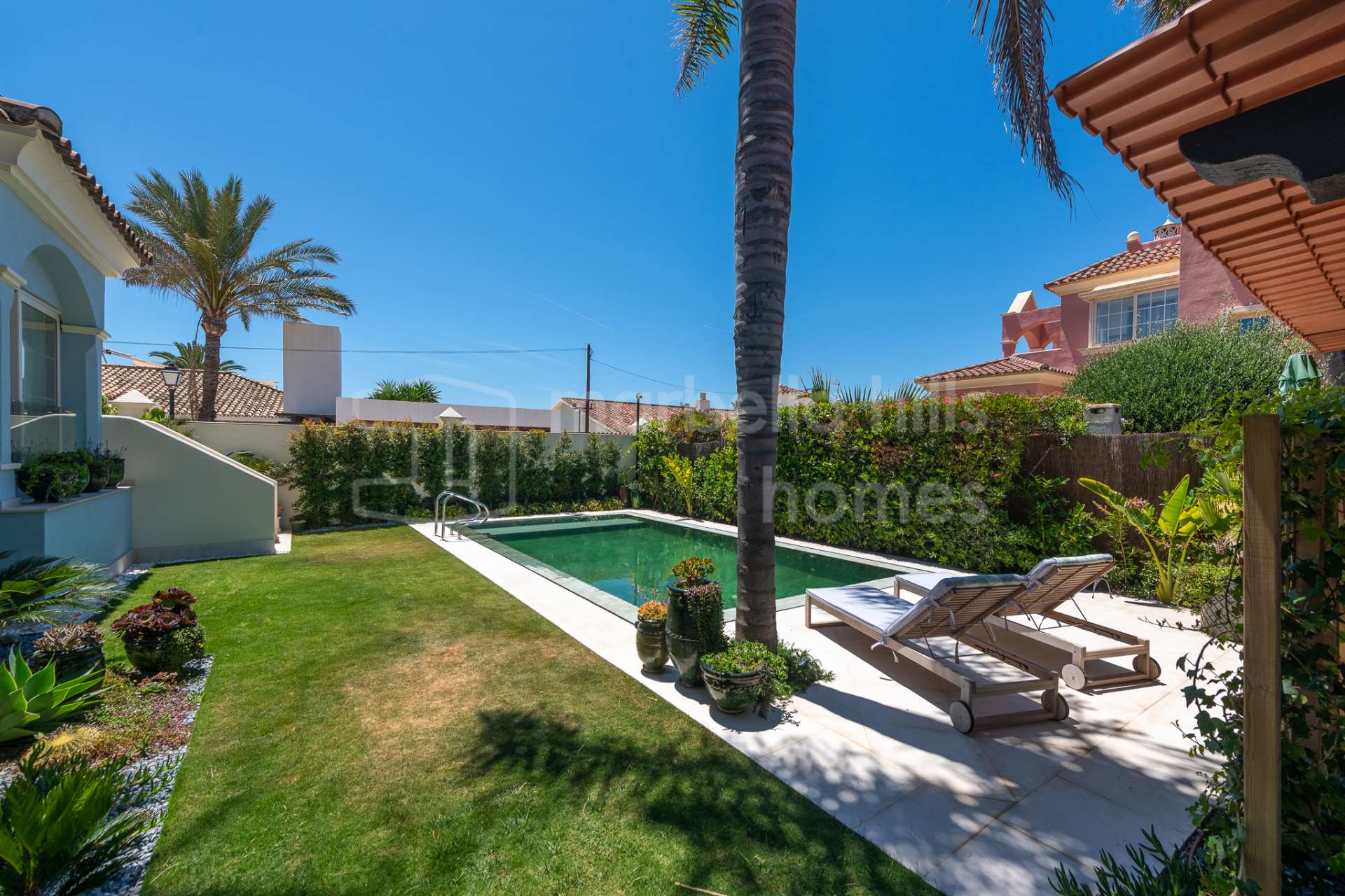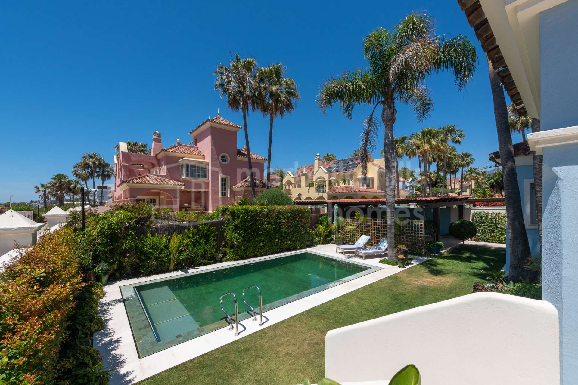 Située dans une communauté sécurisée avec surveillance 24 h/24, cette villa est à quelques minutes à pied de la plage, des boutiques de luxe, des restaurants gastronomiques et des beach clubs exclusifs de Puerto Banús. Elle se trouve également à proximité d’écoles internationales, de parcours de golf et du centre-ville de Marbella.