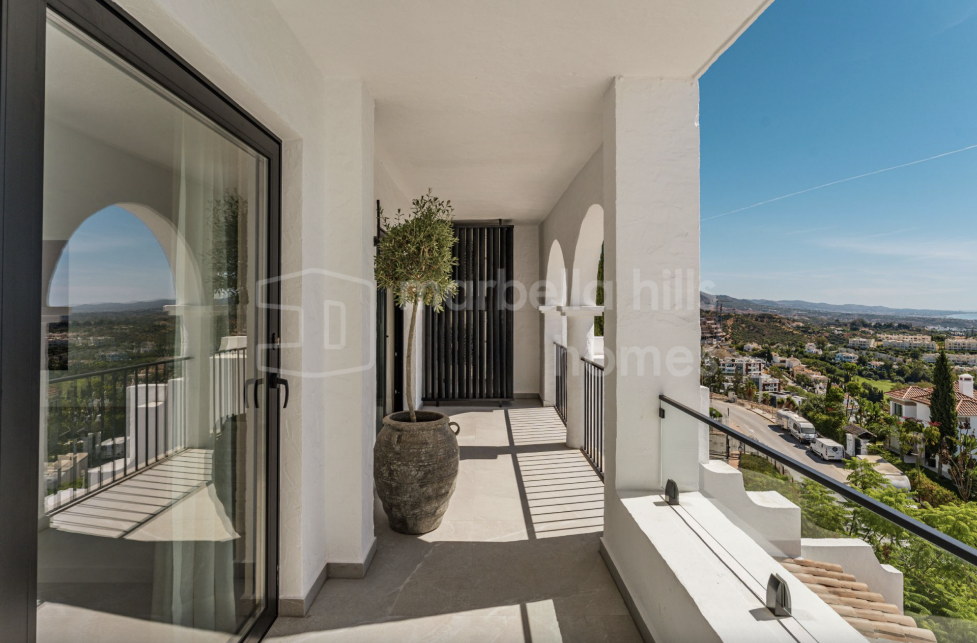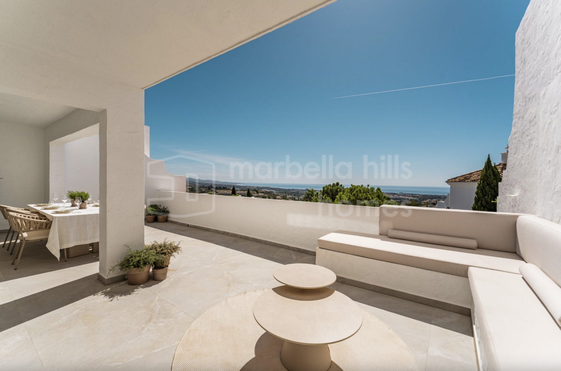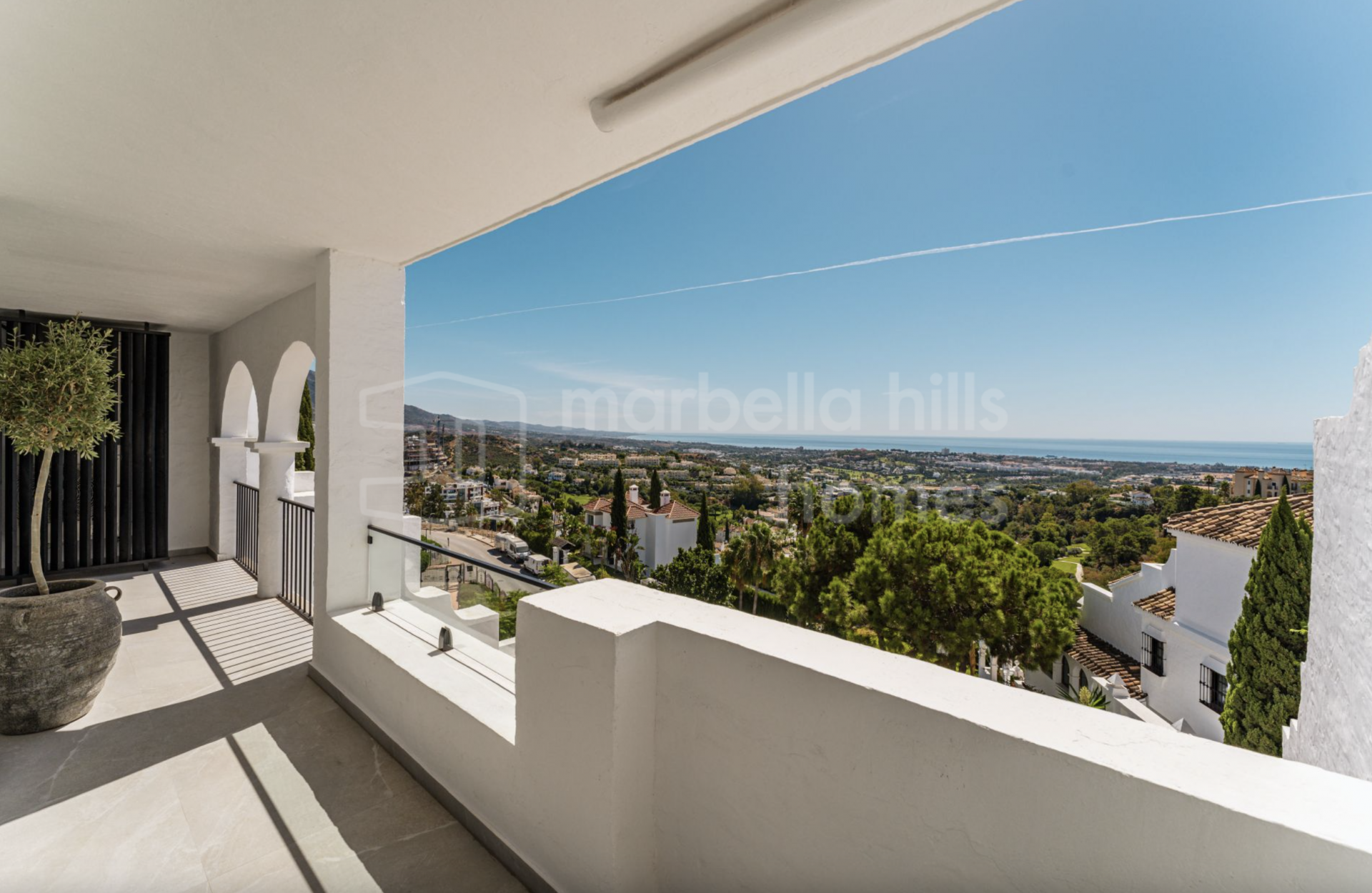 Duplex entièrement rénové à Eagles Village, La Quinta, Benahavís. Design méditerranéen moderne, vues sur le golf, parking privé, licence touristique et proximité du Westin Hotel...