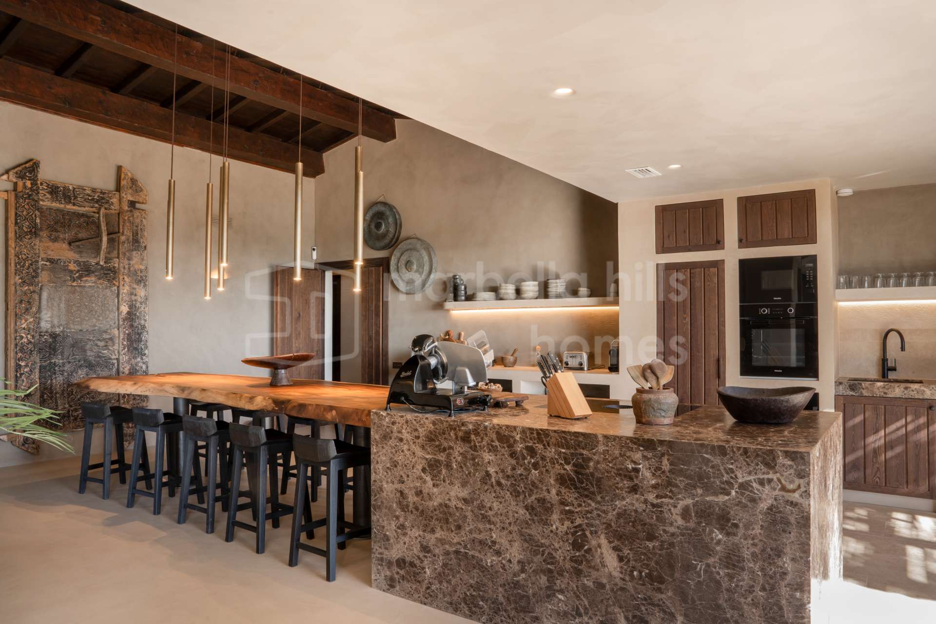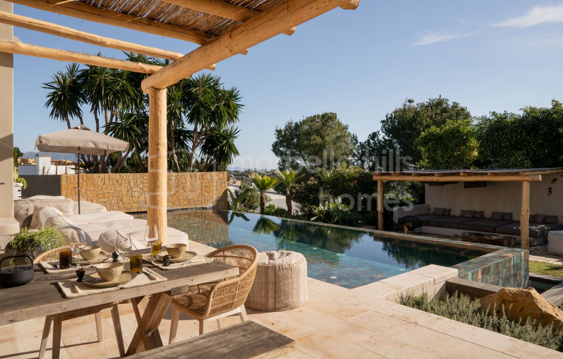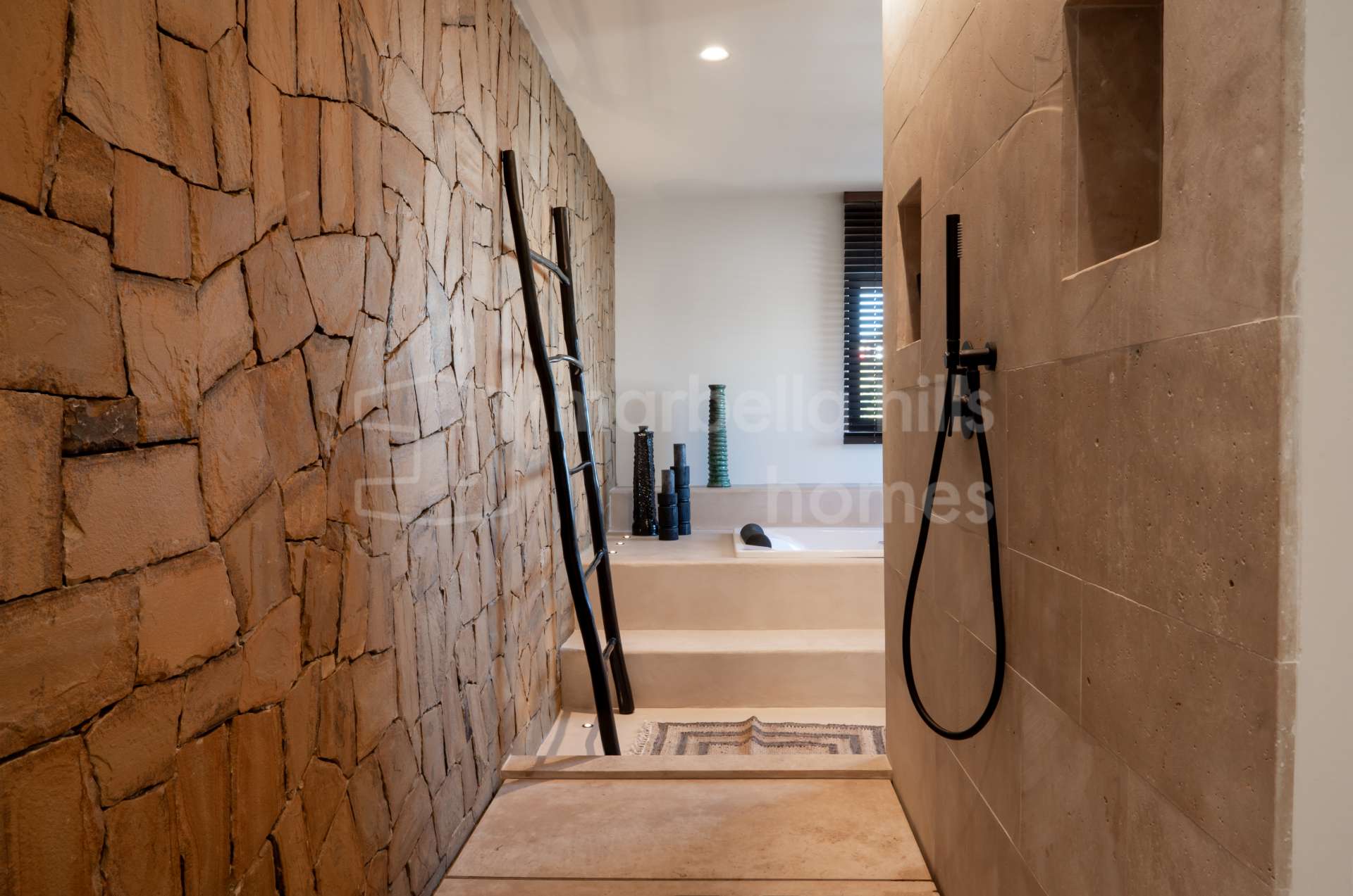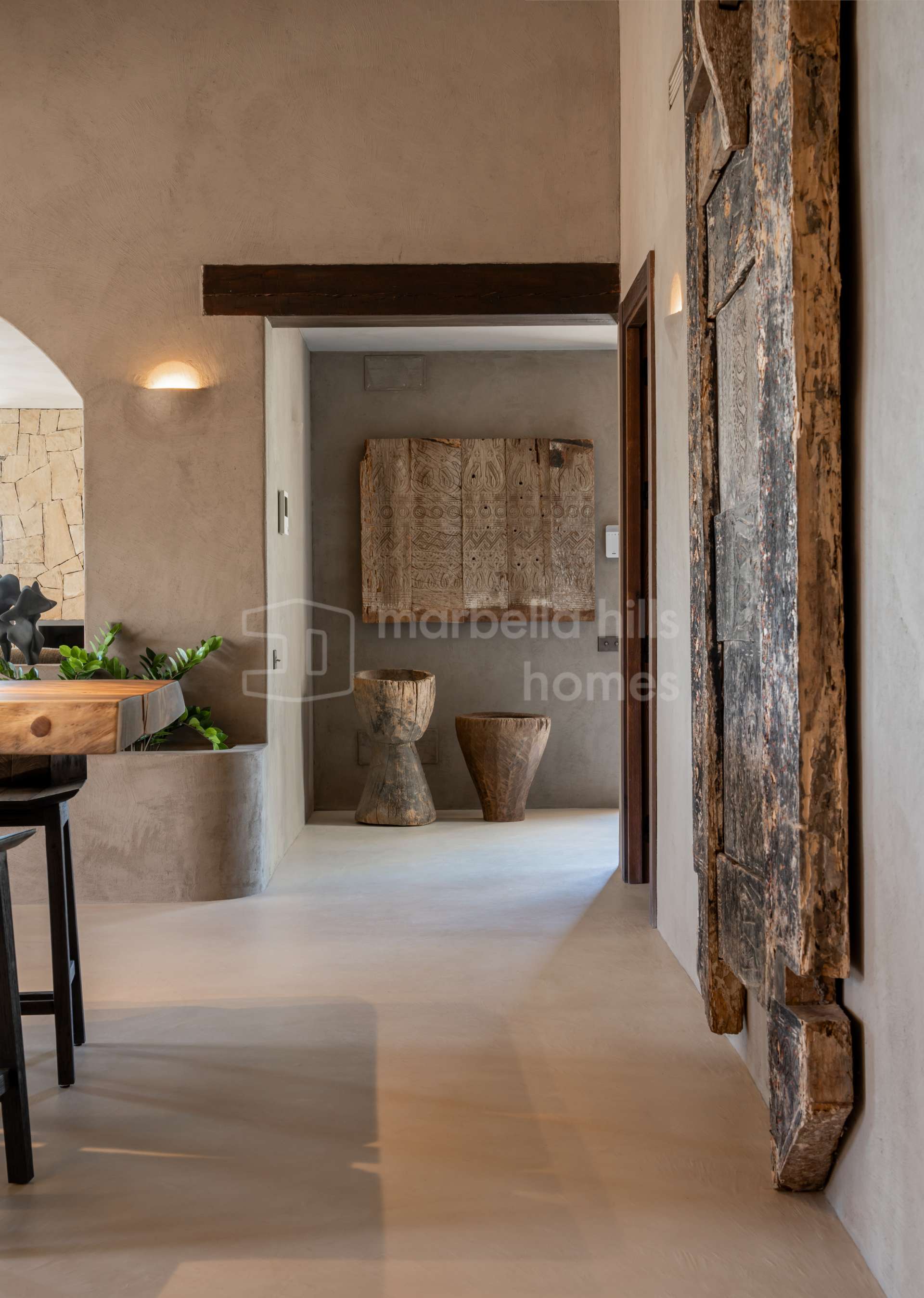 Découvrez une villa véritablement exceptionnelle à Selwo, Estepona — une propriété unique entièrement rénovée en 2024, inspirée par les styles du Mexique, de la Thaïlande, d’Ibiza et de l’Andalousie. Ce chef-d’œuvre architectural allie charme exotique et élégance méditerranéenne contemporaine, offrant de magnifiques vues sur la mer depuis le jardin et la piscine à débordement.