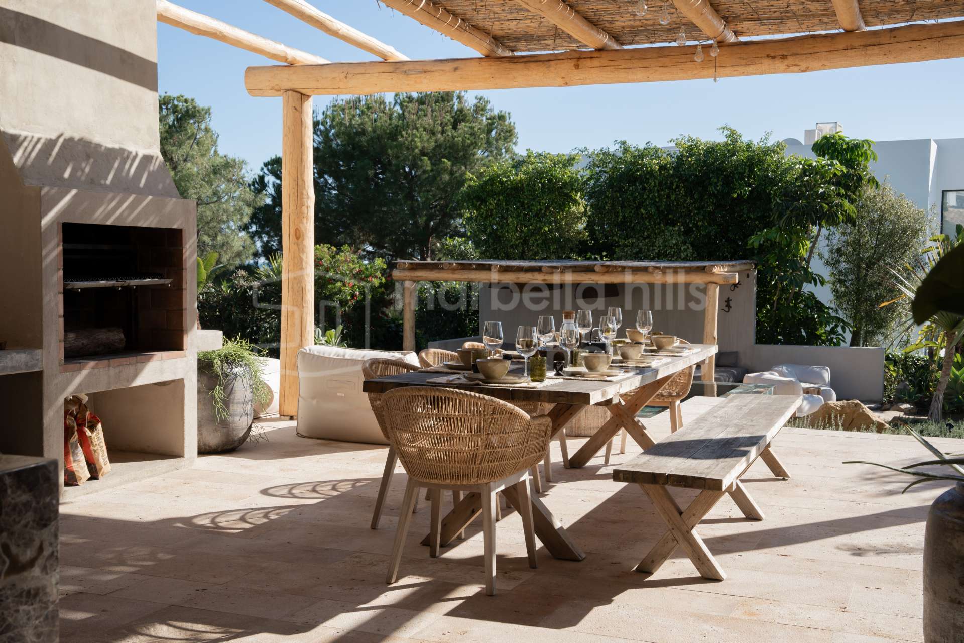 Construite avec un fort engagement pour la durabilité et le confort, la villa est équipée de sols en béton ciré, de chauffage au sol dans toutes les salles de bain, d’une isolation renforcée, de ventilateurs de plafond et d’unités de climatisation indépendantes pour le chaud et le froid. Un système solaire de 24 panneaux assure l’eau chaude et le chauffage de la piscine, garantissant efficacité énergétique et réduction des coûts.