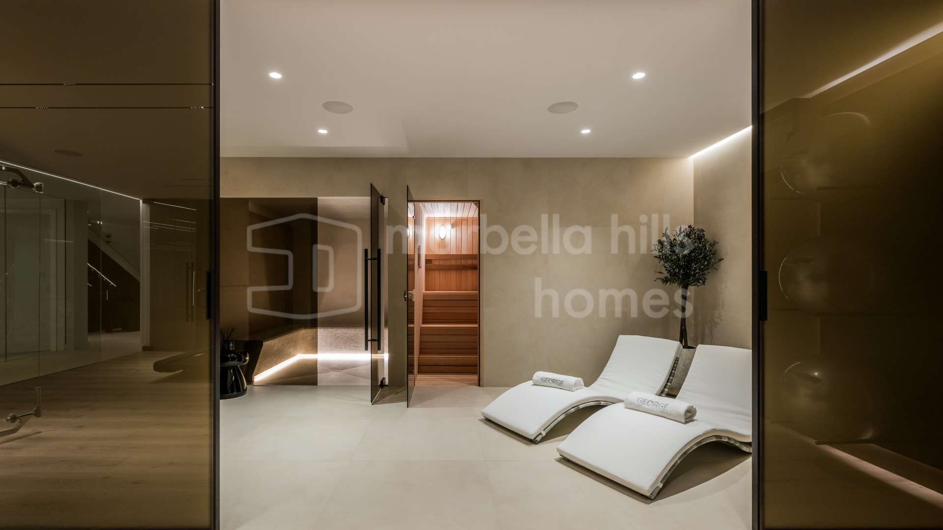 Située dans la prestigieuse communauté fermée de Sierra Blanca, sur la célèbre Golden Mile de Marbella, cette résidence exceptionnelle allie design contemporain, vues panoramiques et intimité absolue. Nichée au pied de la majestueuse montagne de La Concha, elle offre un cadre paisible et naturel à seulement quelques minutes du centre de Marbella, de la vieille ville, du Puente Romano et de Puerto Banús.
