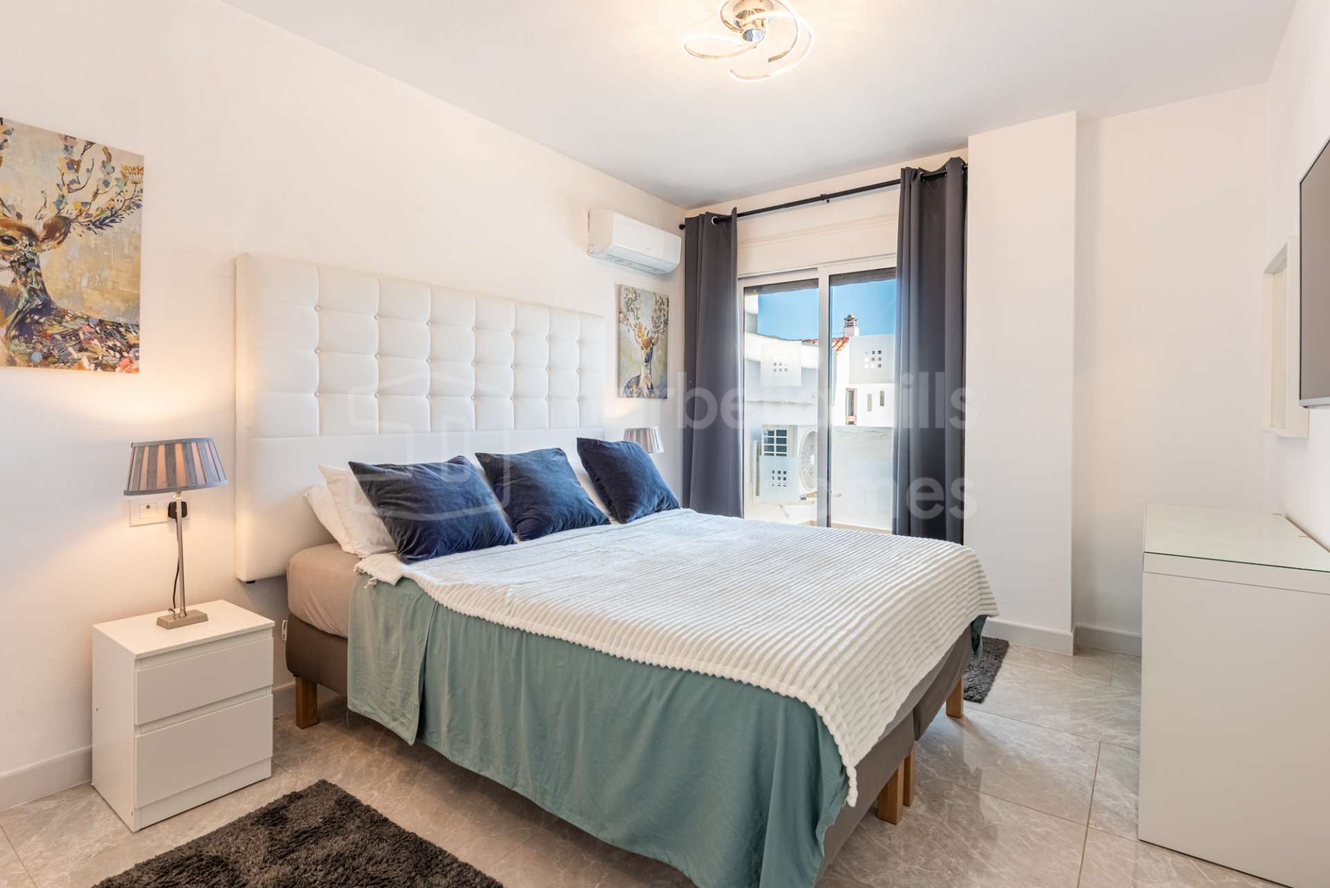 La grande terrasse orientée sud-est, équipée d’une pergola, prolonge harmonieusement l’espace de vie et permet de profiter pleinement du climat méditerranéen. De cet espace extérieur, on profite d’agréables vues sur la montagne de La Concha, ajoutant charme et tranquillité au cadre.