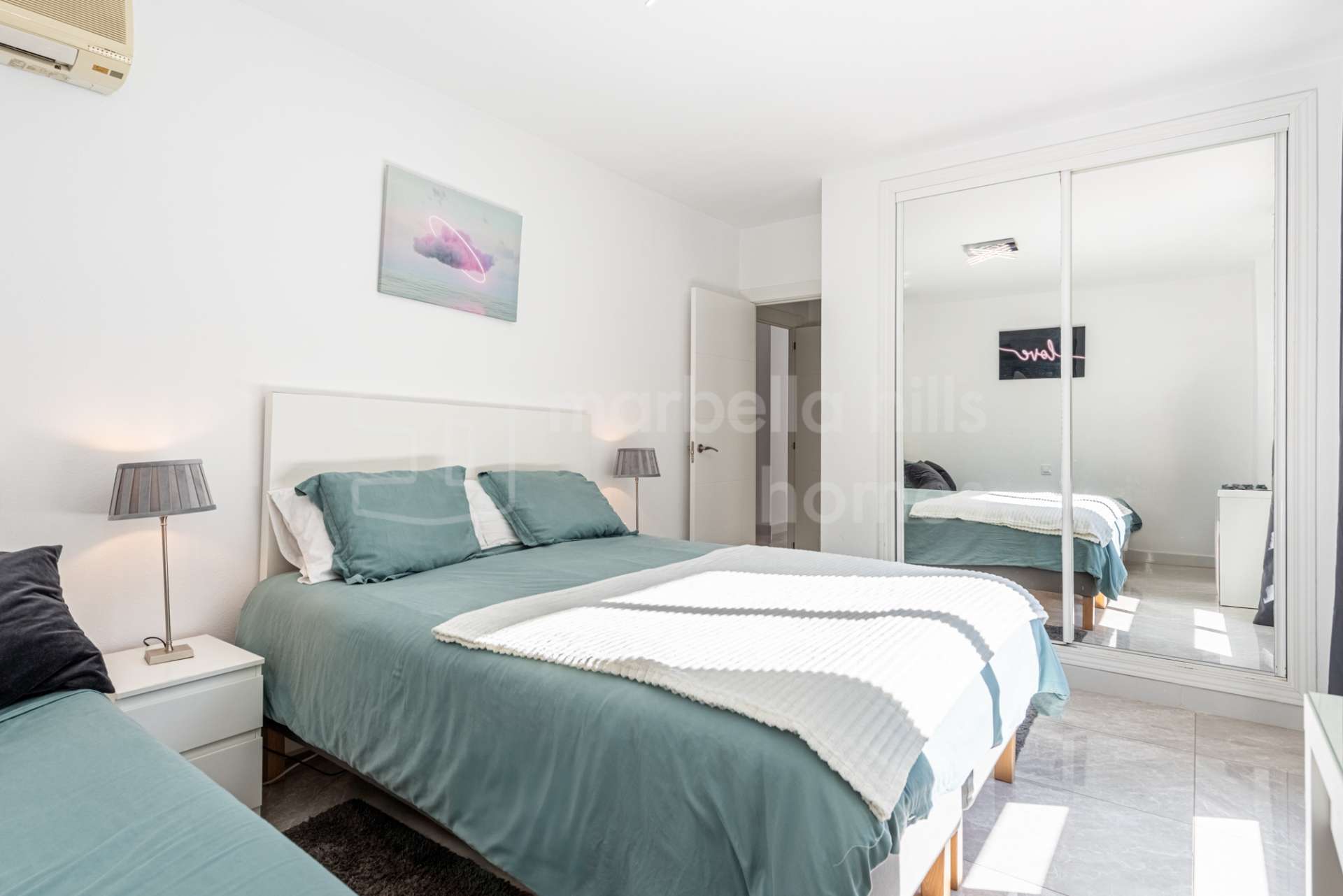 Découvrez cet appartement d’angle entièrement rénové de 3 chambres et 2 salles de bain, situé à La Maestranza, l’une des résidences les plus recherchées de Nueva Andalucía. La communauté, au style andalou traditionnel et dotée d’une sécurité 24h/24, bénéficie d’un emplacement idéal à proximité immédiate de supermarchés, cafés, restaurants, du Centro Plaza et de la célèbre marina de Puerto Banús.