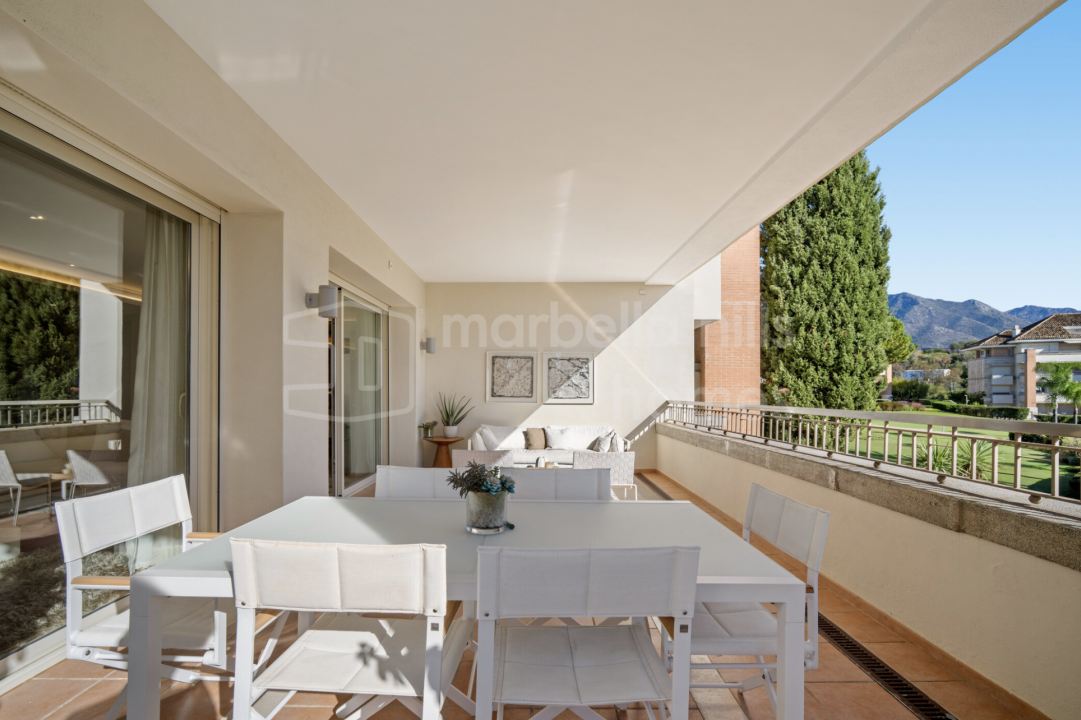 Ce superbe appartement, situé au cœur de Puente Romano, a été entièrement rénové pour offrir un espace moderne et frais. Son aménagement ouvert comprend un grand salon avec un...