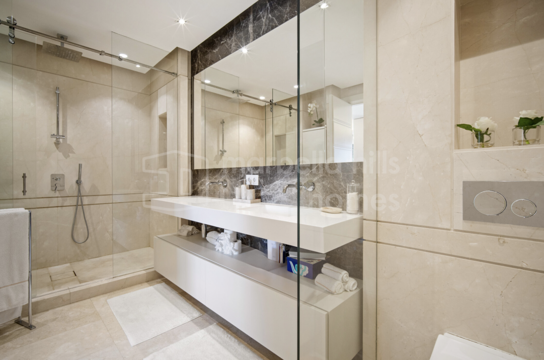 Appartement double de luxe à La Trinidad, Marbella – 4 suites, grandes terrasses, piscines et club privé sur la Golden Mile.