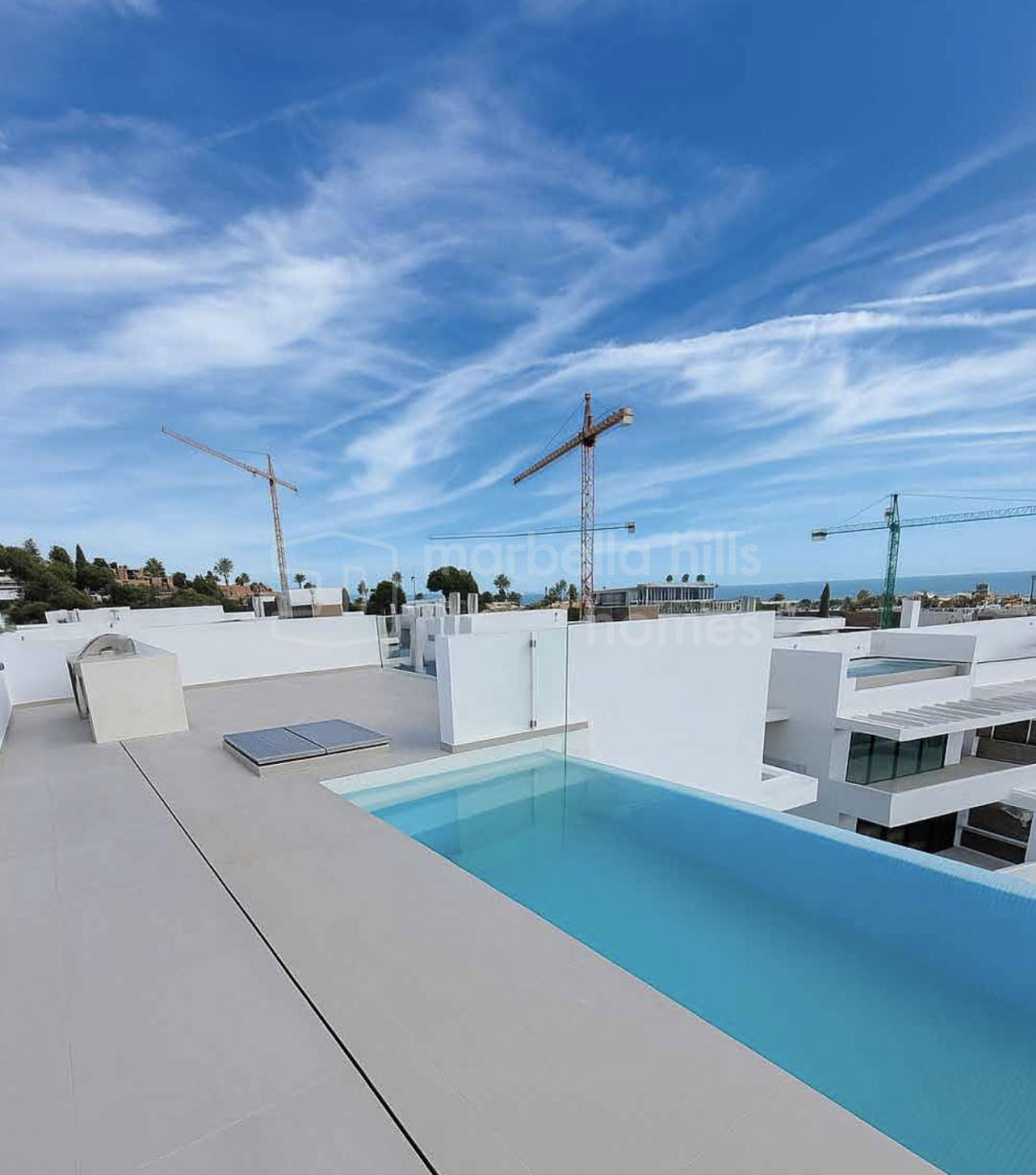 Propriété moderne à Estepona avec vue mer, piscine privée sur le toit et design contemporain haut de gamme sur la Costa del Sol.