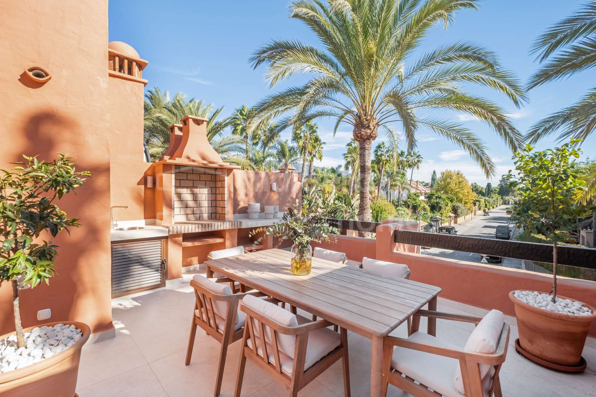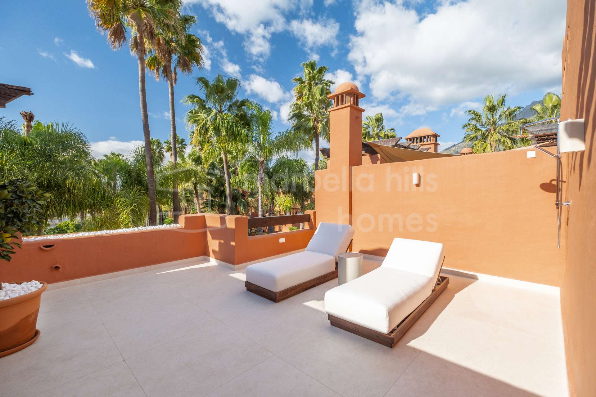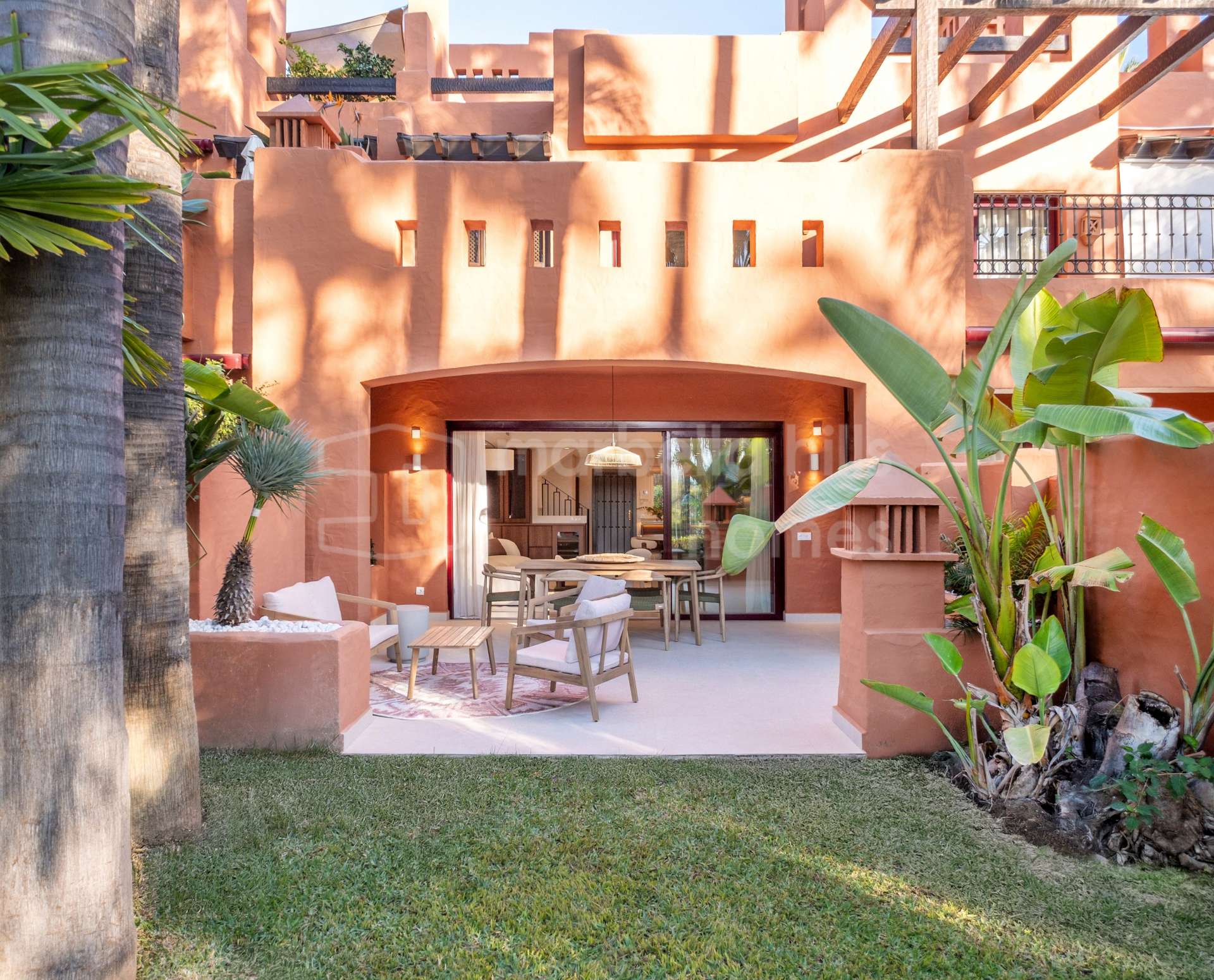 Superbe maison de ville de luxe entièrement rénovée avec 4 chambres et jardin orienté ouest à Altos de Puente Romano, Marbella Golden Mile