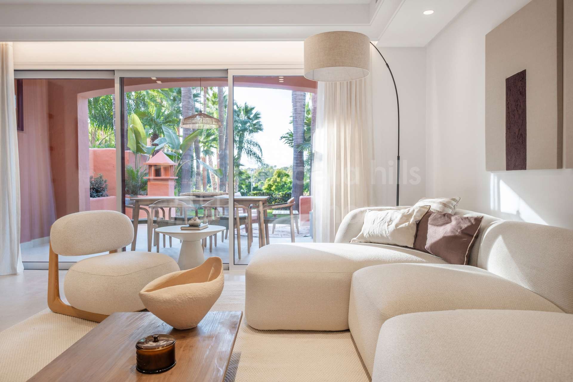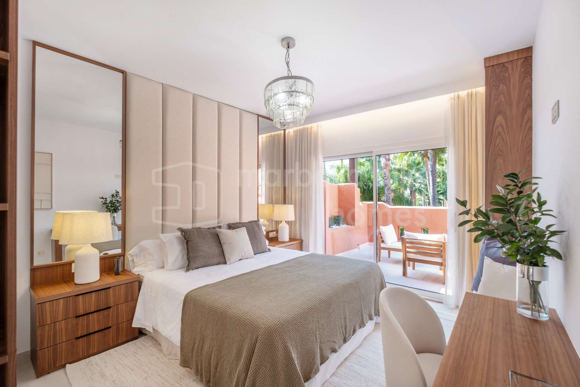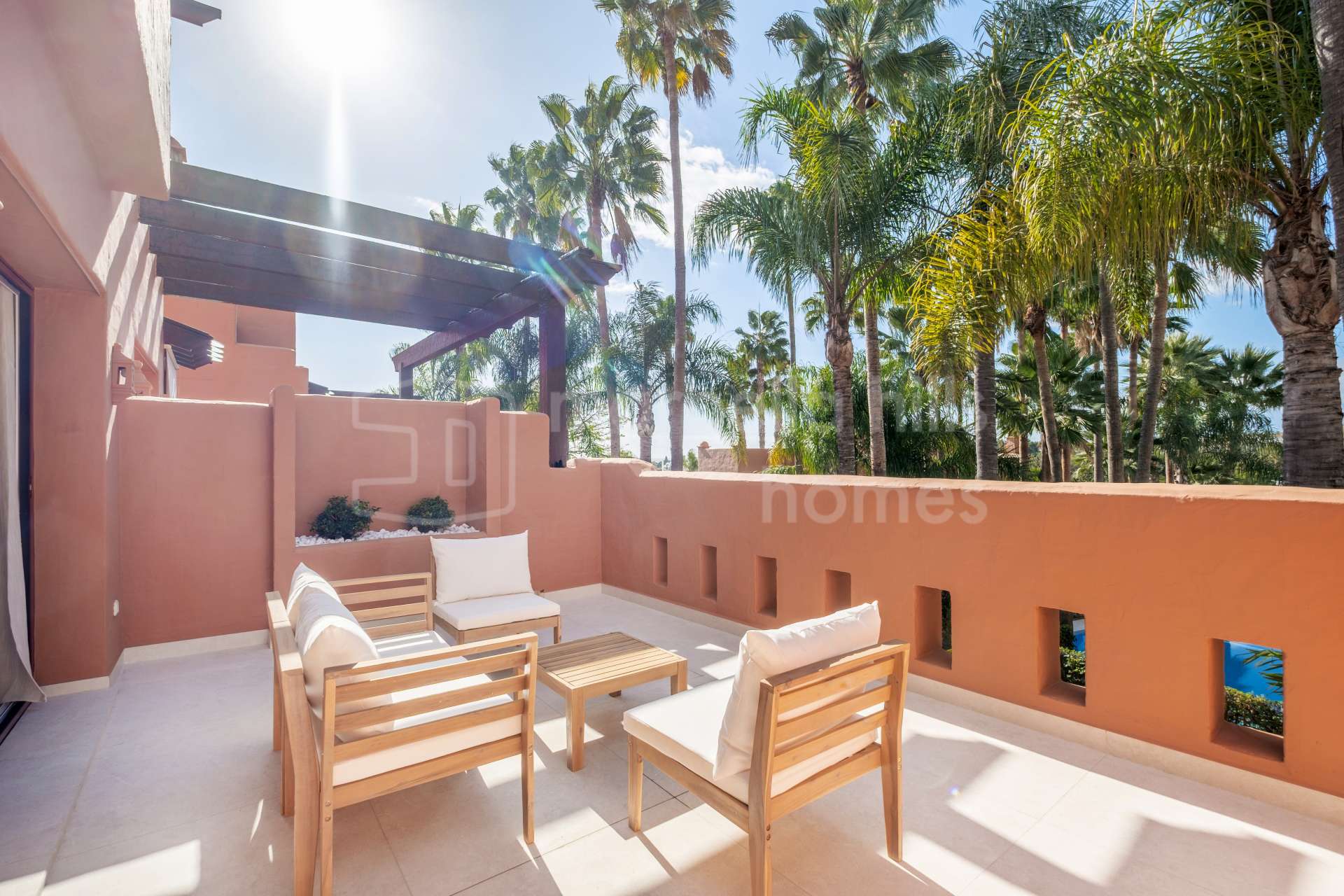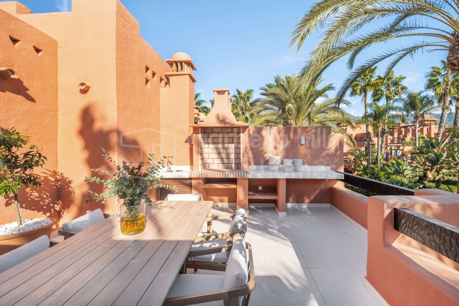 Superbe maison de ville de luxe entièrement rénovée avec 4 chambres et jardin orienté ouest à Altos de Puente Romano, Marbella Golden Mile