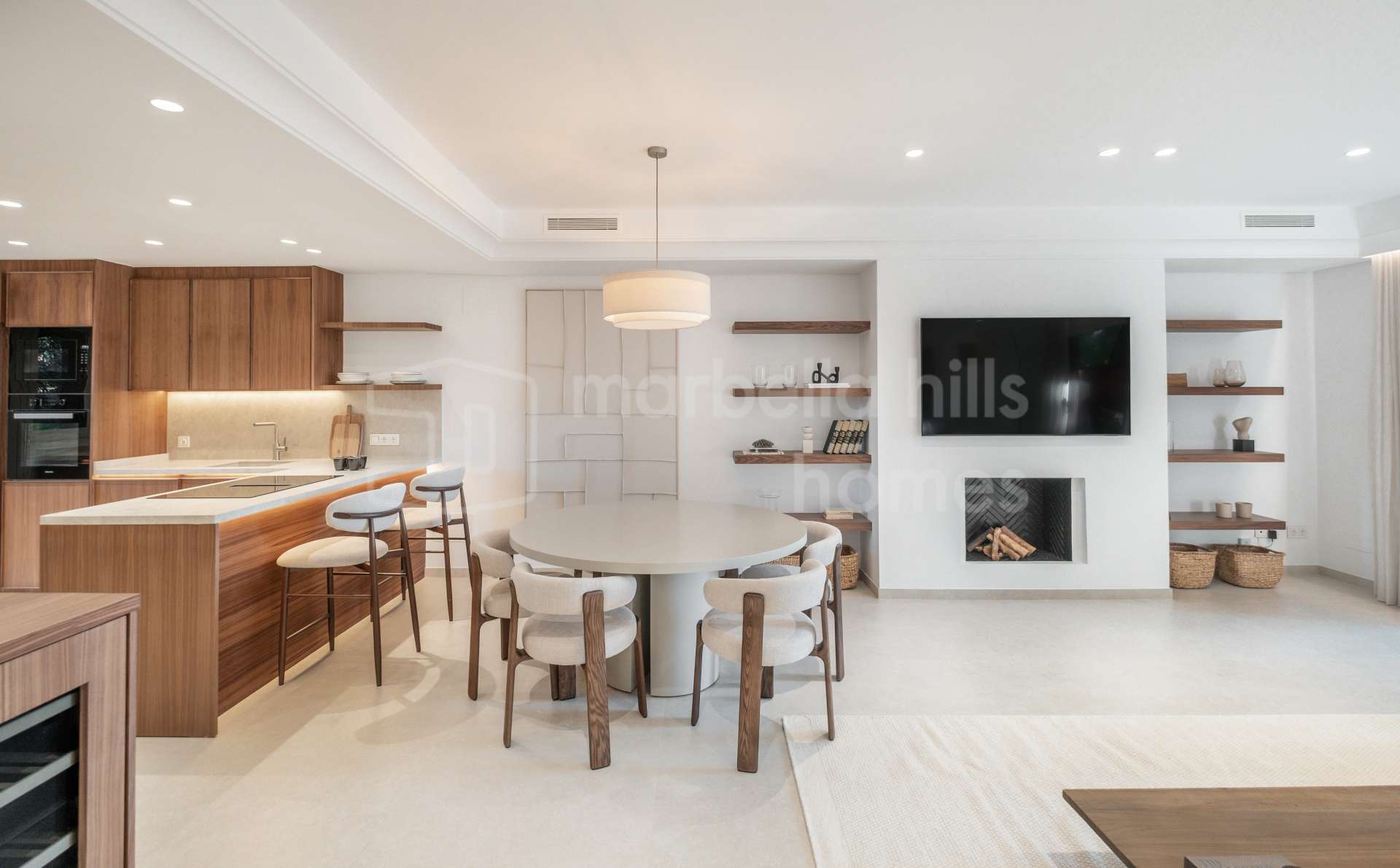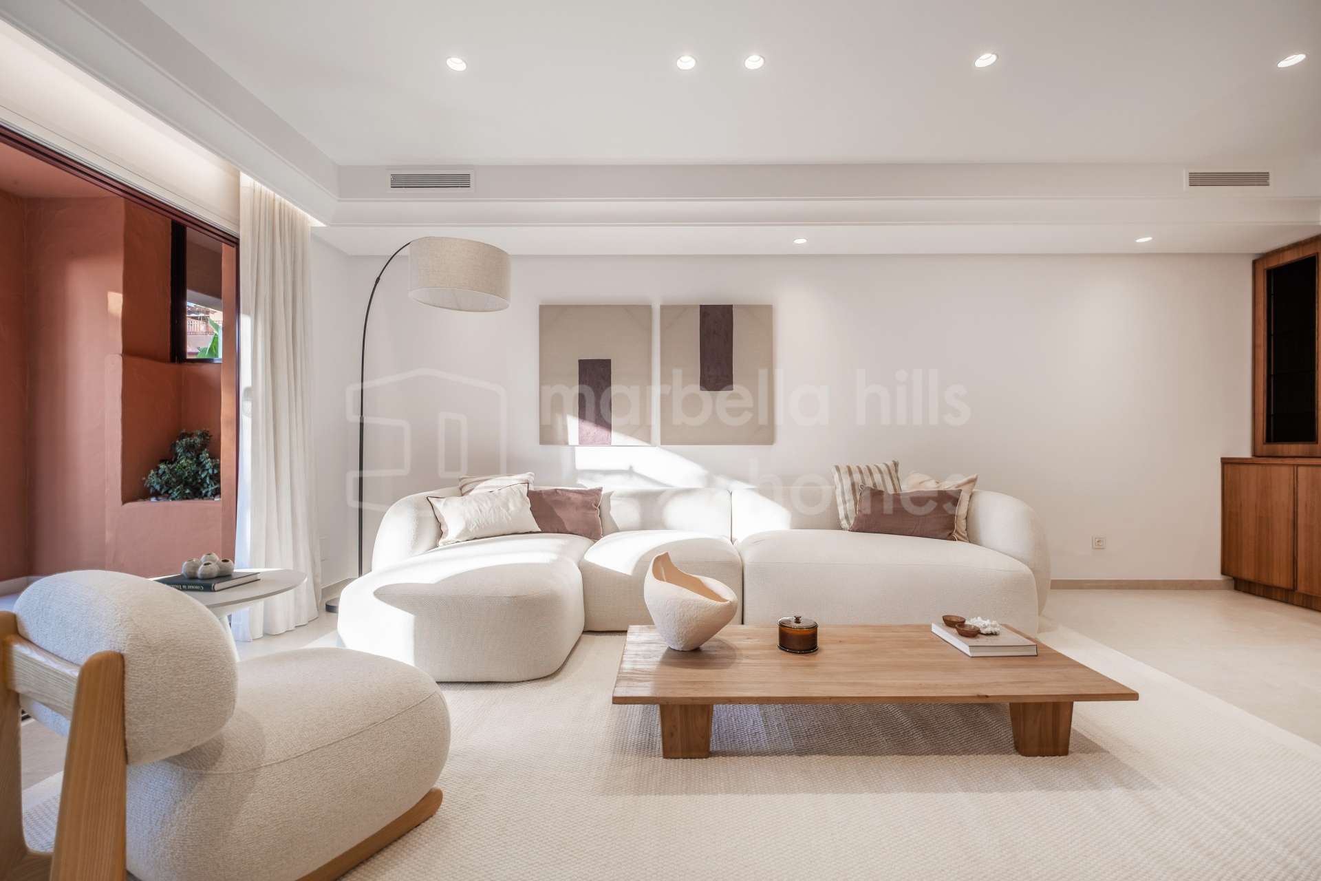 Cette superbe maison de ville de 4 chambres, entièrement rénovée en 2025, est située à Altos de Puente Romano, l’une des communautés fermées les plus prestigieuses de la Golden Mile de Marbella. La propriété présente une menuiserie sur mesure, une cuisine design équipée d’appareils Miele, des finitions contemporaines élégantes et un haut niveau de confort moderne. Toutes les pièces disposent d’un système de climatisation Airzone et les salles de bains bénéficient du chauffage au sol, garantissant un bien-être optimal tout au long de l’année.