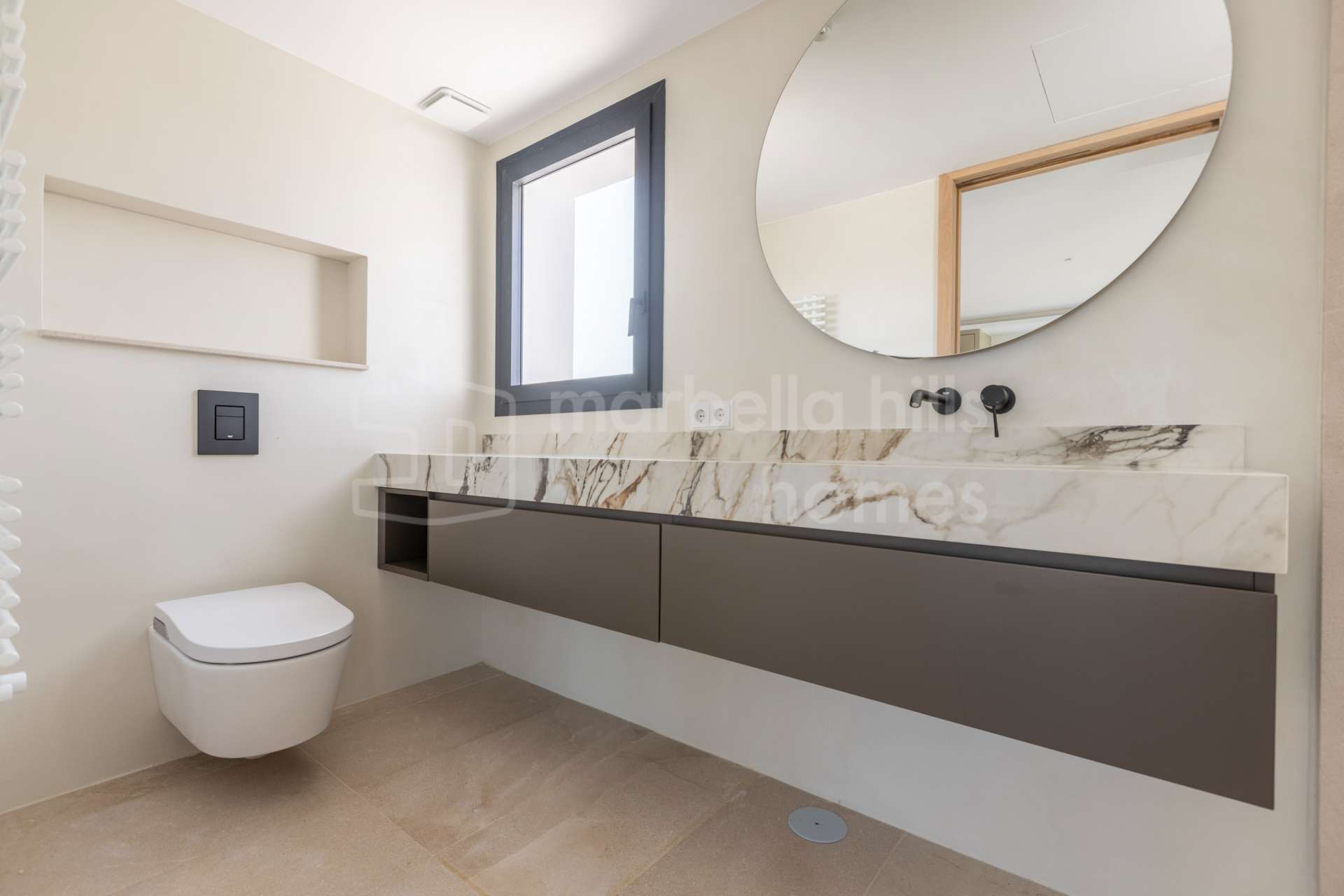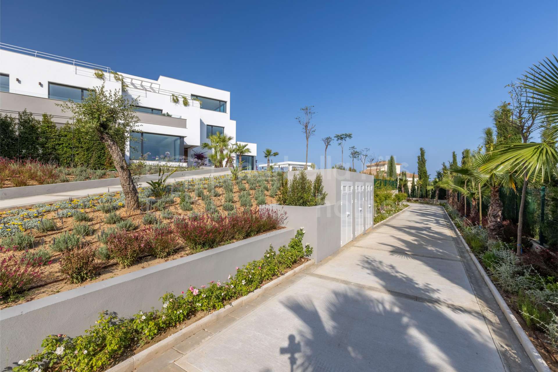 La villa a été conçue avec une attention particulière portée à la durabilité et à la performance énergétique. Elle bénéficie d’une classification énergétique A, du chauffage au sol dans toute la maison, de la climatisation et d’une pré-installation pour panneaux solaires. Parmi les prestations complémentaires figurent un ascenseur privé, un bureau, une cheminée, une buanderie et des espaces techniques, une zone barbecue ainsi qu’un garage privé et un carport couvert.