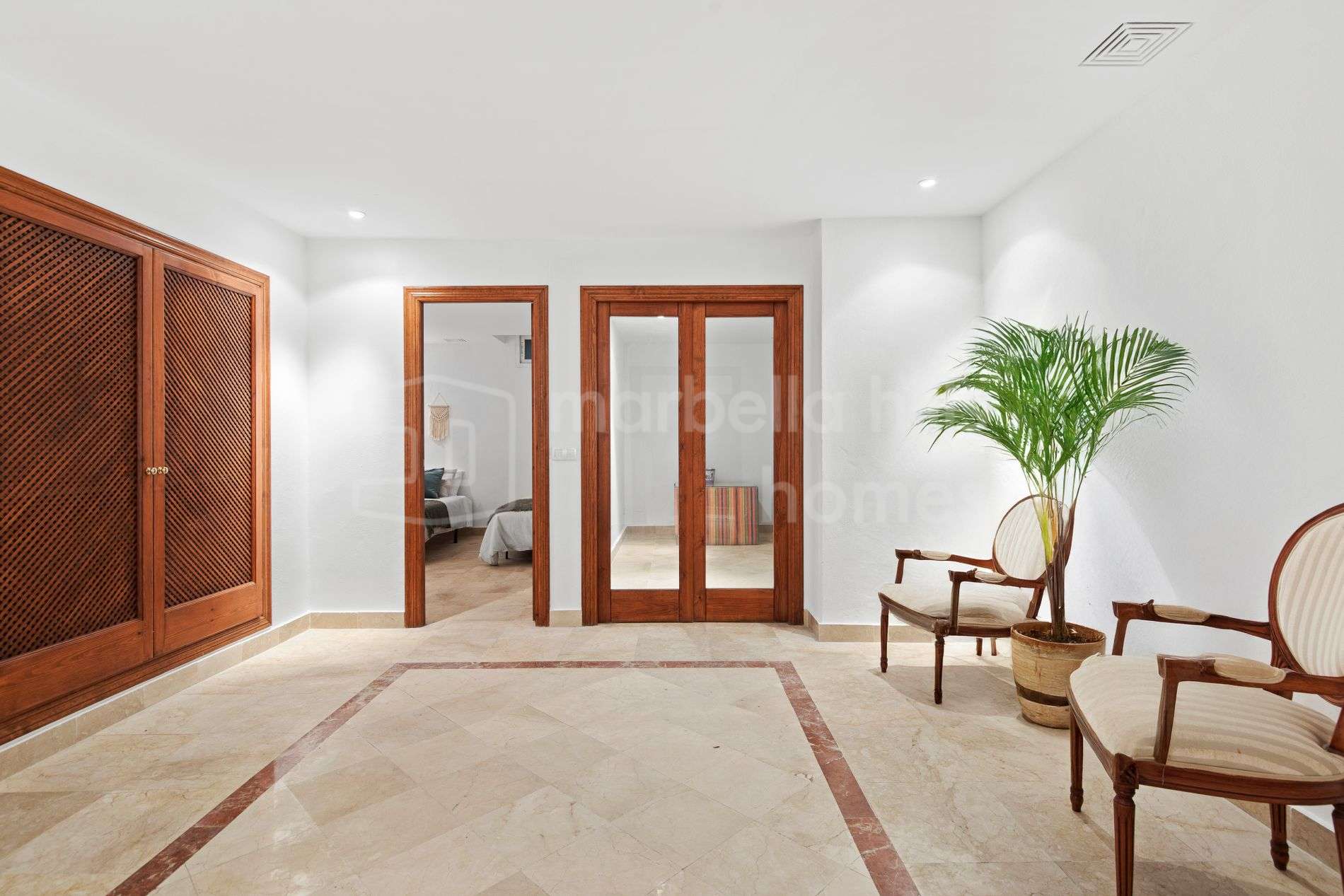 Situé en première ligne de plage au sein de la prestigieuse résidence Dominion Beach, cet appartement en rez-de-chaussée représente une opportunité rare d’acquérir un bien spacieux dans l’un des secteurs les plus recherchés d’Estepona Est, idéalement situé entre Marbella et Estepona.