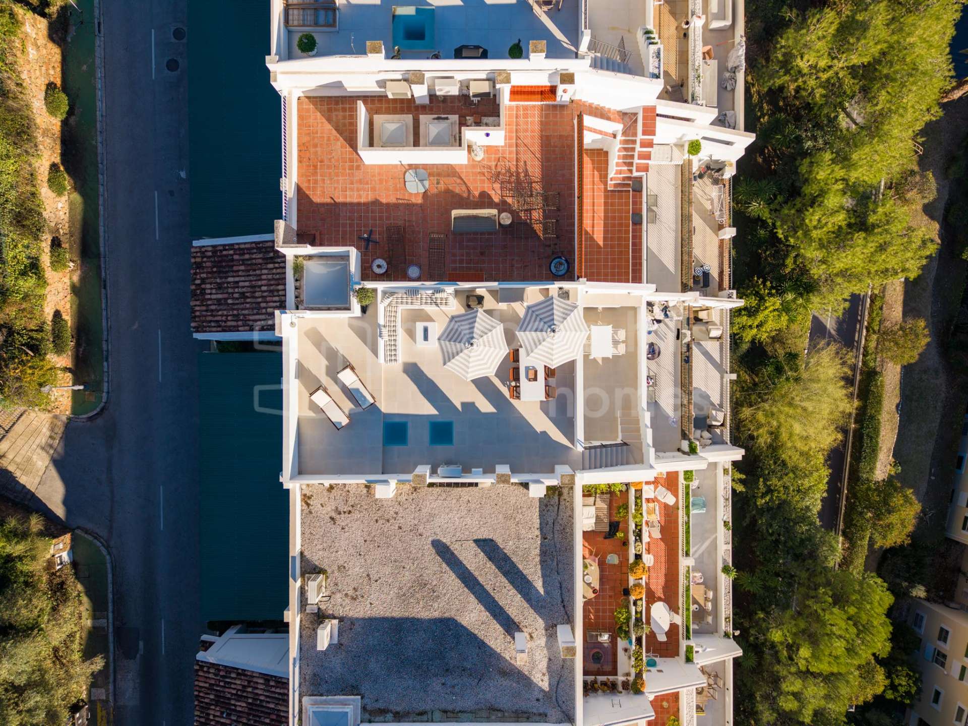 L’un des atouts majeurs de ce penthouse est son vaste toit-terrasse privé. Conçu pour être apprécié toute l’année, cet espace extérieur comprend une douche extérieure, une cheminée à éthanol intégrée, une préinstallation pour une cuisine d’été ainsi que plusieurs zones dédiées aux repas, à la détente et à la convivialité. Le toit-terrasse prolonge naturellement les espaces intérieurs tout en offrant une intimité remarquable et des vues entièrement dégagées. Un espace de rangement supplémentaire est également disponible à ce niveau.
