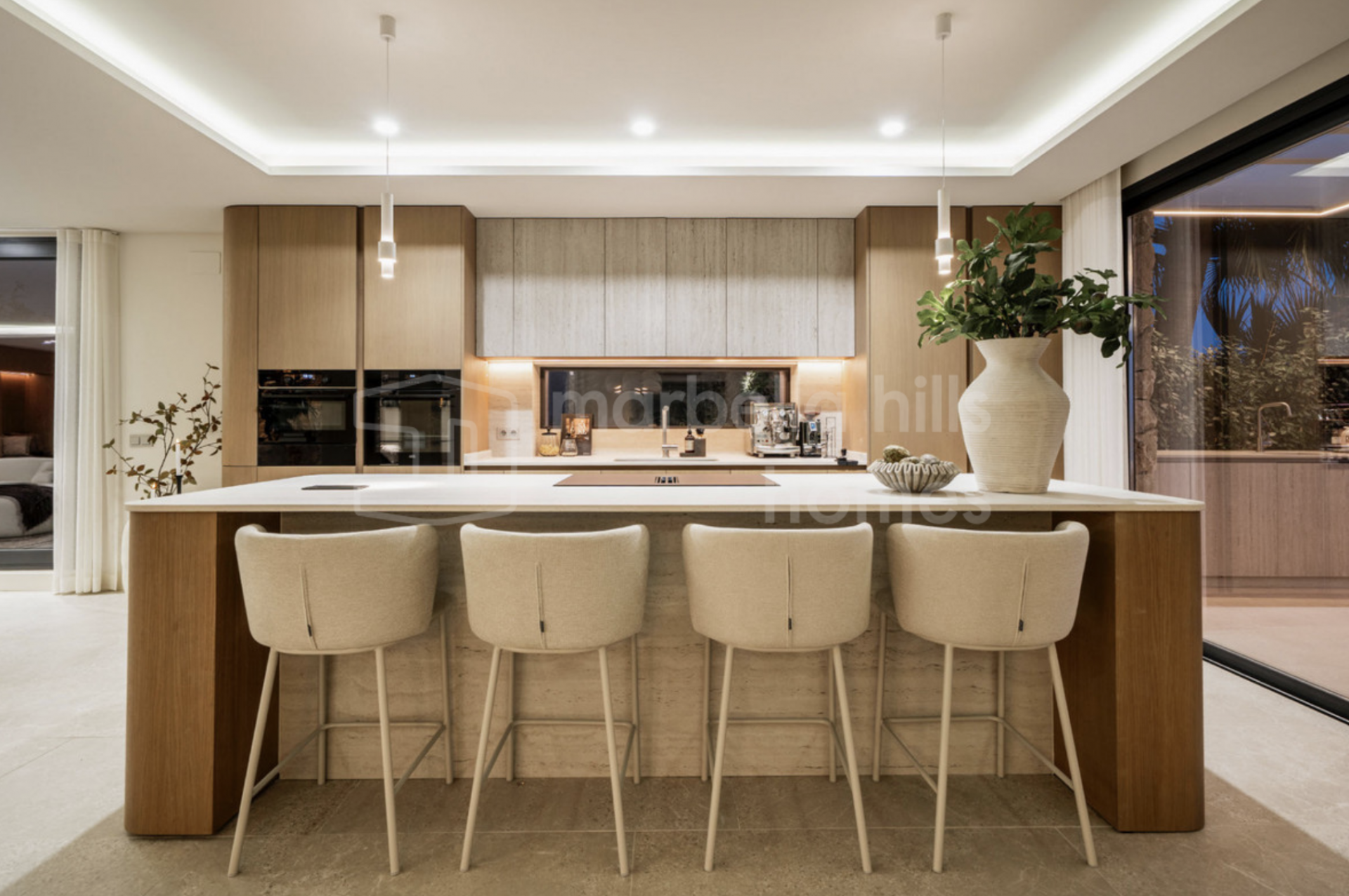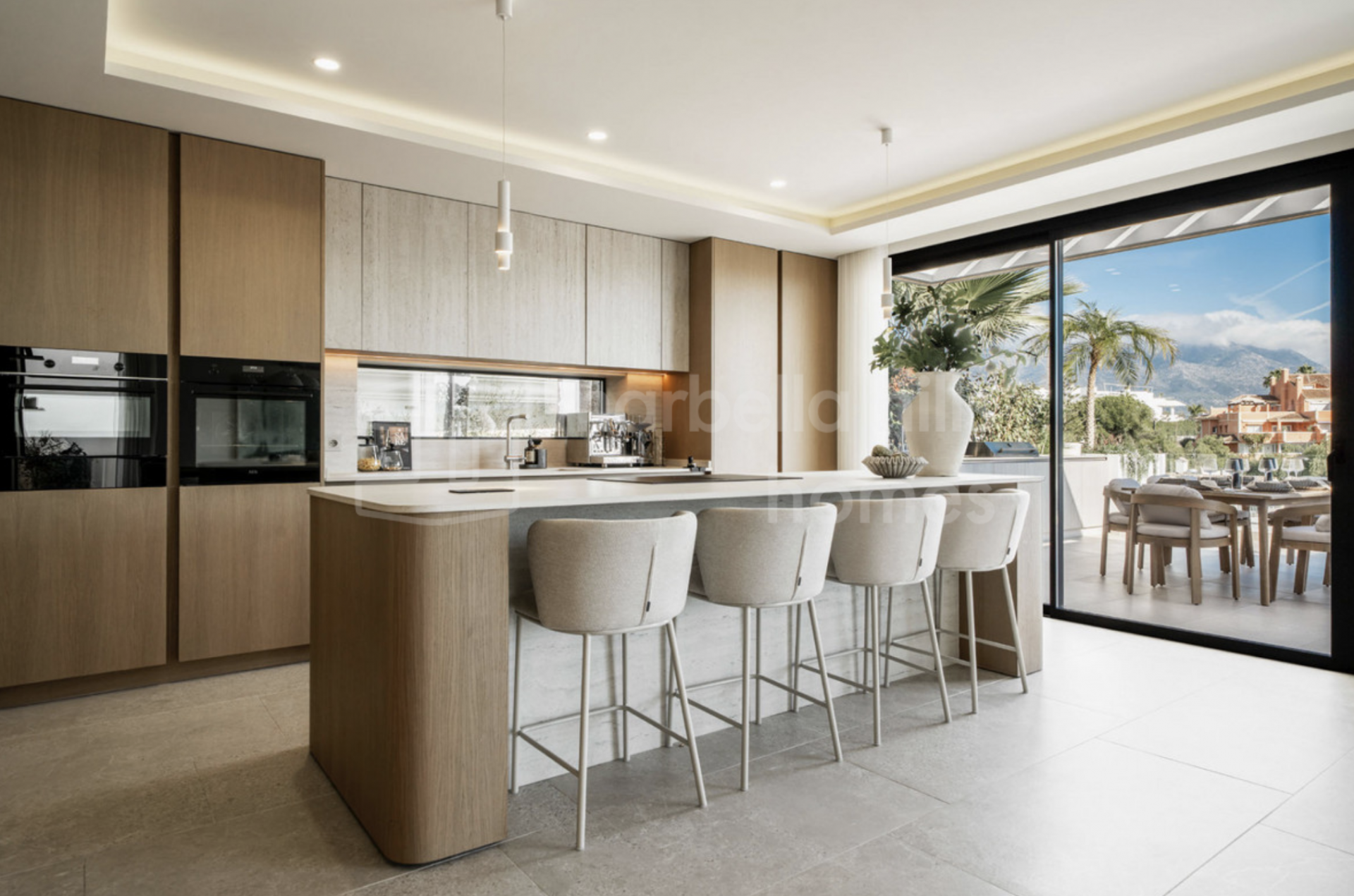 Développée sur trois niveaux, la villa profite d’une orientation est-ouest idéale, garantissant une luminosité naturelle tout au long de la journée et une atmosphère intérieure claire et ouverte. Le niveau principal accueille un élégant espace salon, salle à manger et cuisine en open space, s’ouvrant harmonieusement sur la terrasse principale. Cet espace extérieur, parfaitement conçu pour recevoir, comprend une cuisine d’été et une grande piscine privée équipée d’un système de nage à contre-courant, le tout sublimé par des vues dégagées exceptionnelles.