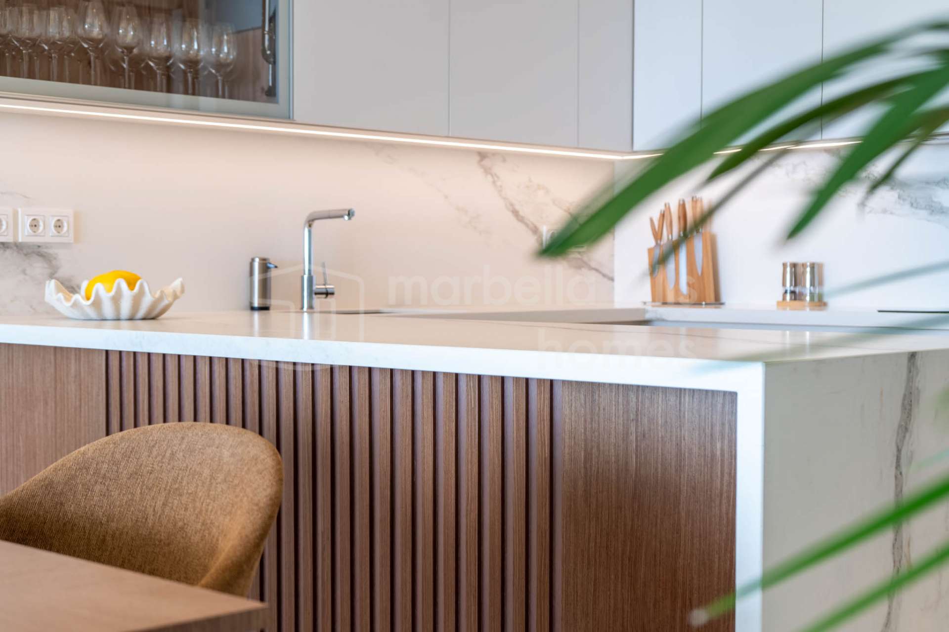 La cuisine design signée Gunni & Trentino est entièrement équipée avec des appareils électroménagers haut de gamme et des finitions contemporaines, alliant fonctionnalité et élégance. Un système audio intégré dans le salon et sur la terrasse renforce l’expérience de vie intérieure-extérieure.
