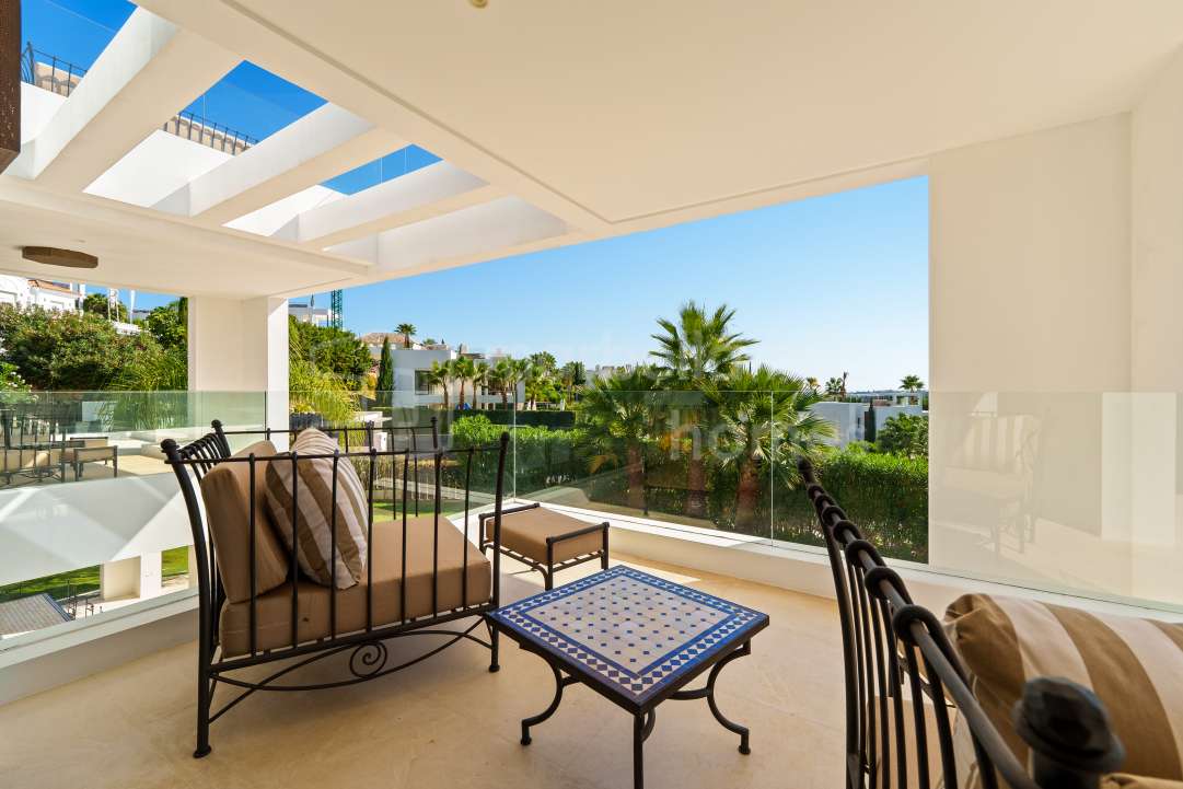 Cuisine entièrement adaptée, À proximité des commerces, Proche des écoles, Caméras de surveillance, Appartement d'invités, Vue partielle sur la mer, Cheminée, Internet - Fibre optique, Cave, Chambre d'invités, Entrepôt, Alarme, Solarium, Double vitrage, Salle à manger, Toilette d'invités, Terrasse privée, Cuisine équipée, Salle de séjour, Services de proximité, Vue sur le golf, Système domotique, Buanderie, Internet - Wi-Fi, Placards, Climatisation, Vue sur le jardin, Golf à proximité, Terrasse découverte, Salle de jeux, Salle à manger séparée, Cuisine ouverte, Entièrement meublé, Excellent état, Récemment rénové.