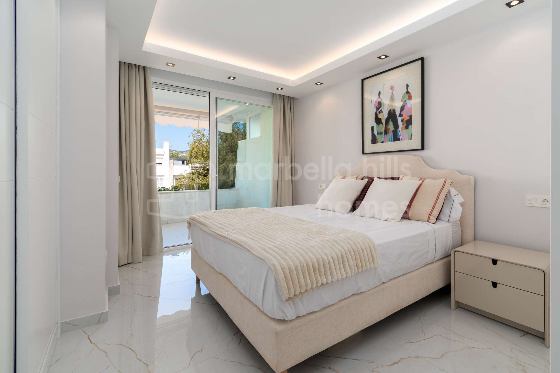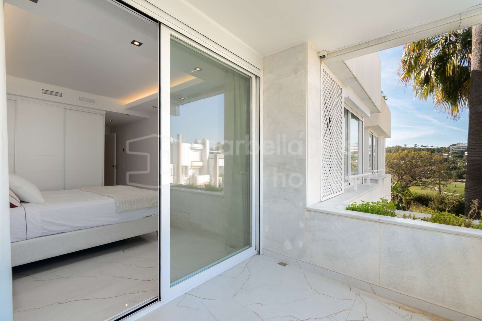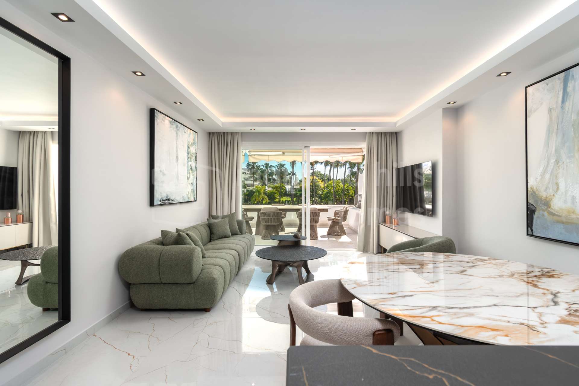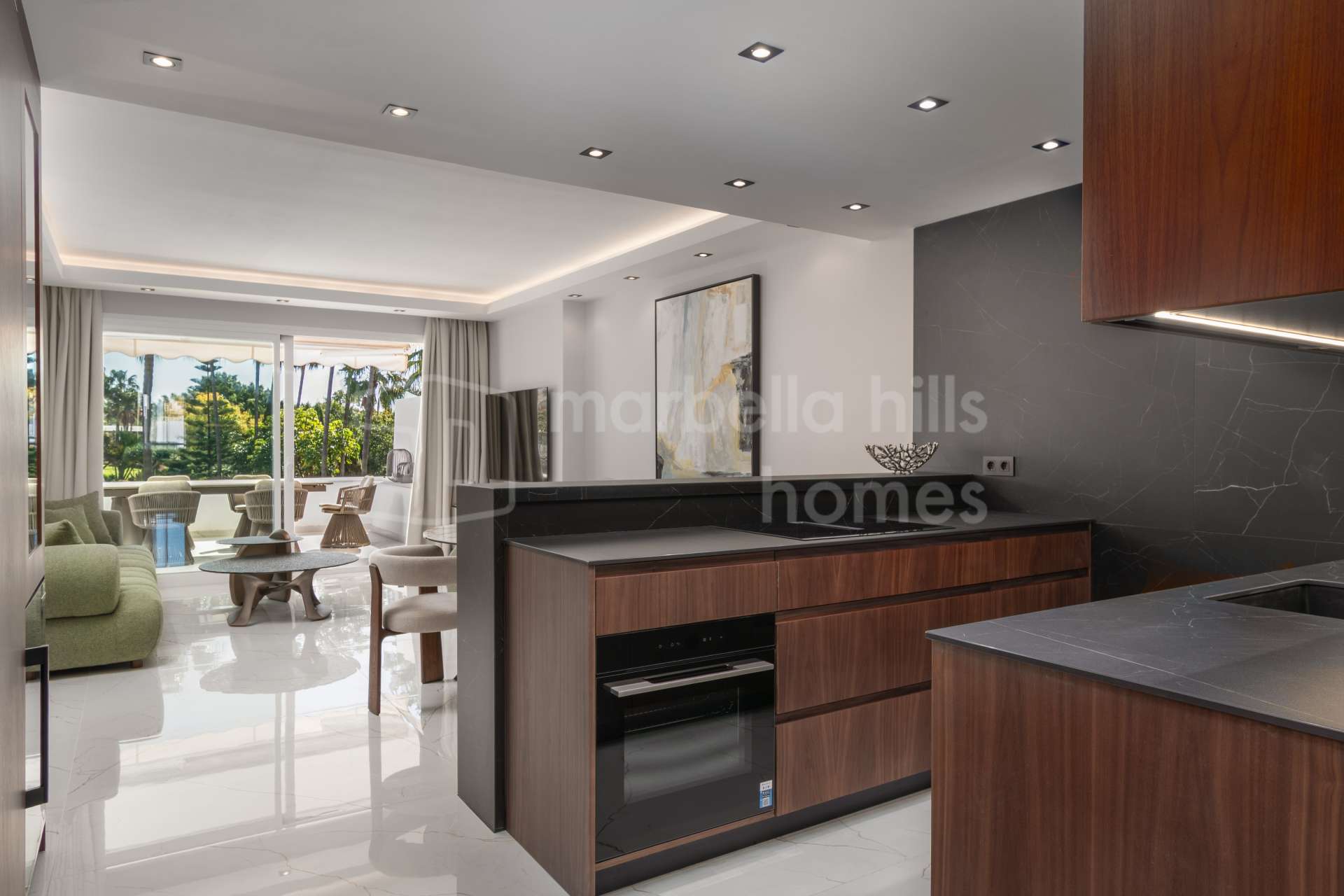 Appartement à vendre à Nueva Andalucía, situé dans la résidence recherchée Los Granados Golf, offrant un intérieur récemment rénové et de beaux espaces extérieurs.