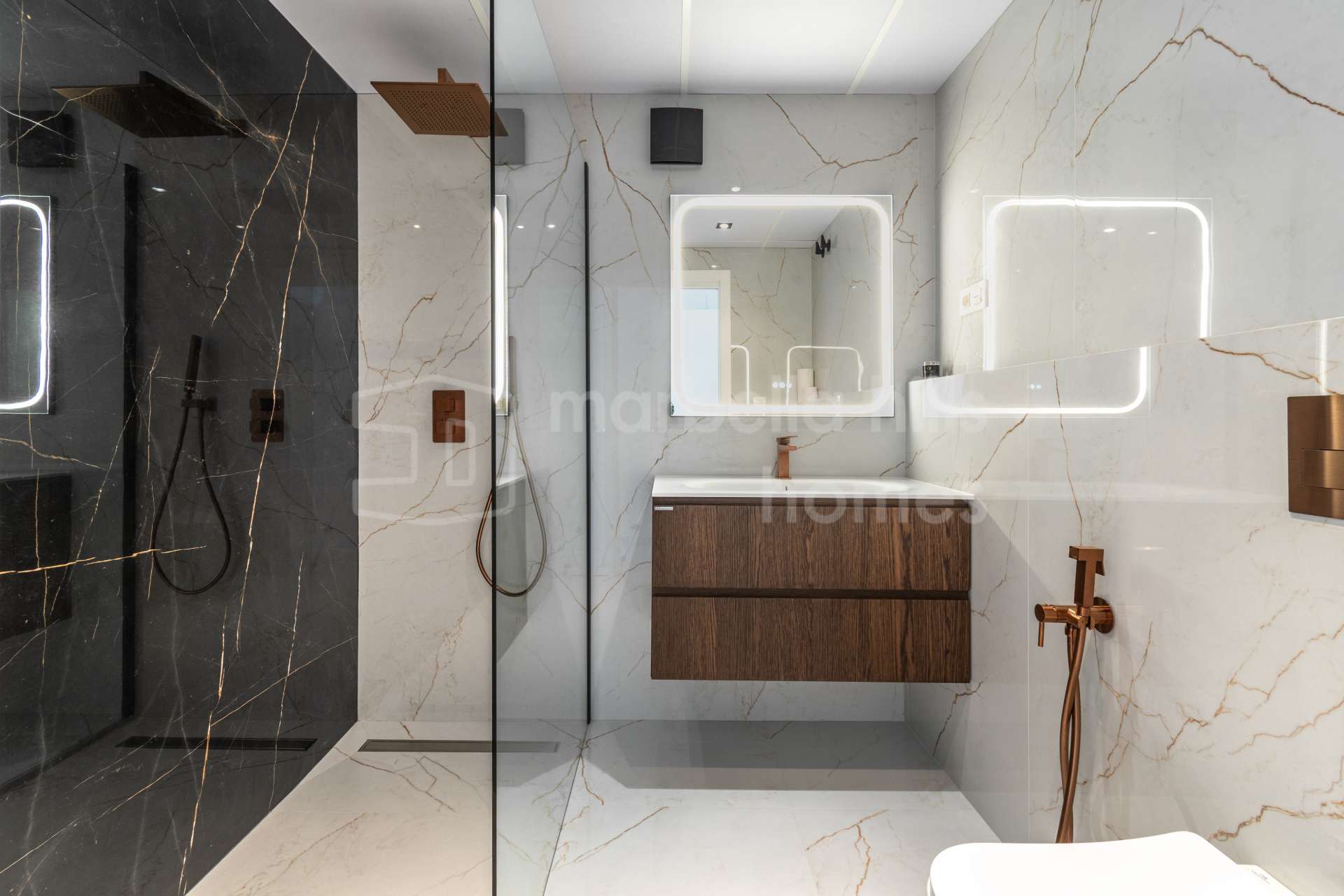 Situé en première ligne de golf à Nueva Andalucía, l’appartement est proche des commodités, de la plage et à quelques minutes de Puerto Banús et de Marbella.