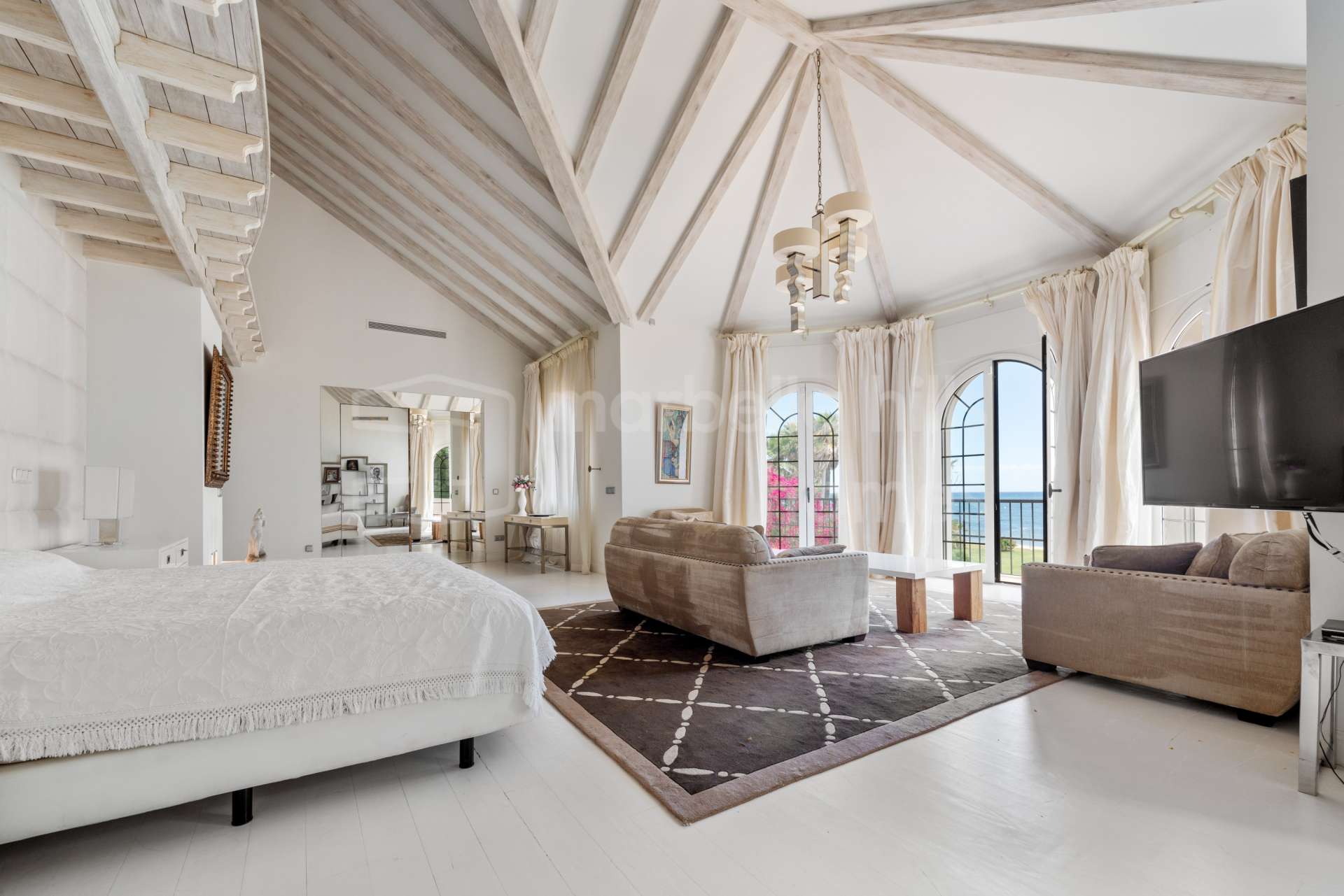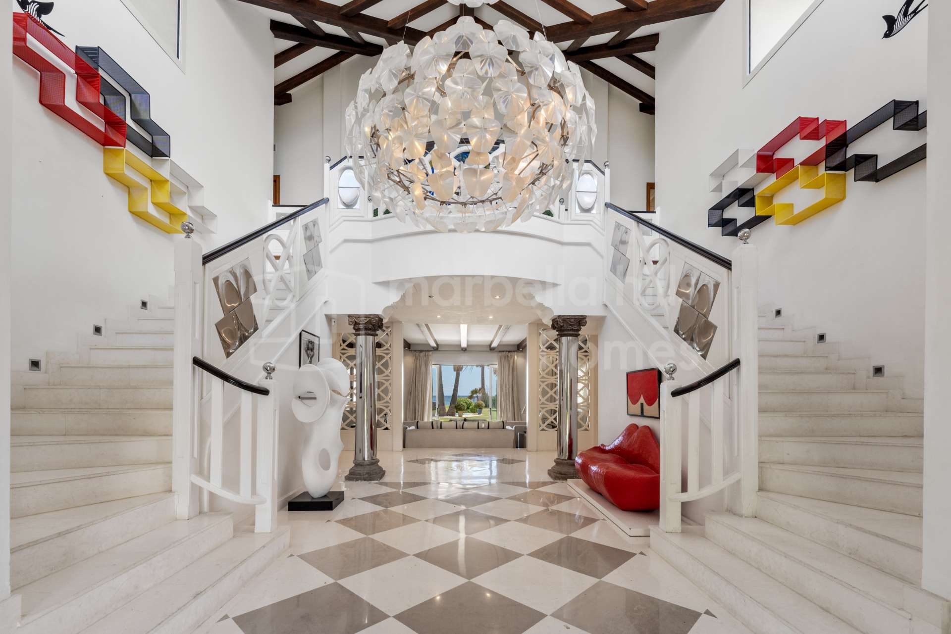 Cette villa en première ligne de plage à Estepona dispose de 9 chambres et 8 salles de bains, réparties de manière à offrir à la fois intimité et fonctionnalité.