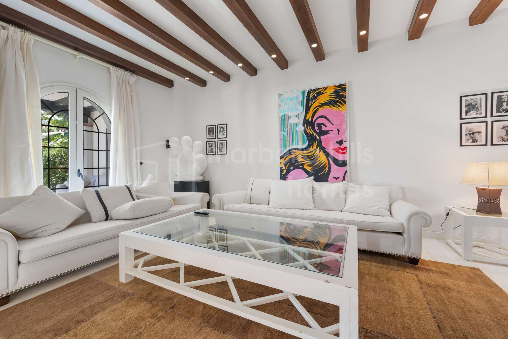 Située en première ligne de plage sur la Nouvelle Mille d’Or d’Estepona, cette villa bénéficie d’un emplacement privilégié sur la Costa del Sol.