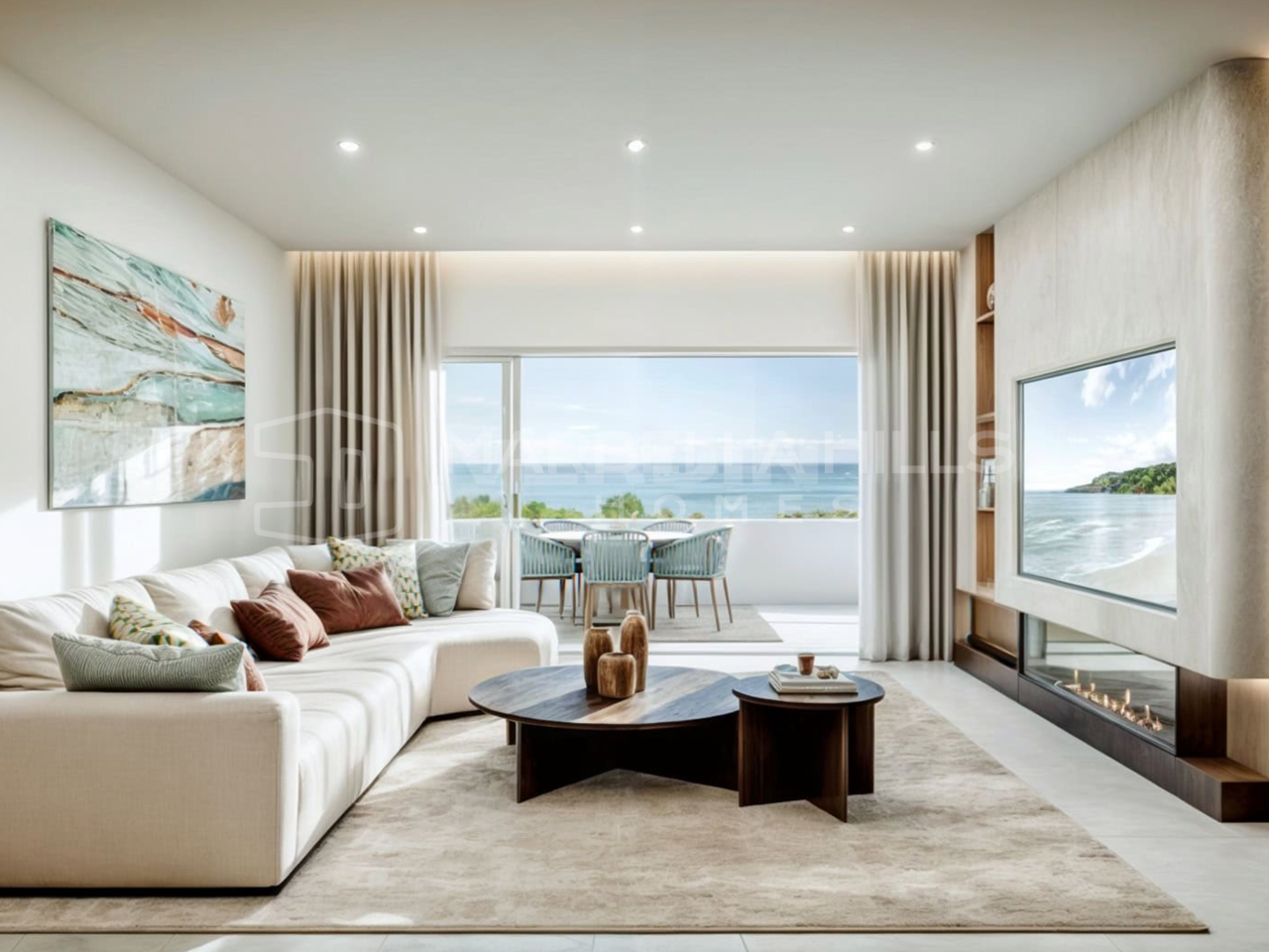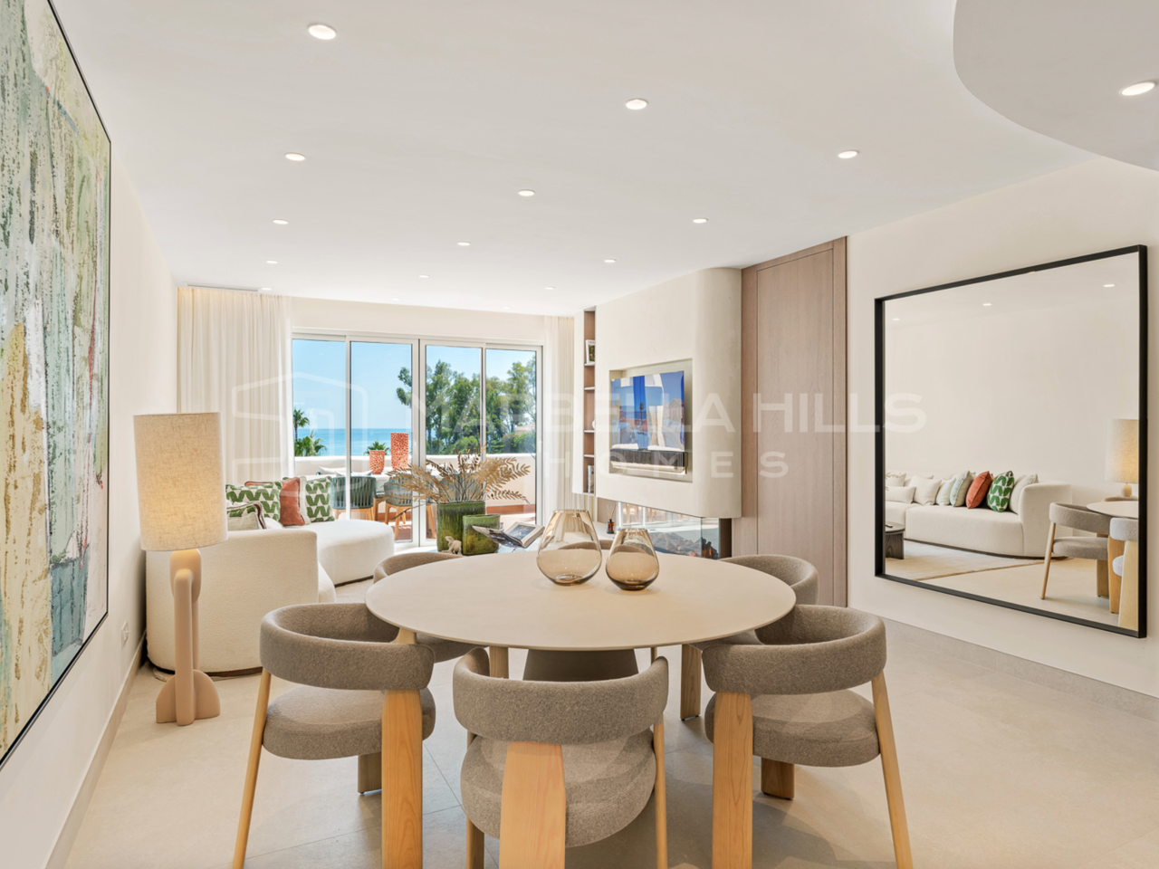 Répartie sur deux niveaux, la propriété offre 186 m² habitables et 115 m² de terrasses. Le niveau principal s’ouvre sur un élégant hall d’entrée menant à un vaste espace ouvert comprenant salon, salle à manger et cuisine. La cuisine américaine entièrement rénovée est équipée d’appareils haut de gamme et d’un îlot central, alliant design contemporain et fonctionnalité. Le salon s’ouvre directement sur une grande terrasse, idéale pour les repas en extérieur et les soirées détendues avec vue imprenable sur la mer.