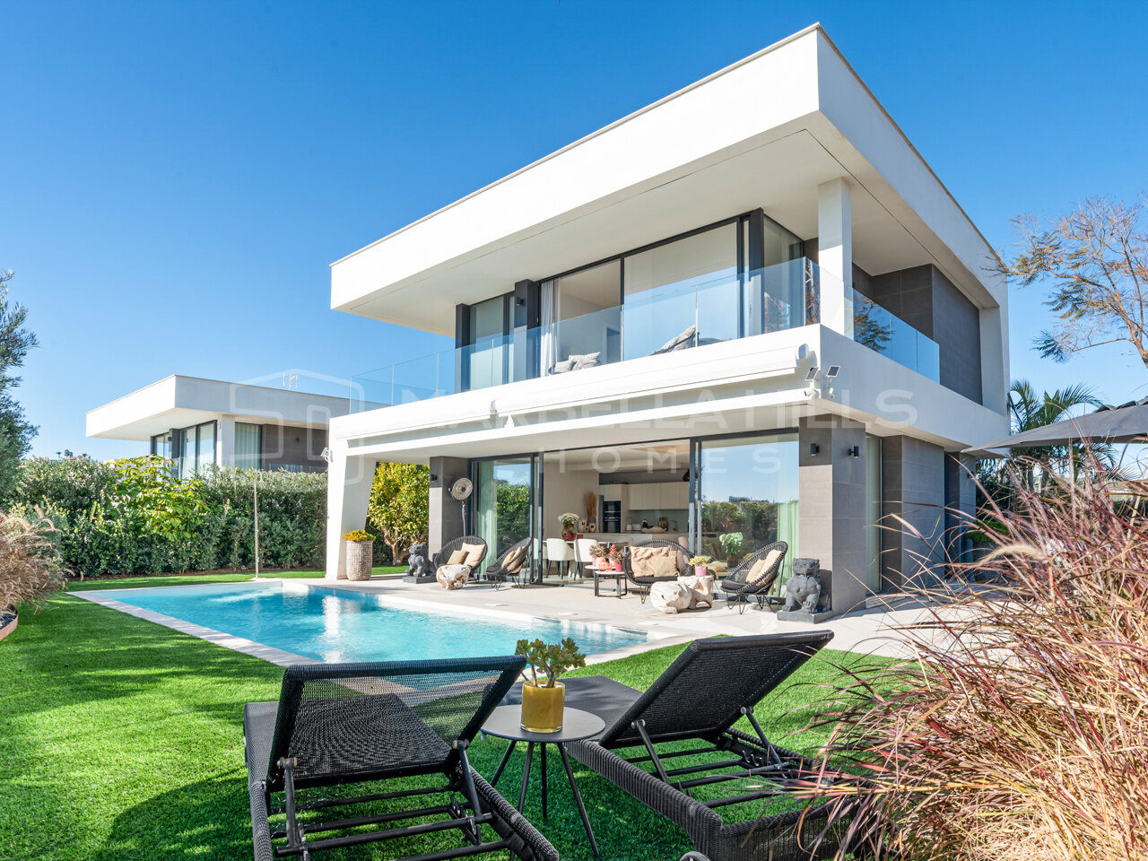Les espaces extérieurs sont conçus pour un style de vie méditerranéen haut de gamme, avec une superbe piscine à débordement, de grandes terrasses ensoleillées, des espaces lounge ombragés et des jardins paysagers avec palmiers matures. Parfait pour recevoir, dîner en plein air ou simplement se détendre dans un cadre unique.