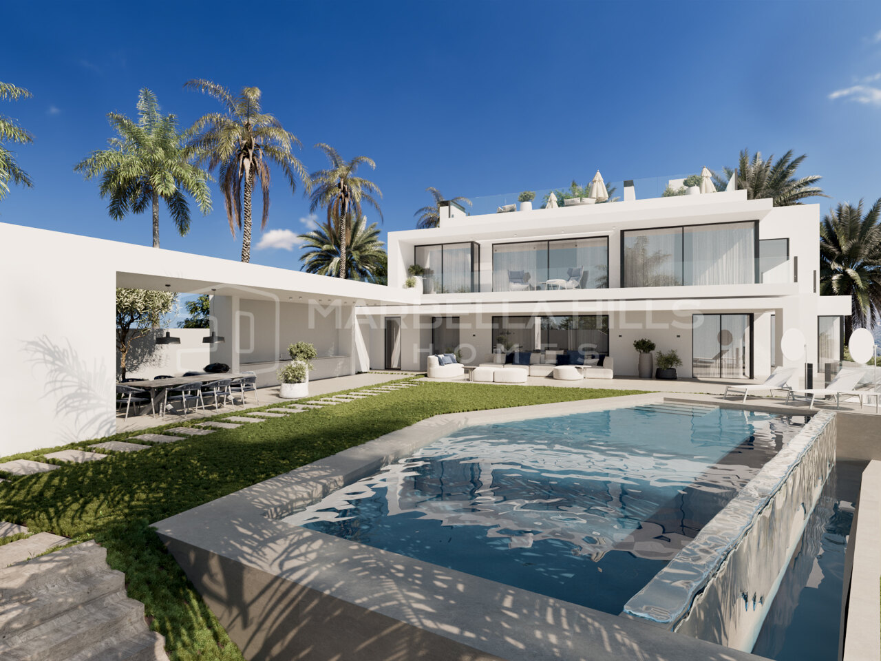 Les espaces extérieurs sont conçus pour profiter pleinement du climat de Marbella. Le jardin paysager offre une intimité totale et entoure la piscine, avec des zones ensoleillées et des espaces ombragés propices à la détente.