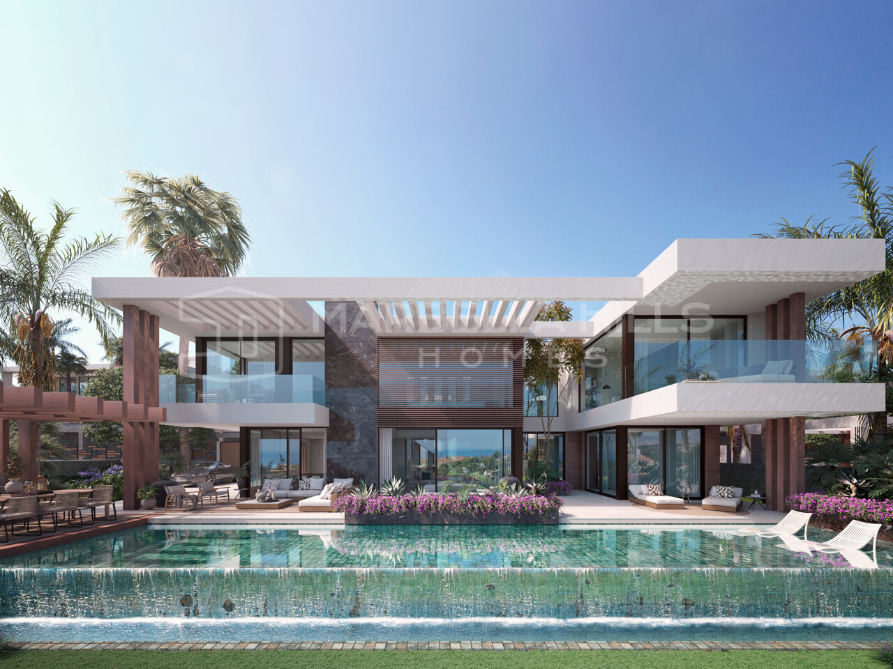 La villa dispose de quatre suites spacieuses, chacune avec salle de bains privative inspirée des spas, dressings généreux et accès direct au jardin depuis le niveau inférieur. La suite principale bénéficie d’une terrasse privée offrant une vue magnifique sur les montagnes de Marbella, constituant un véritable refuge au sein de la propriété.