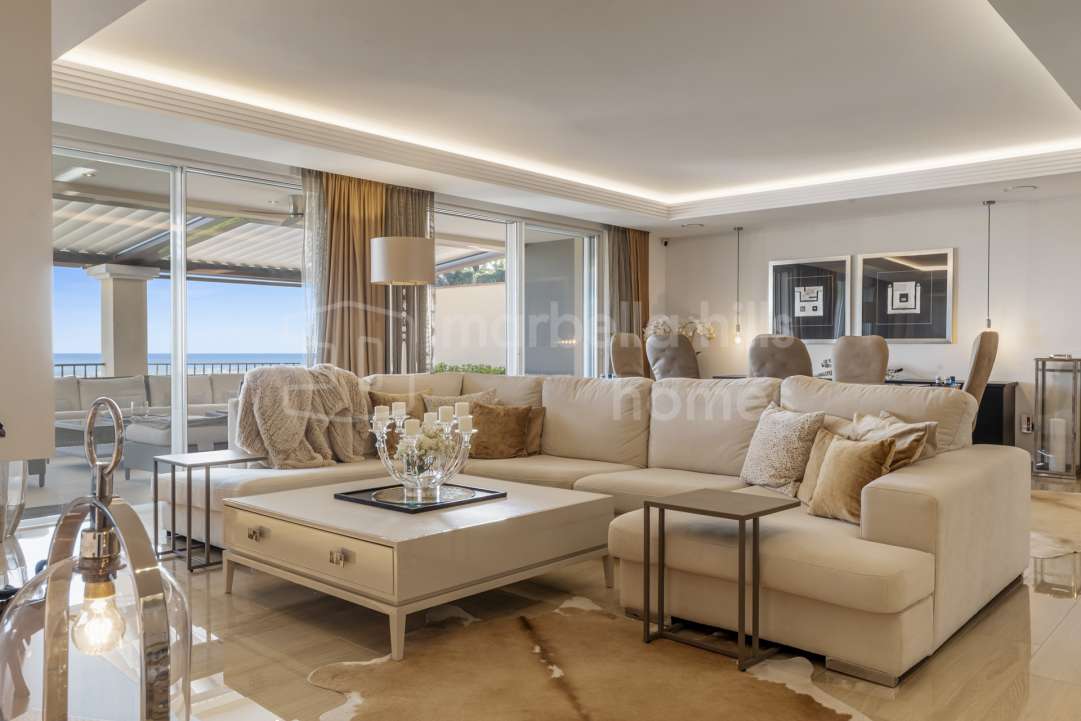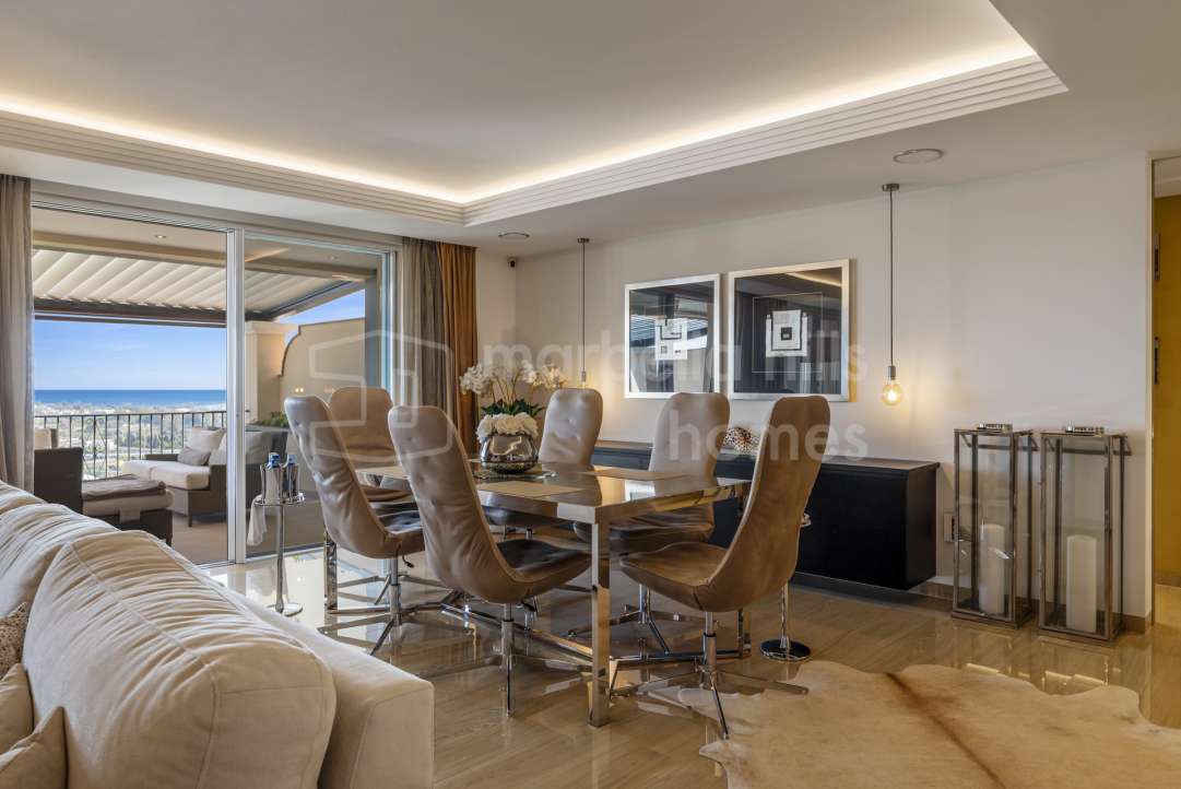 Komplett renoviertes Duplex-Penthouse in La Quinta Village, Nueva Andalucía mit Panoramameerblick, 3 Schlafzimmern, großen Terrassen, Plunge-Pool und modernem skandinavischem...