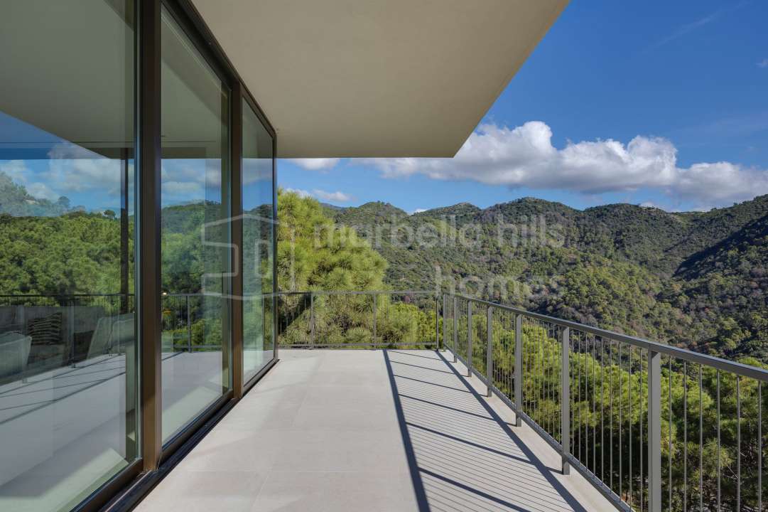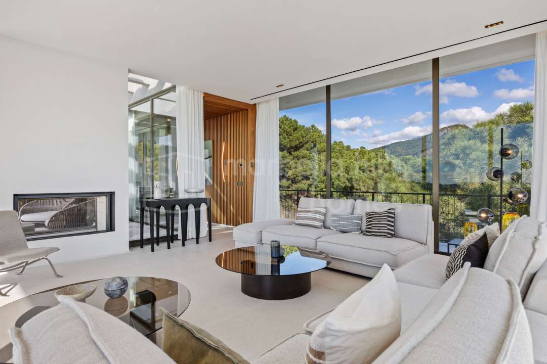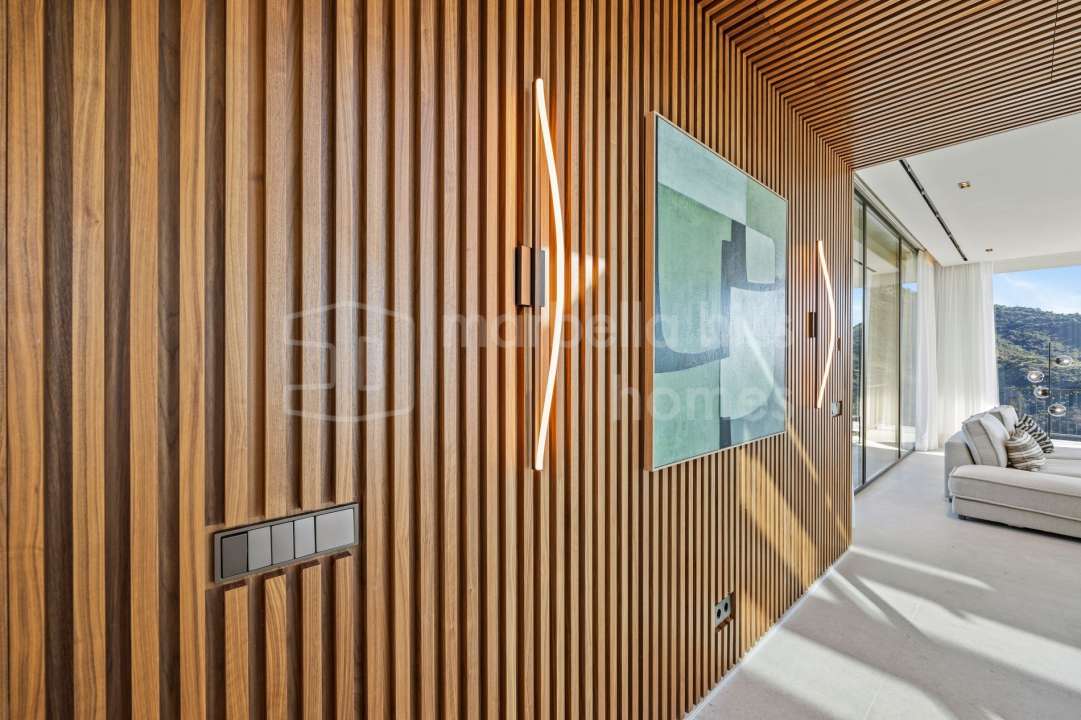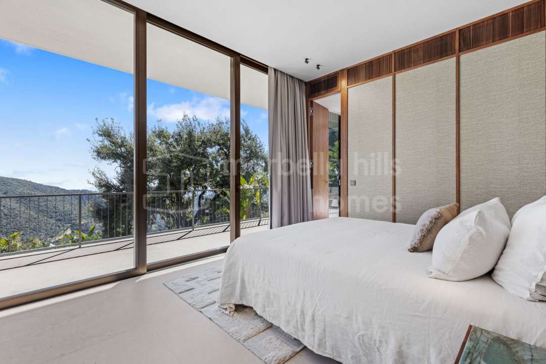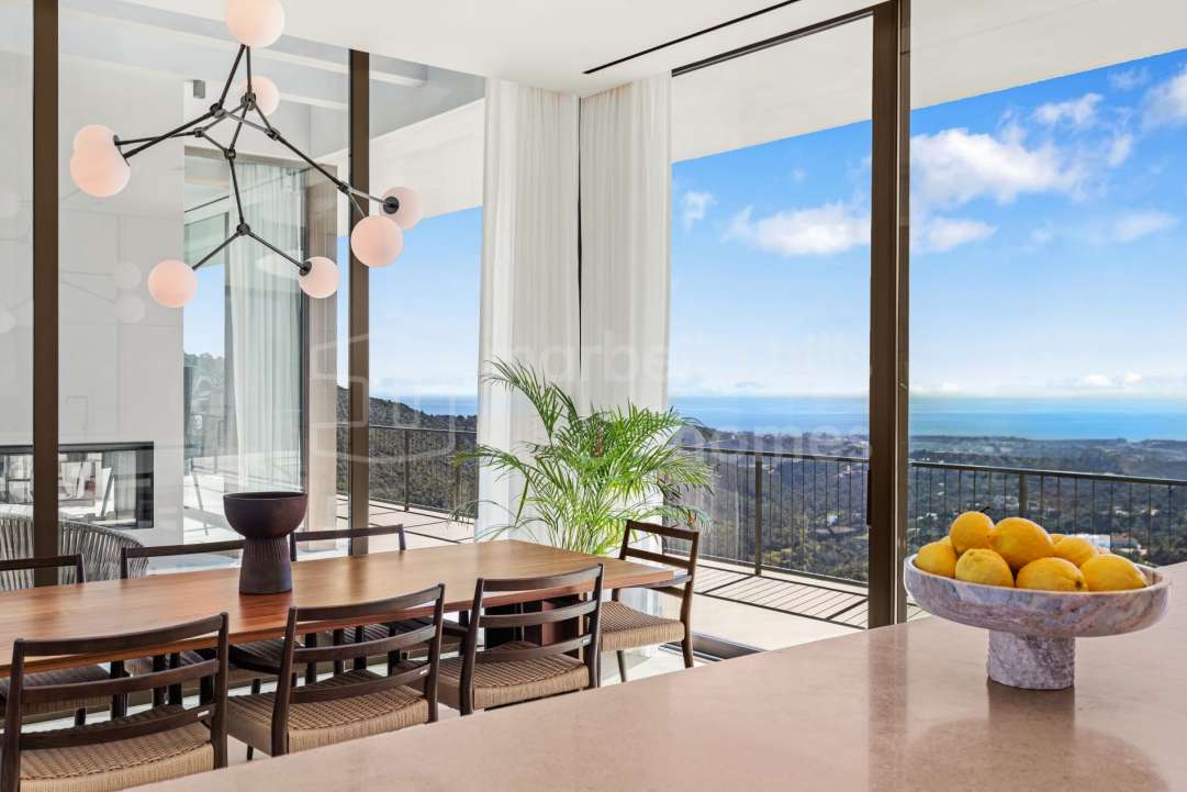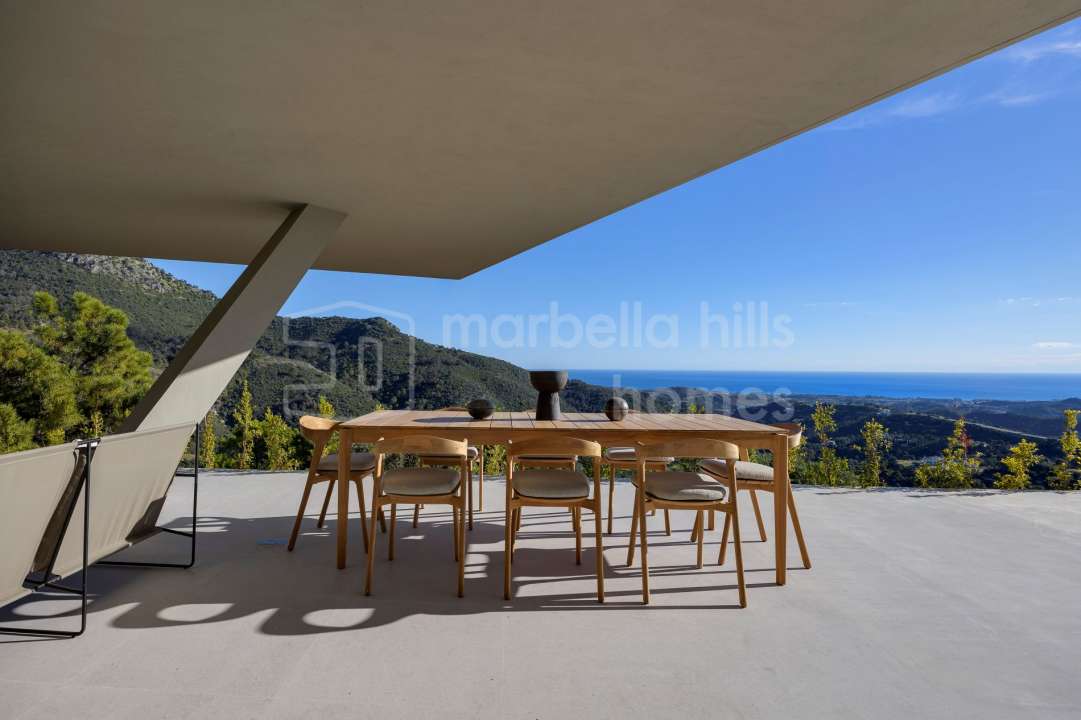Moderne Luxusvilla zum Verkauf in Monte Mayor, Benahavís. 5 Schlafzimmer, Gästehaus, Infinity-Pool, Panoramablick auf Meer und Berge, nachhaltiges Design und maximale Privatsphäre.