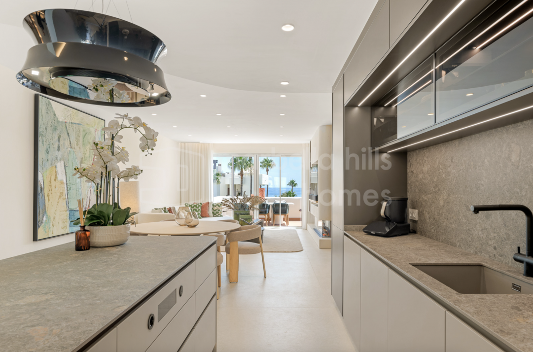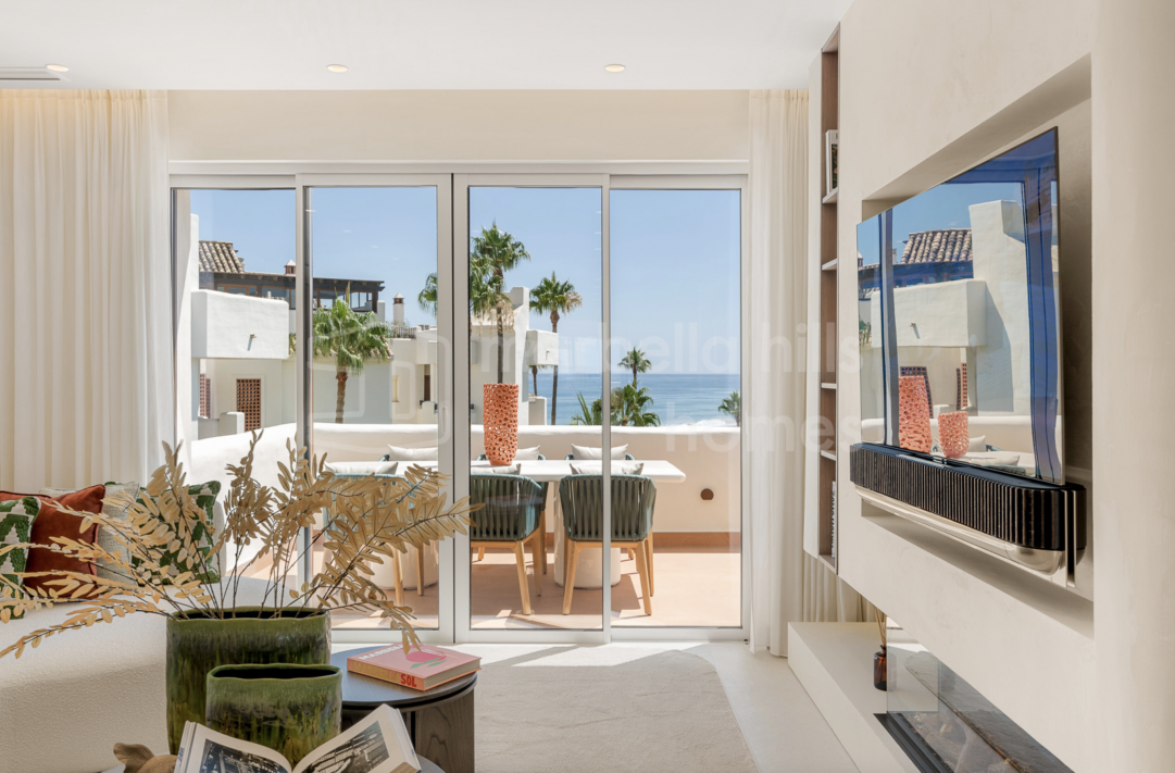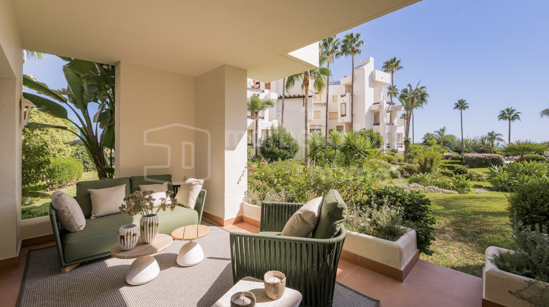 Schlüsselfertig und vollständig renoviert: Diese elegante 3-Schlafzimmer-, 2-Badezimmer-Wohnung liegt in einer begehrten Strandwohnanlage zwischen Marbella und Estepona. Mit 120...