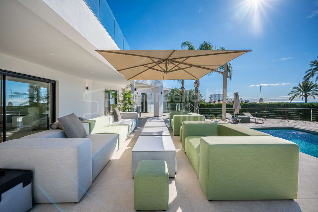 Außergewöhnliche moderne Villa an der Golden Mile von Marbella mit 360°-Panoramablick, spektakulärem Meerblick und Blick auf den Berg La Concha, privatem Spa, Kino,...