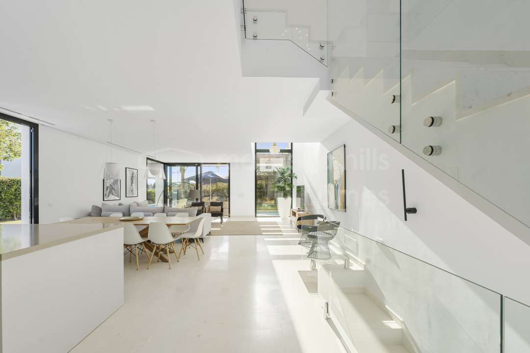 In einer exklusiven Wohnanlage mit nur 14 Residenzen gelegen, bietet diese moderne Villa in Cabopino, Marbella Ost, die perfekte Kombination aus Eleganz, Privatsphäre und...