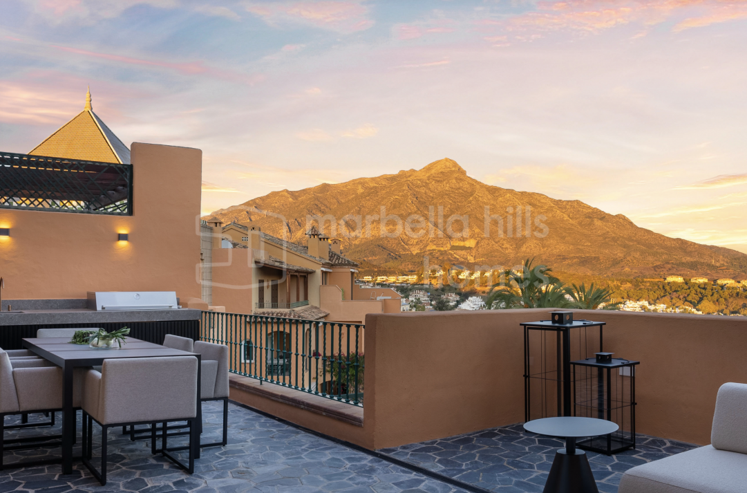 Exklusives, vollständig renoviertes Duplex-Penthouse in La Cerquilla, Nueva Andalucía, mit 4 Schlafzimmern en suite, großzügigen Terrassen und Panoramablick auf Meer und Berge...