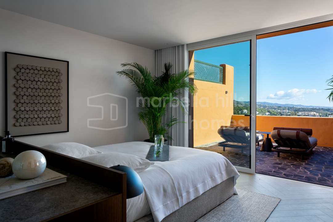 Moderne Residenz in La Cerquilla, Nueva Andalucía – renoviert, privat, mit Pool, Terrassen und Blick auf das Golf Valley nahe Marbella.