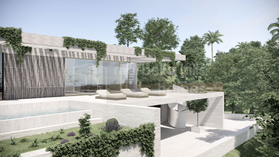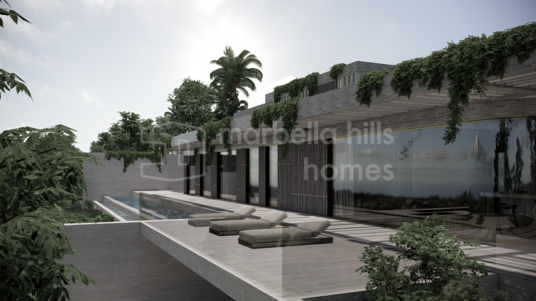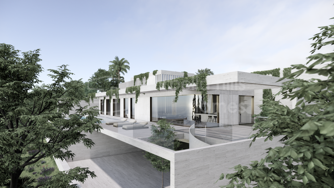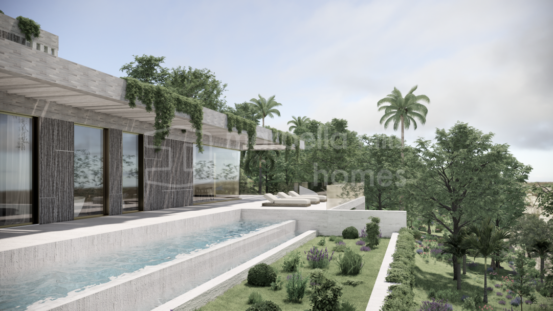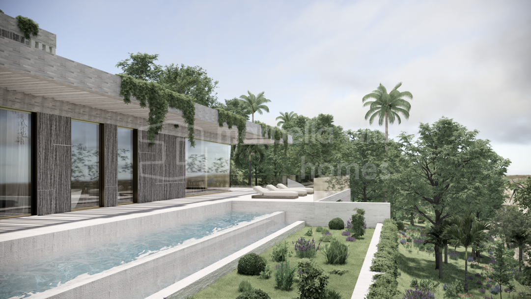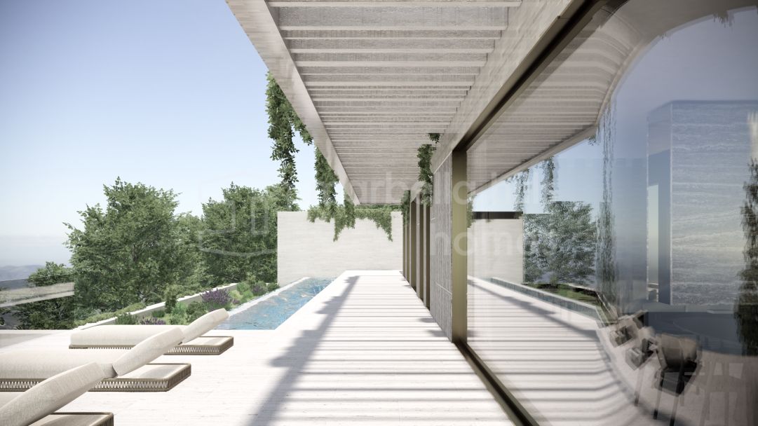 Modernes Luxusvilla Projekt in Monte Mayor Benahavís zu verkaufen. 5 Schlafzimmer, privater Pool, 2.100 m² Grundstück mit Panoramablick auf Meer und Berge in einer exklusiven...