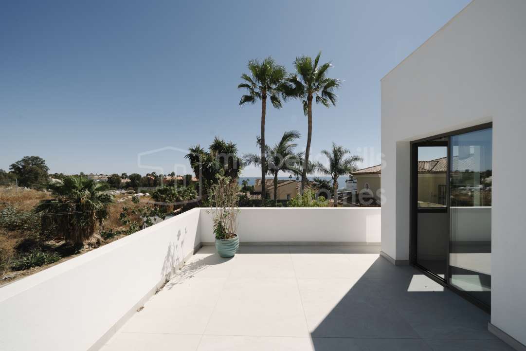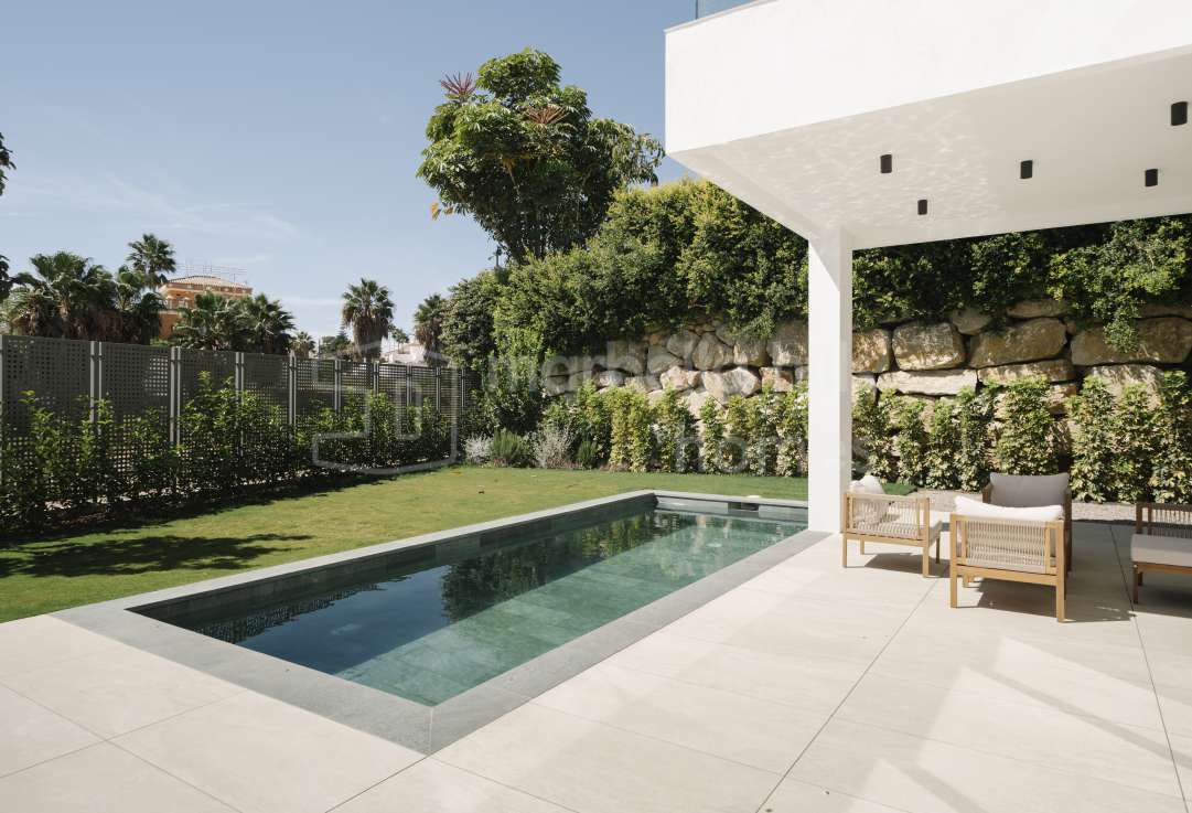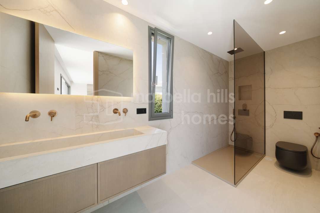 Nur fünf Minuten von der Mittelmeerküste entfernt, bietet diese moderne Villa in Estepona die perfekte Kombination aus zeitgemäßem Design, Komfort und Privatsphäre. Auf drei...