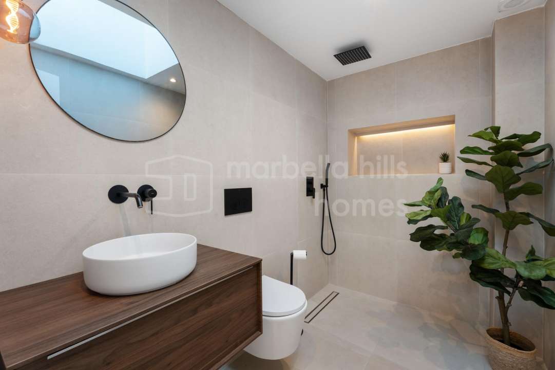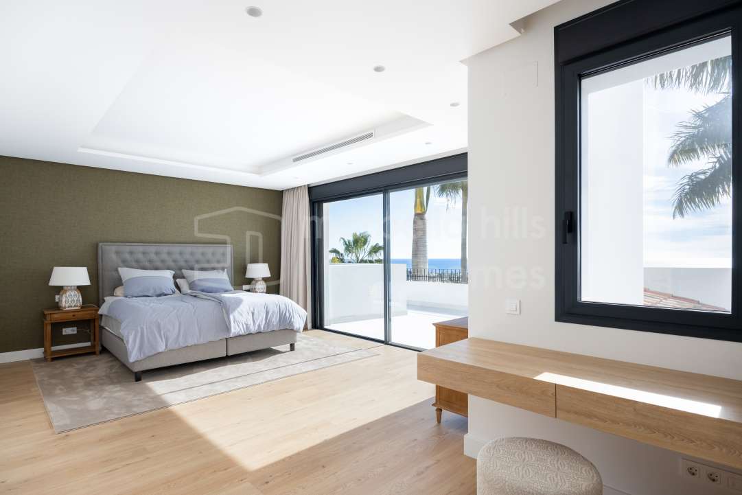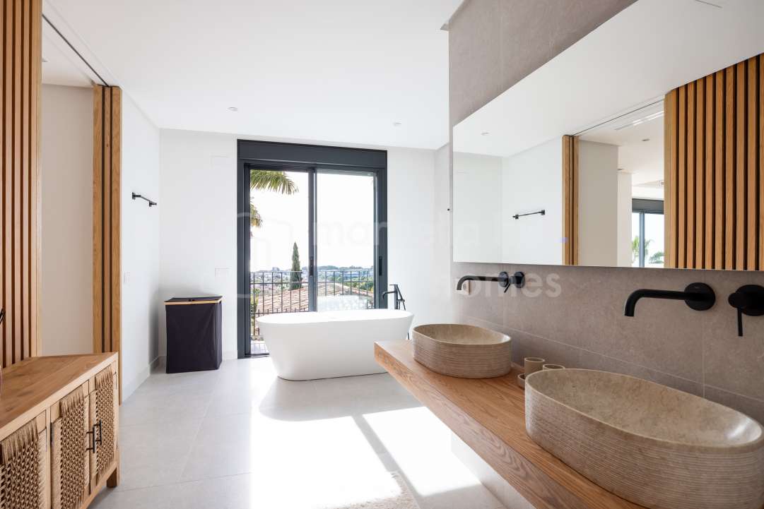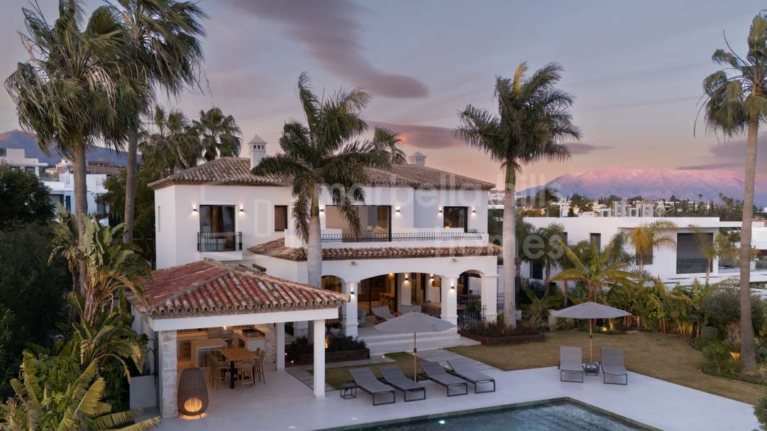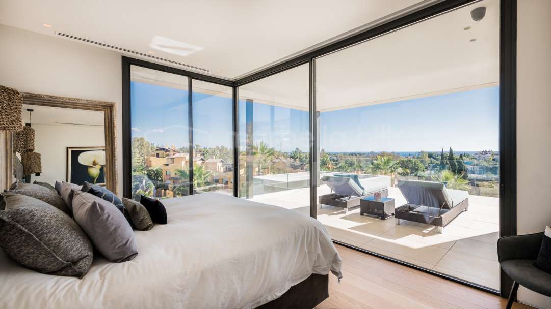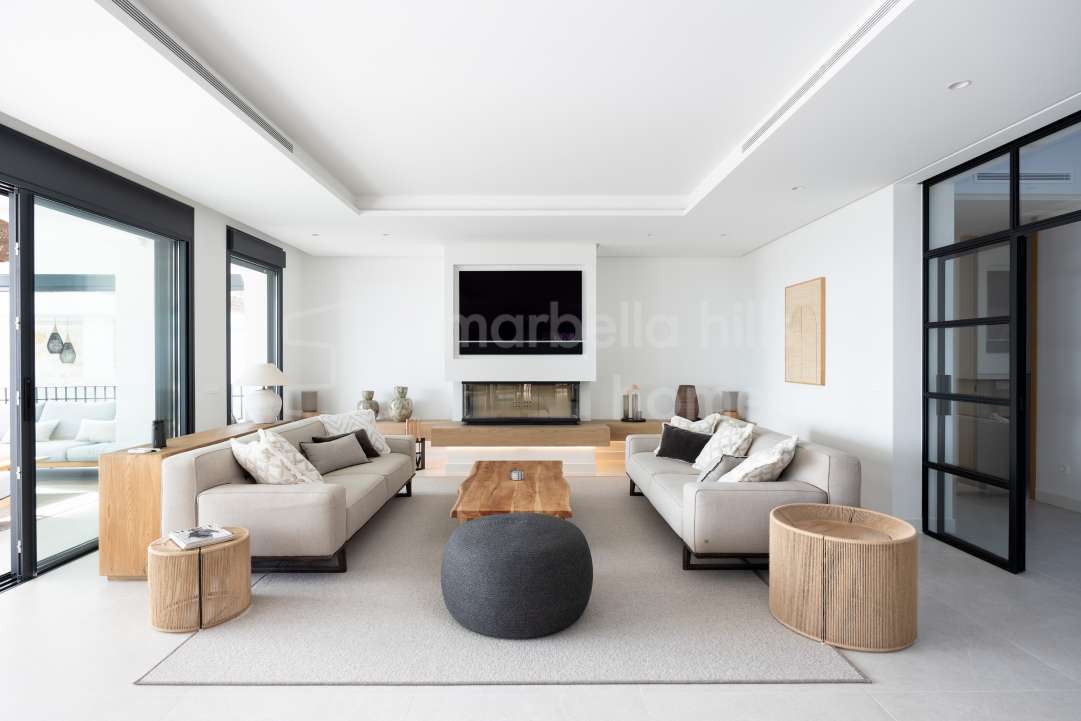 Fully renovated contemporary villa in Nueva Andalucía offering panoramic sea and mountain views, rooftop jacuzzi, private pool, guest apartment and excellent rental potential,...