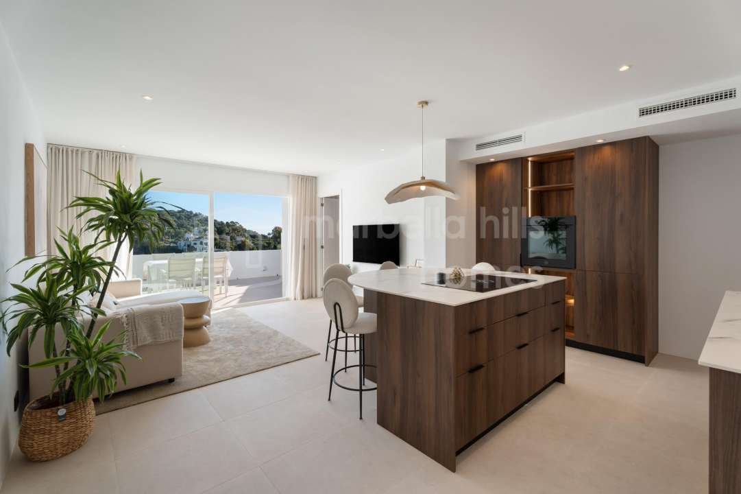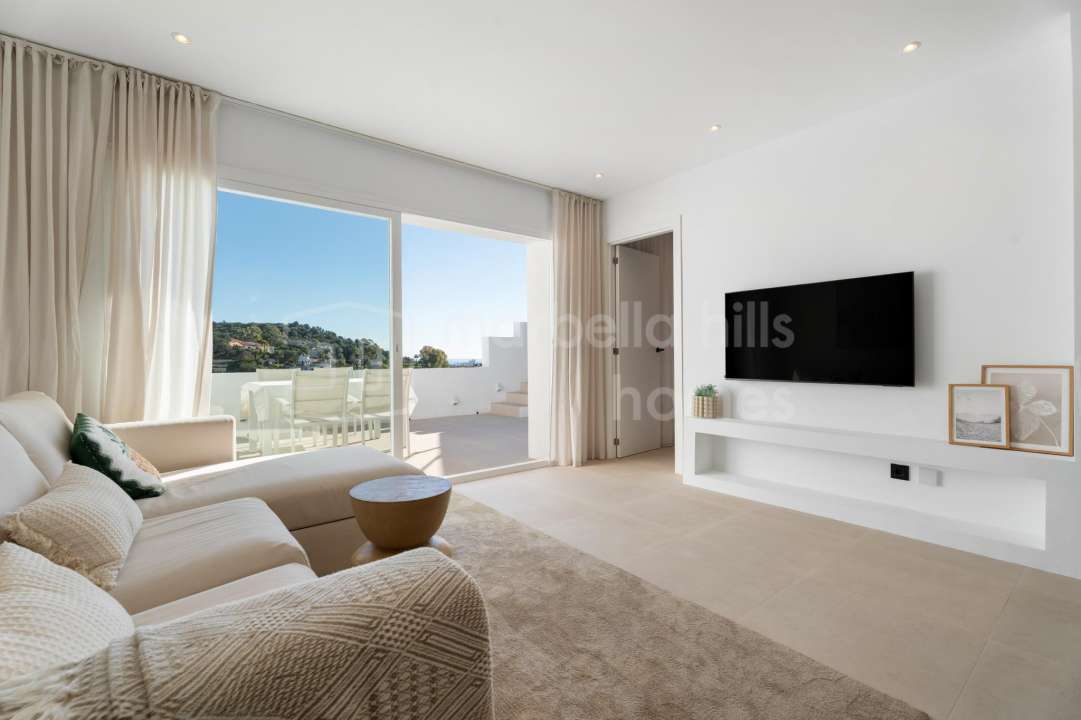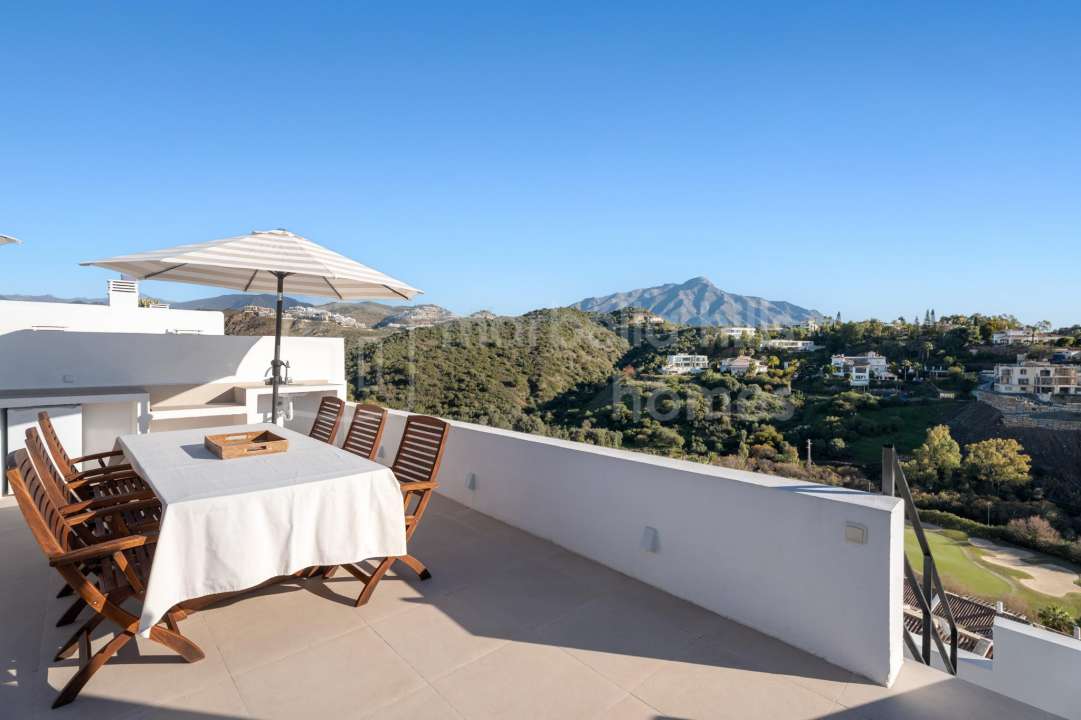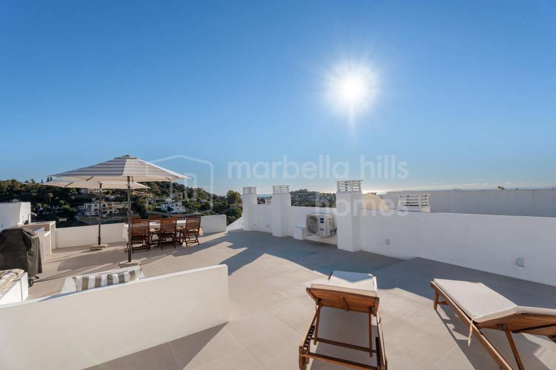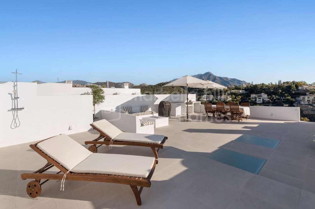 Fully renovated three-bedroom penthouse in La Quinta, Benahavís, offering panoramic sea, golf and mountain views, a private rooftop terrace, modern design and strong rental...