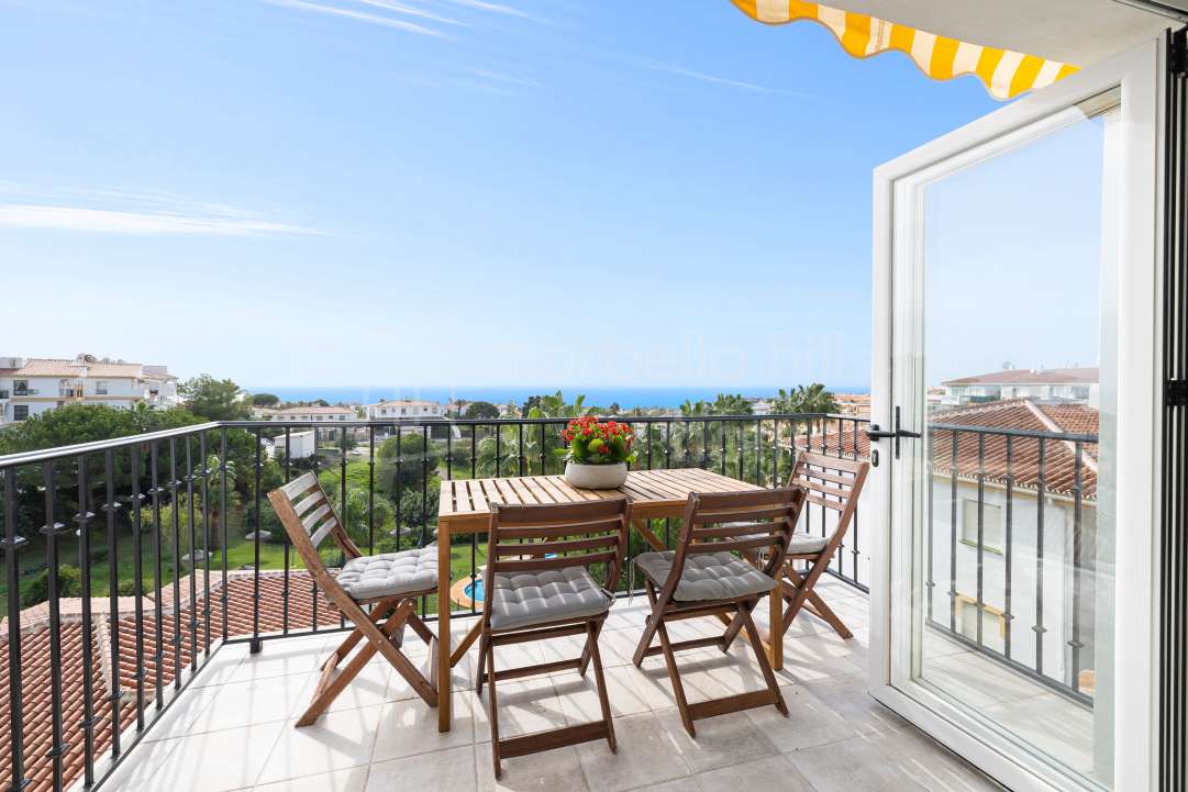 Fully renovated penthouse in El Faro offering sea views, three bedrooms, two bathrooms, private terraces, communal pool, and excellent rental potential near La Cala de Mijas.