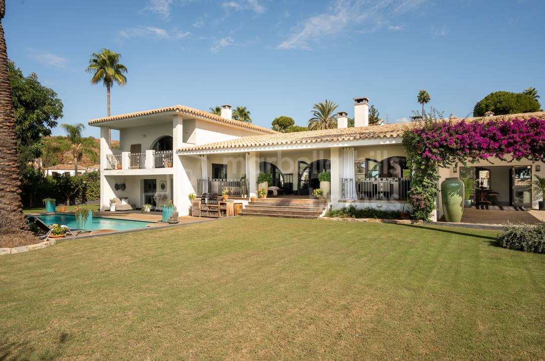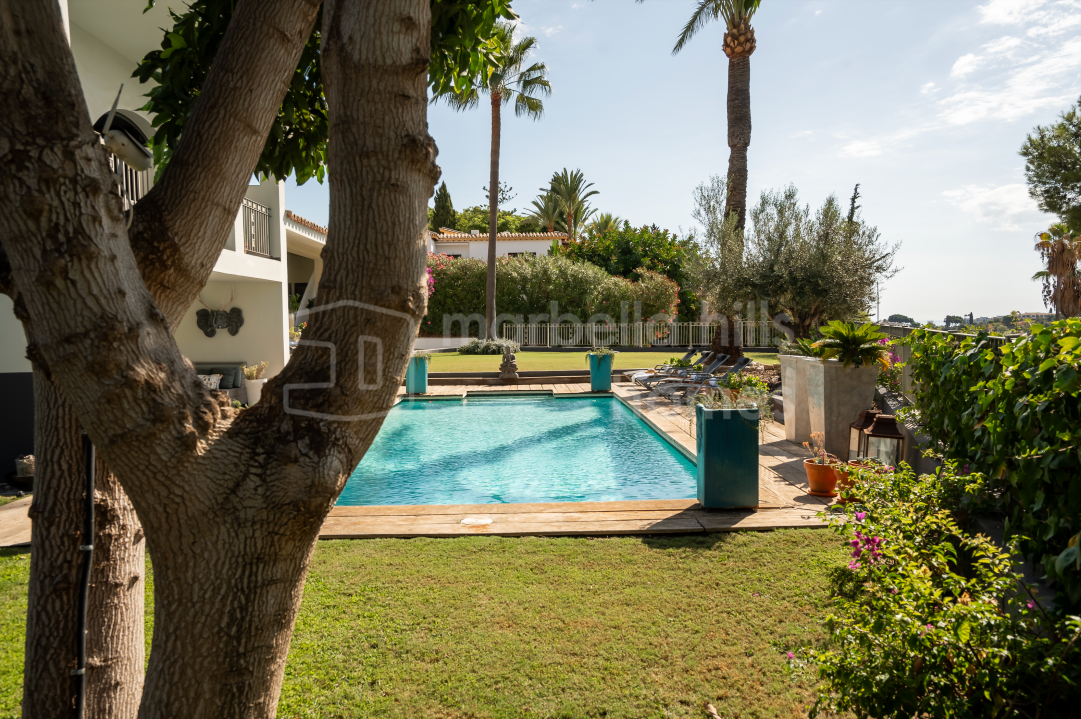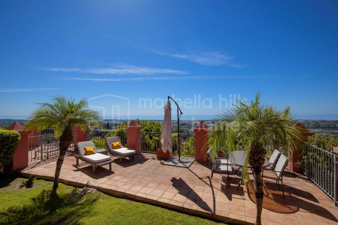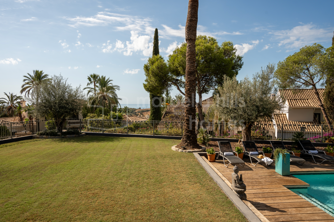Charming 5-bedroom villa with sea views for sale in El Paraíso Alto, Benahavís. Elevated plot, privacy, landscaped garden, pool and close to golf and Marbella.